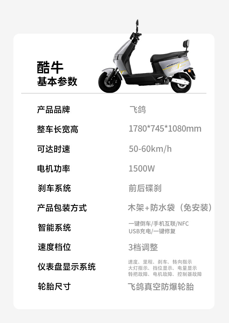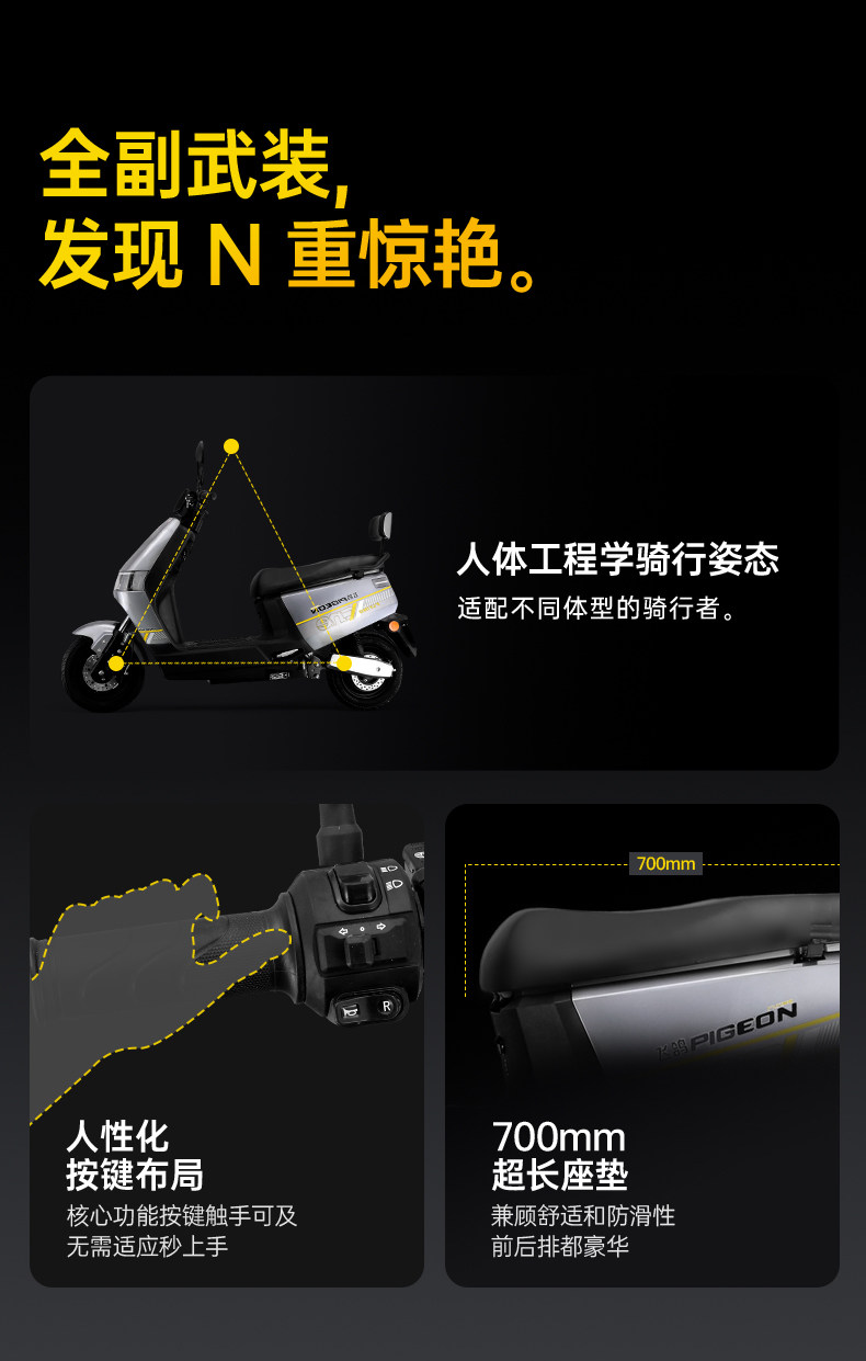 飞鸽电动摩托车2025新款踏板高速超长续航载重外卖车72v38a电动车