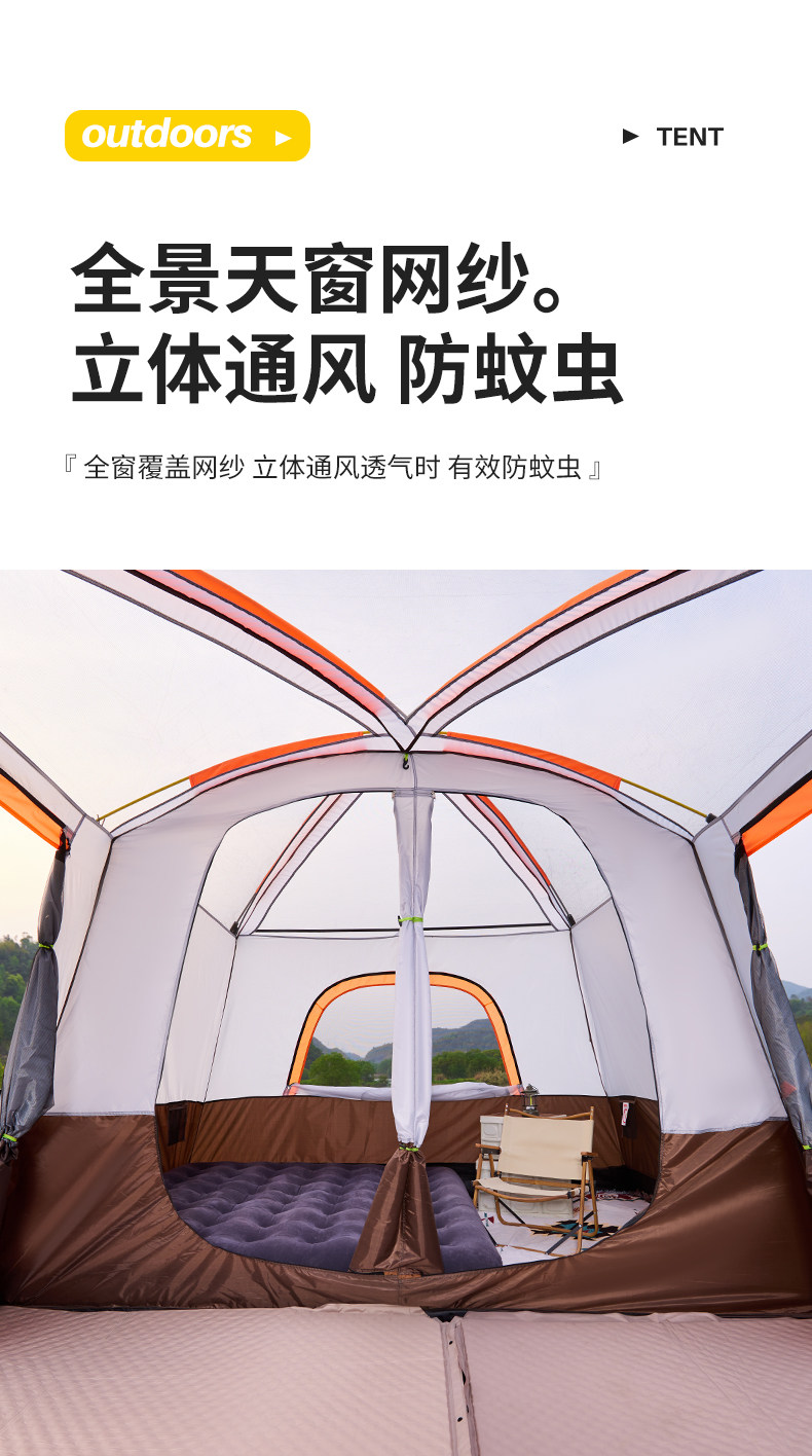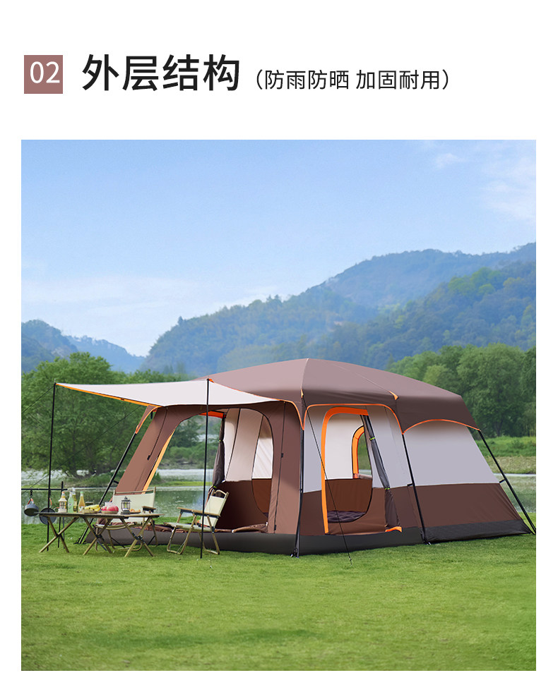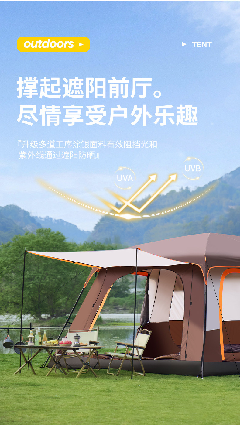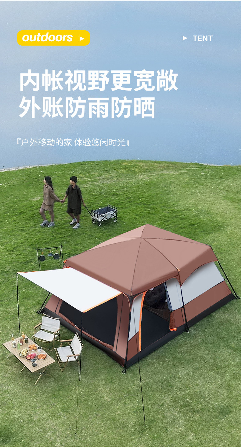 帐篷户外野营过夜两室一厅折叠便携式加厚防雨野外遮阳棚露营装备