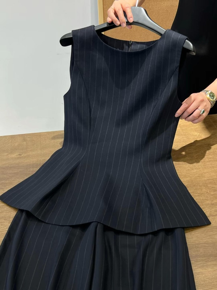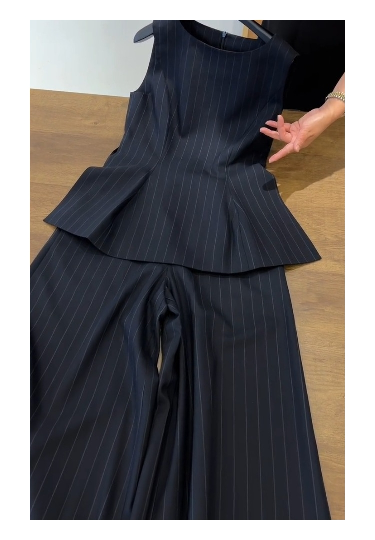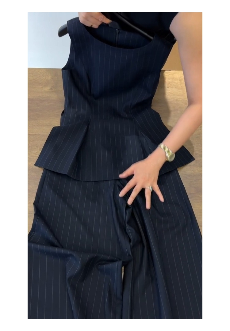 Gorgeous Summer Outfit with a Light Luxury and High-End Feel, Chanel-Style Navy Blue Striped Vest and Professional Suit Pants