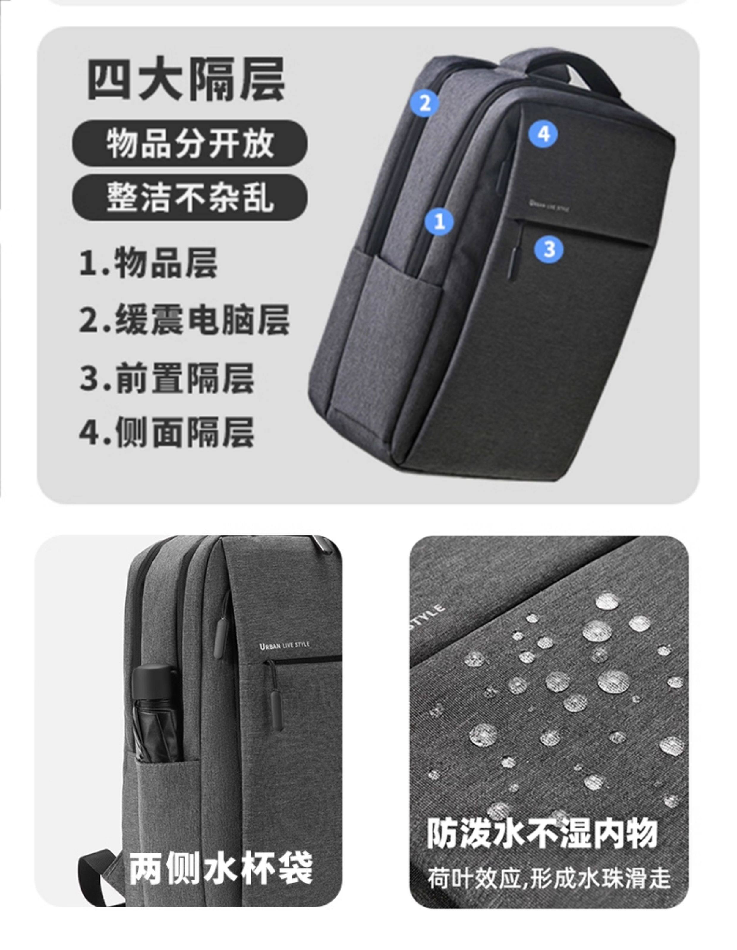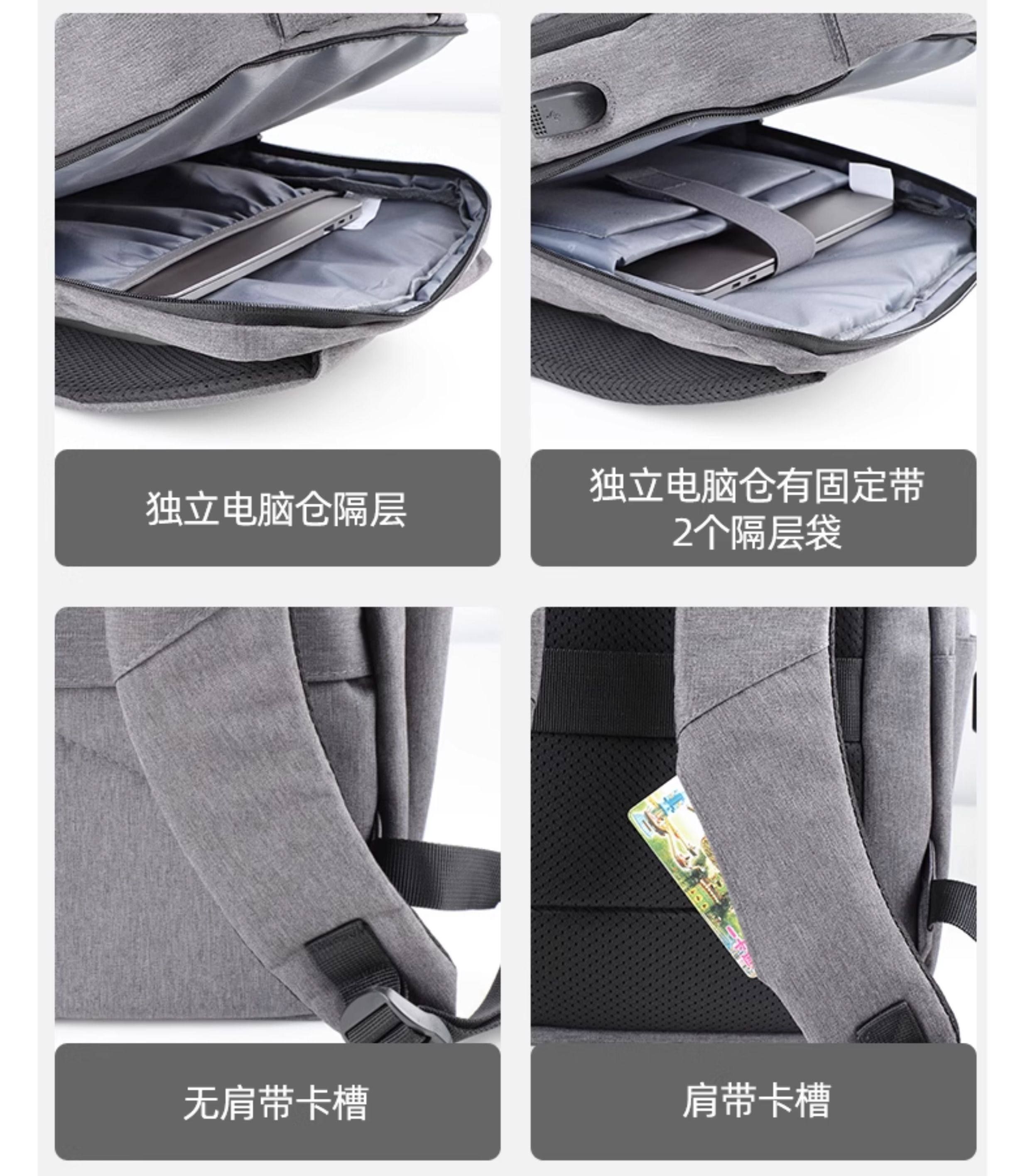 Estructura interna Bolsa de malla,bolsa para teléfono móvil,Bolsa principal,rejilla oculta,bolsa laminada con cremallera,Bolsillo para computadora,bolsillo para cámara,ranura de identificación