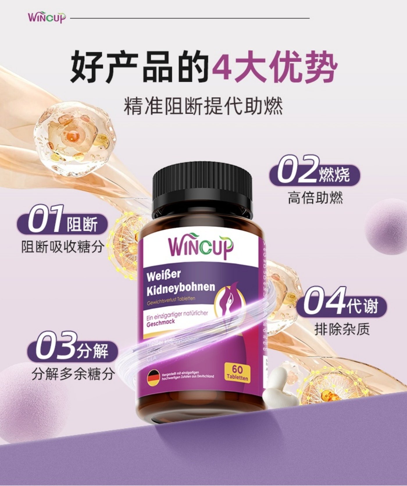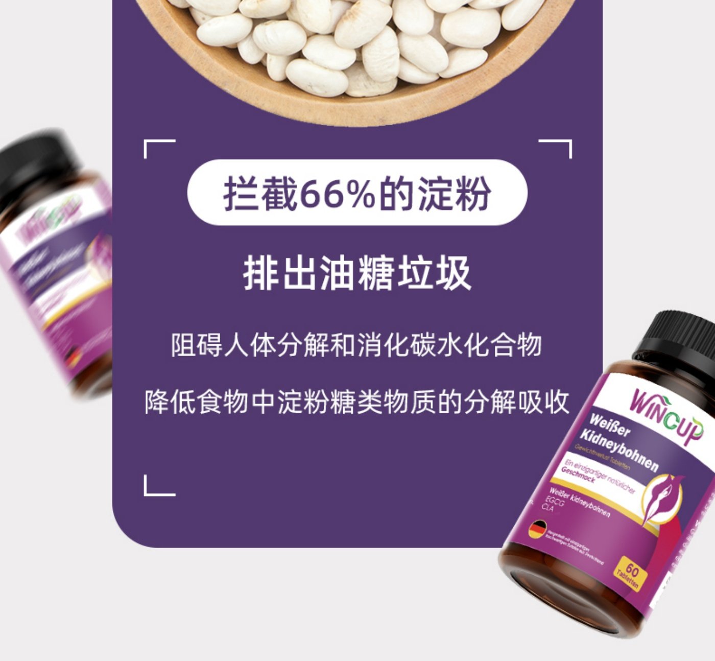 Wincup白芸豆阻断片德国阻油阻糖阻碳水身材管理油碳双燃