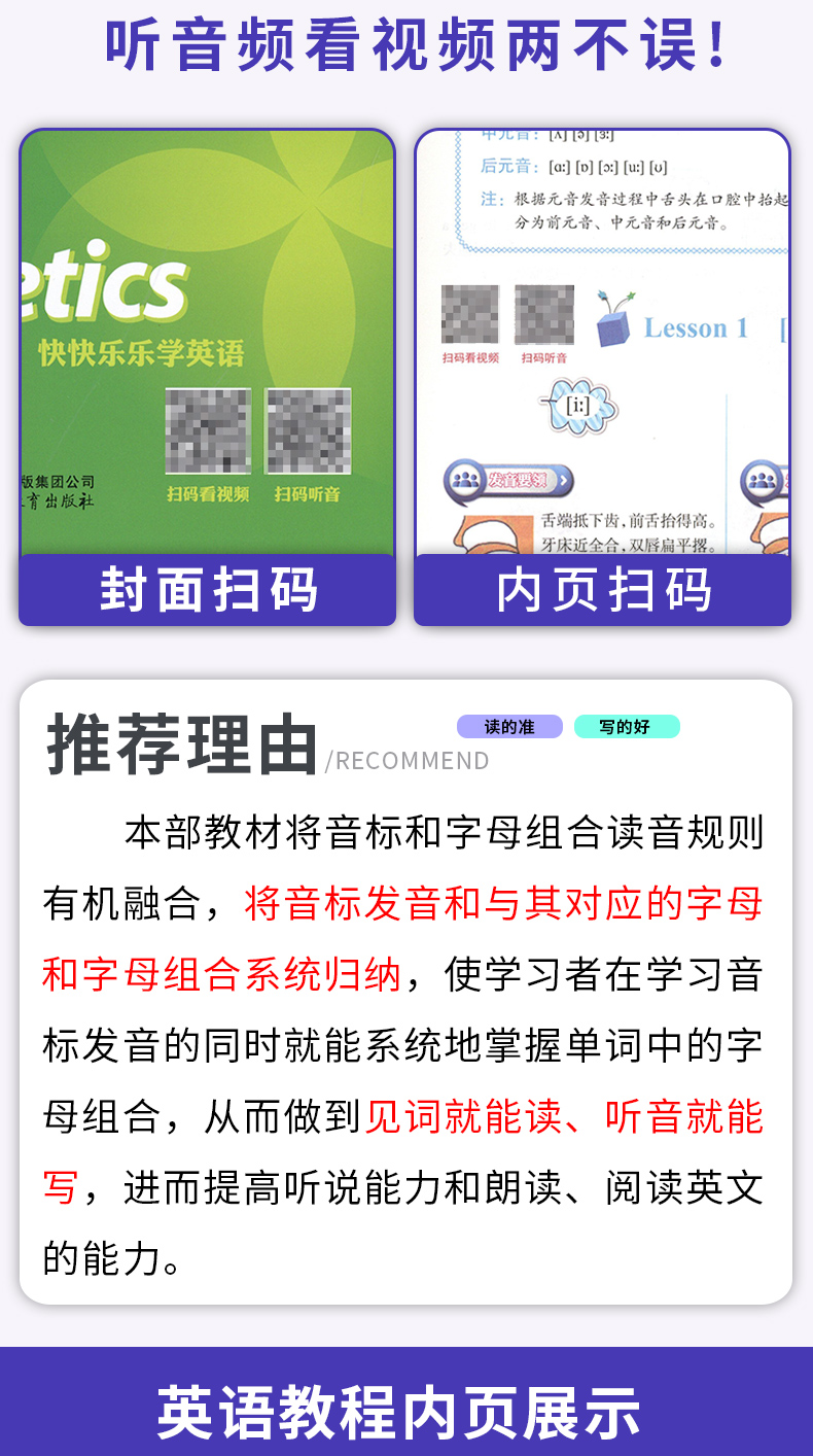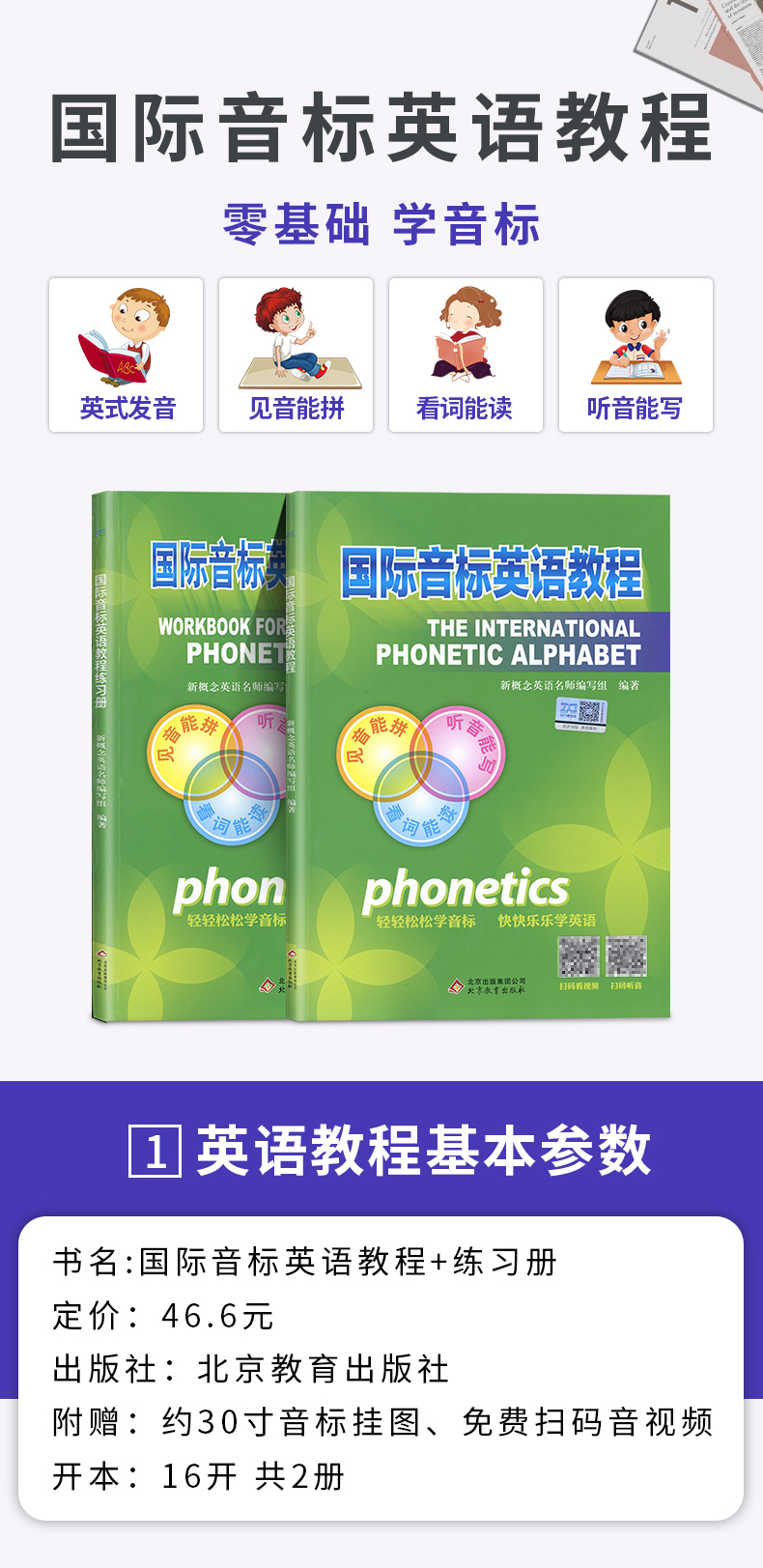 International Phonetic Symbol English Tutorial Exercise Book, a complete set of training books on natural and phonics learning rules, word memorization, self-study of pronunciation basics, introductory listening and speaking, primary school English phonetic symbols, elementary phonics and pronunciation textbooks for junior middle school adults