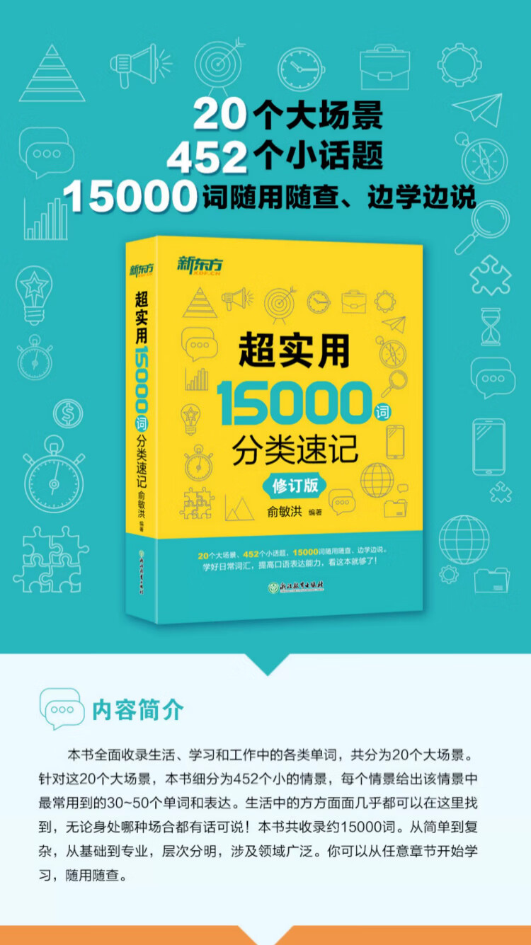 New Oriental's super practical 15,000 words classified shorthand English spoken shorthand 1,000 sentences Adult English self-study textbook English spoken daily conversation practice every day to speak immediately with zero basic knowledge English spoken English vocabulary book for overseas travel Super practical spoken English 1,000 sentences + 15,000 word classified shorthand