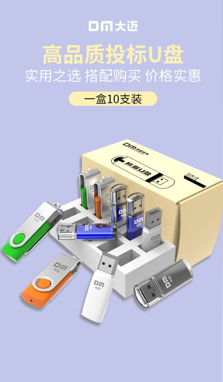DM大迈 4GB USB2.0 U盘 投标u盘PD120 招标小容量电脑标签优盘 10个/盒
