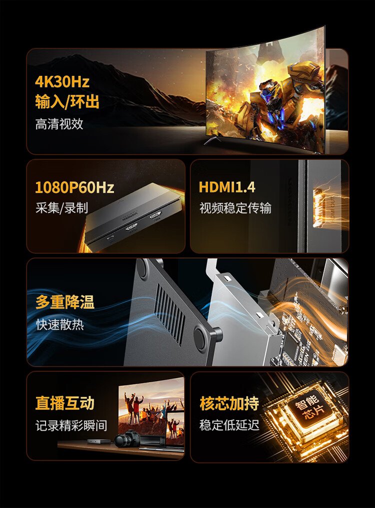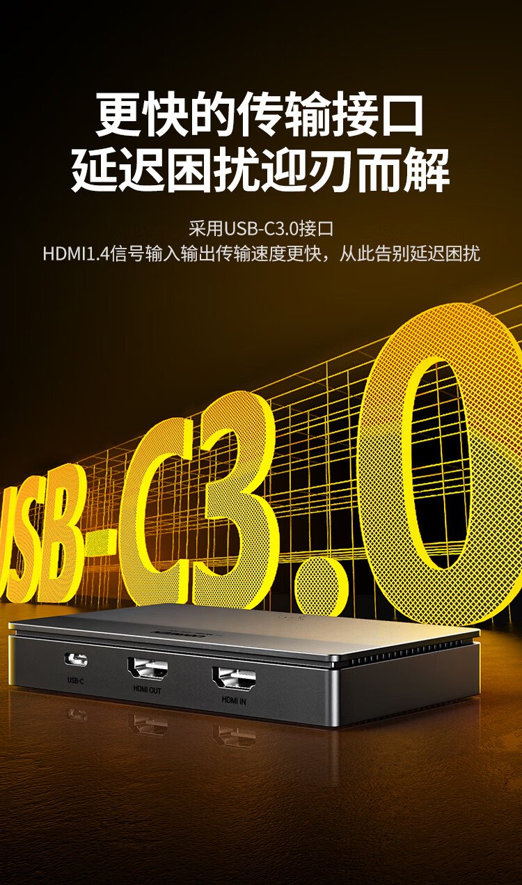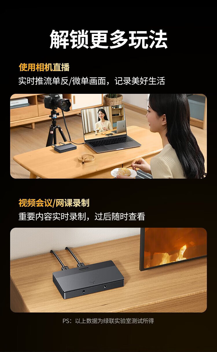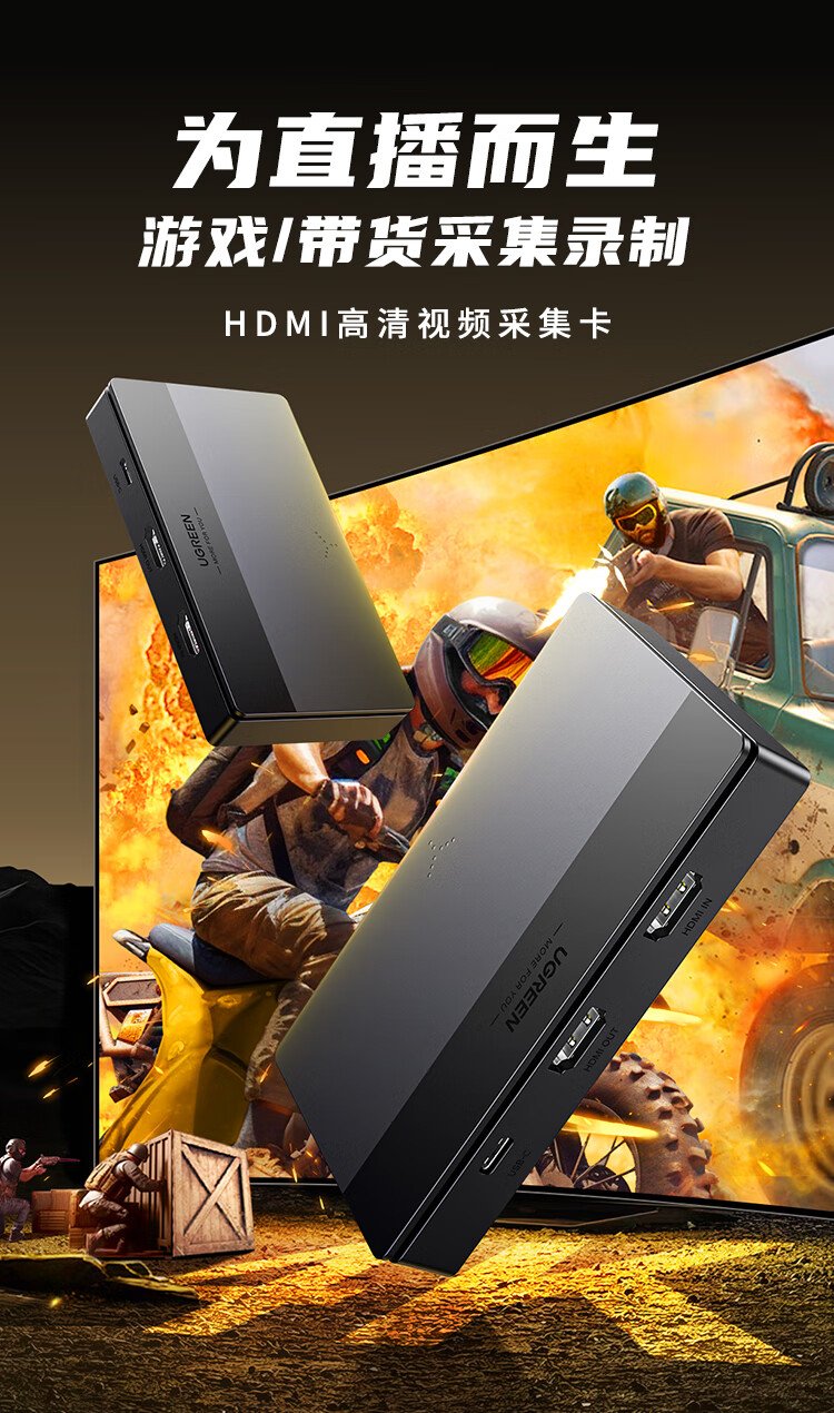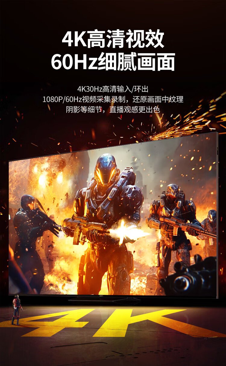 绿联HDMI高清视频采集卡4K环出 适用VR尼康索尼佳能单反Switch/PS5手机平板电脑相机游戏抖音直播录制