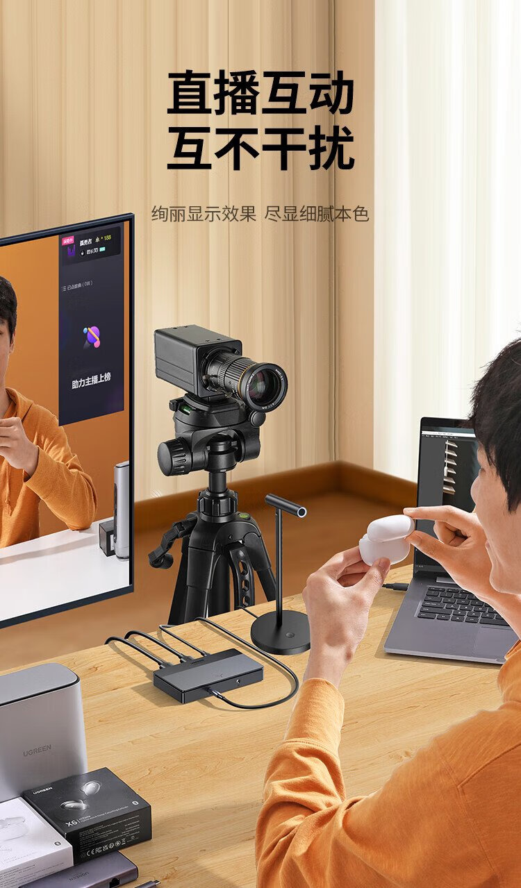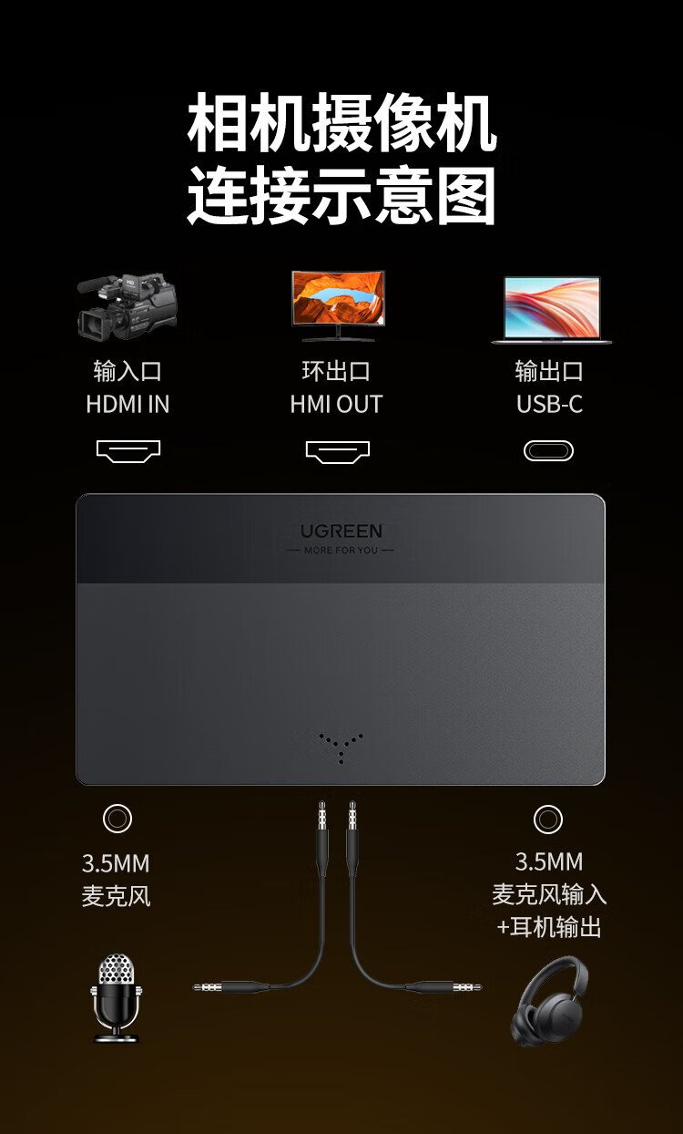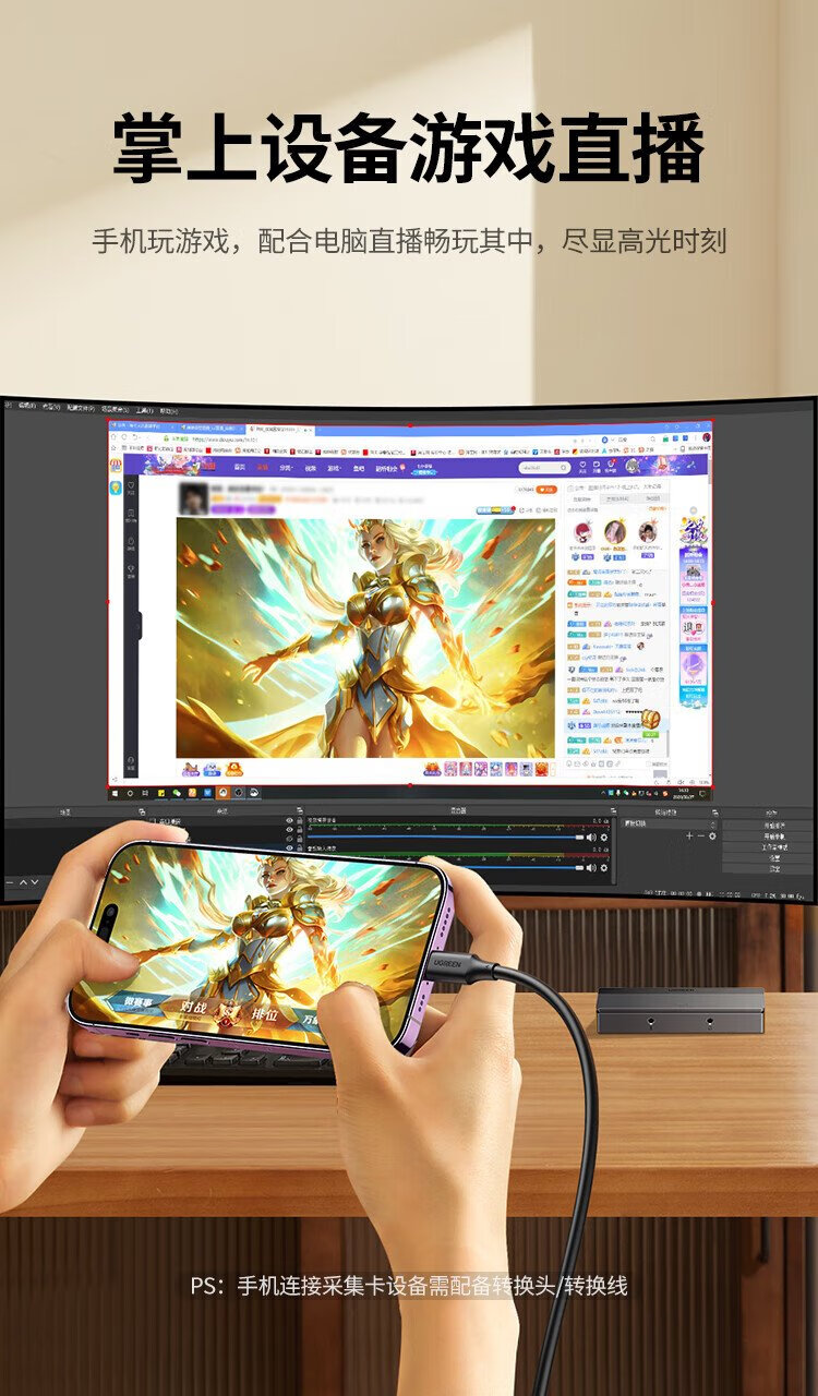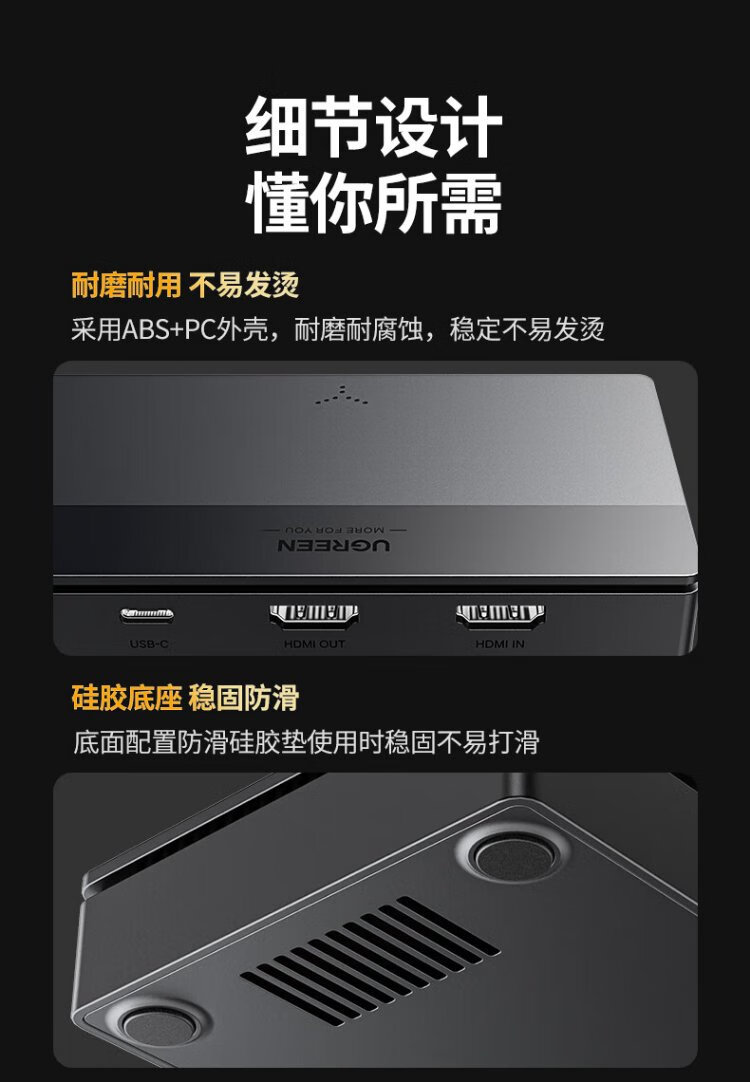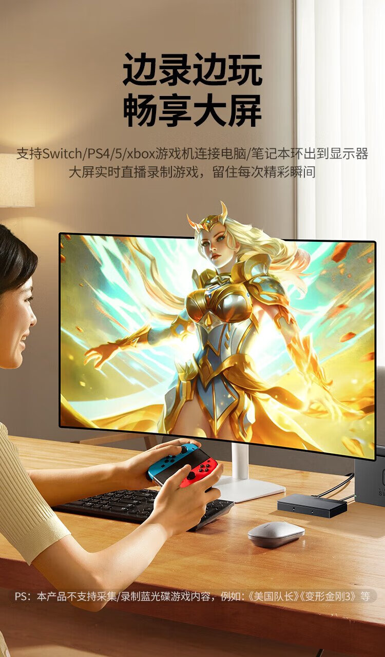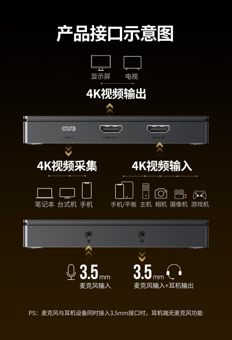 绿联HDMI高清视频采集卡4K环出 适用VR尼康索尼佳能单反Switch/PS5手机平板电脑相机游戏抖音直播录制