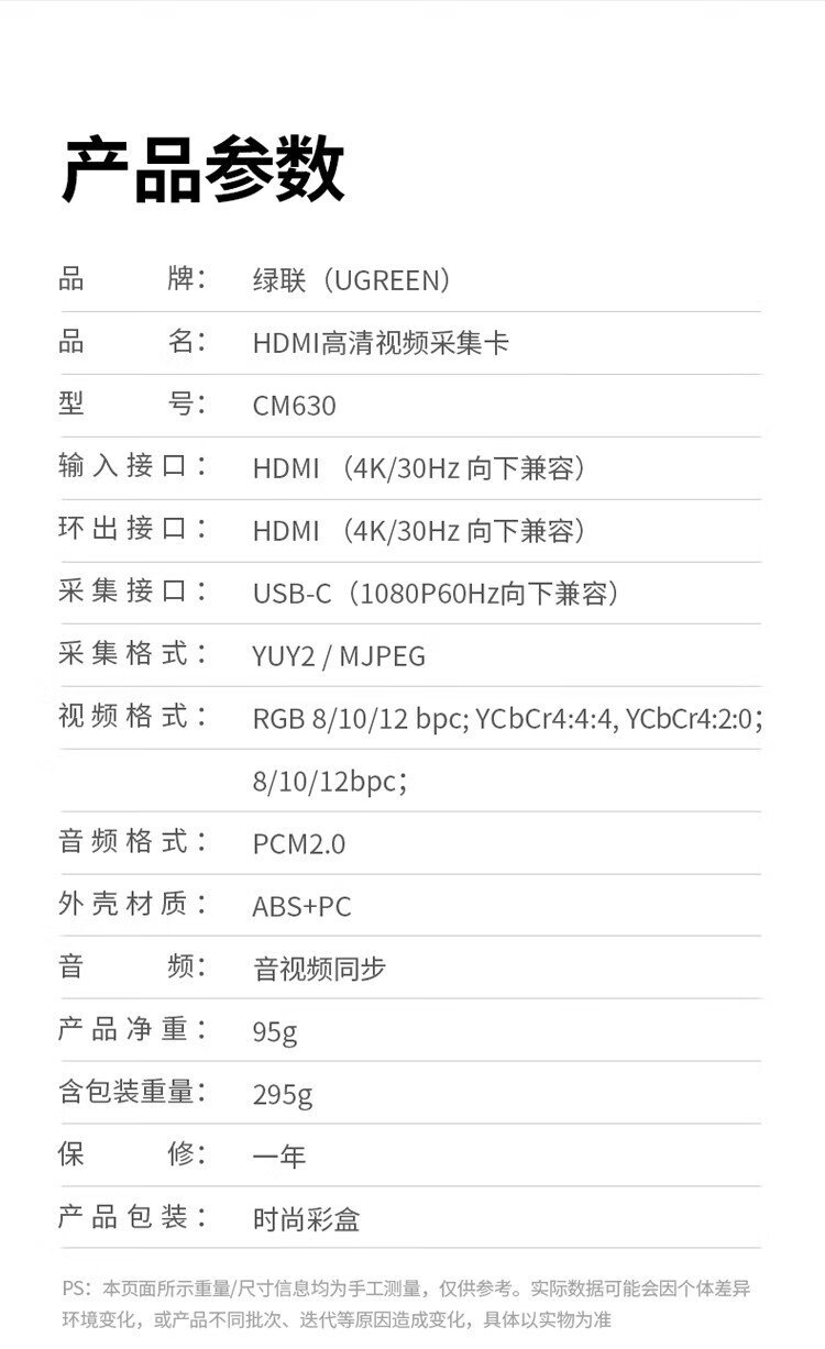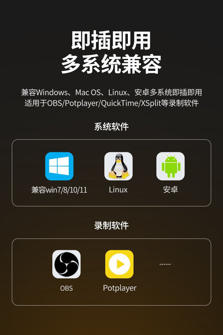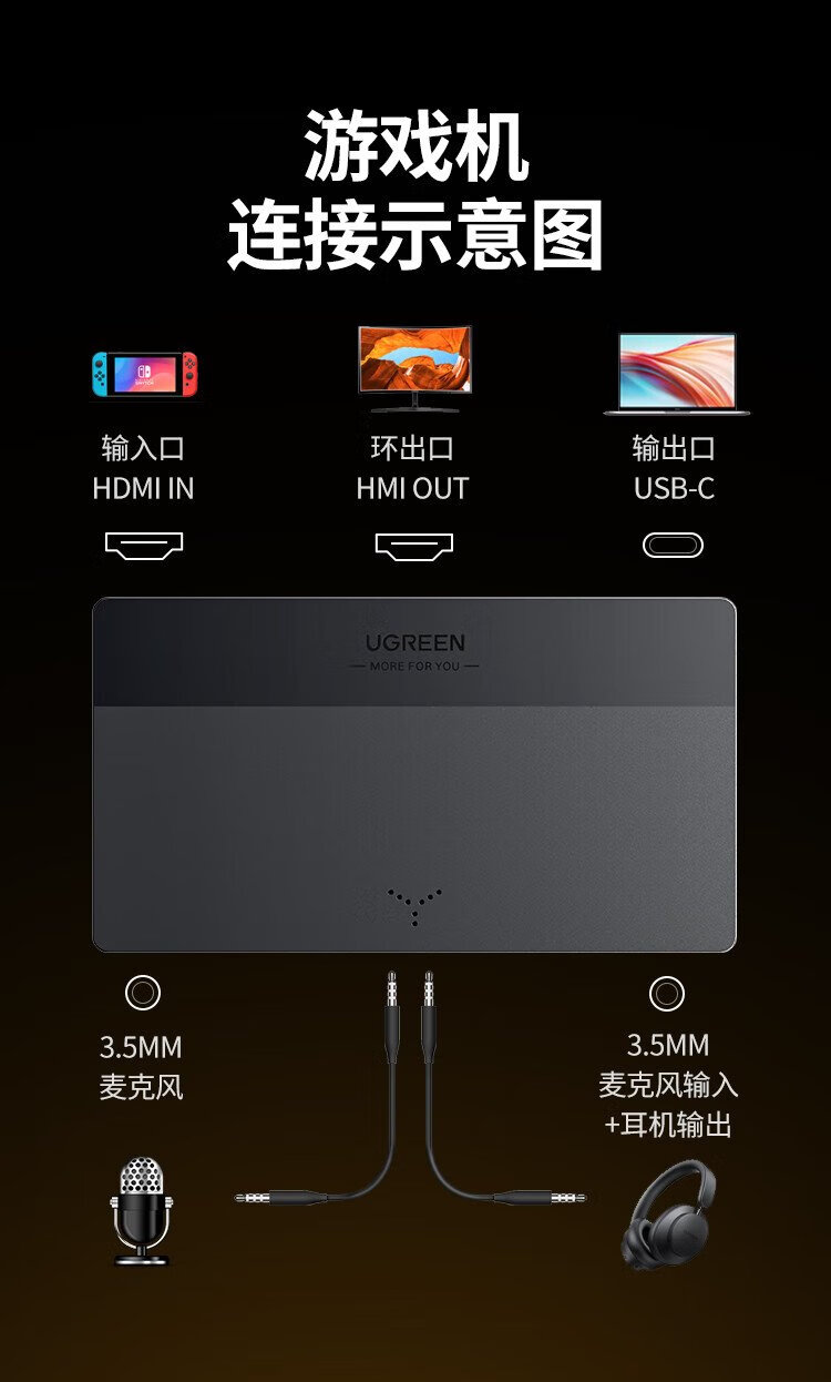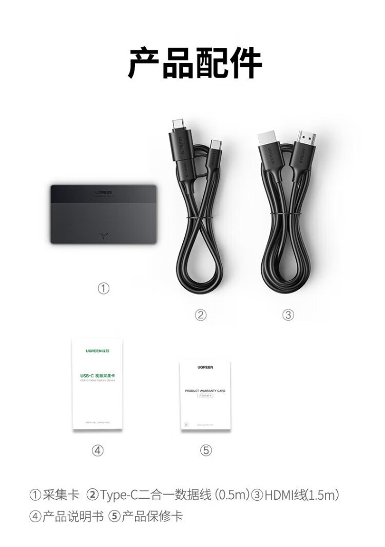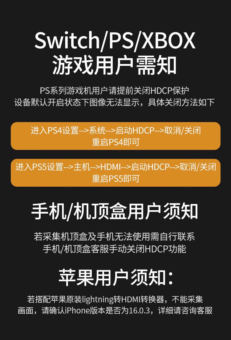 绿联HDMI高清视频采集卡4K环出 适用VR尼康索尼佳能单反Switch/PS5手机平板电脑相机游戏抖音直播录制
