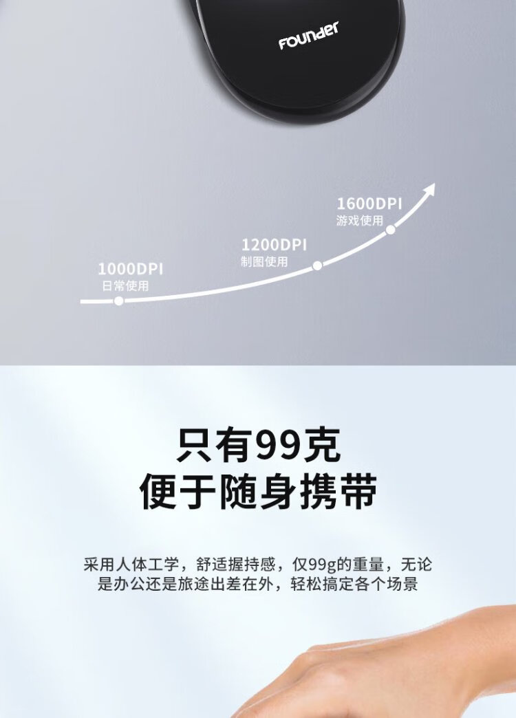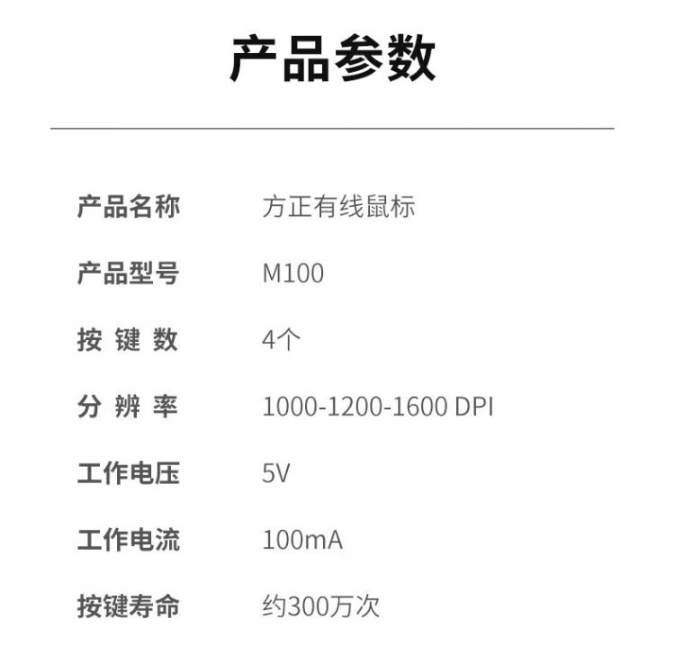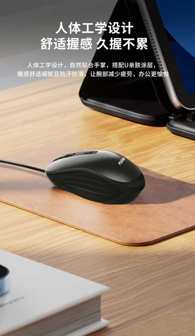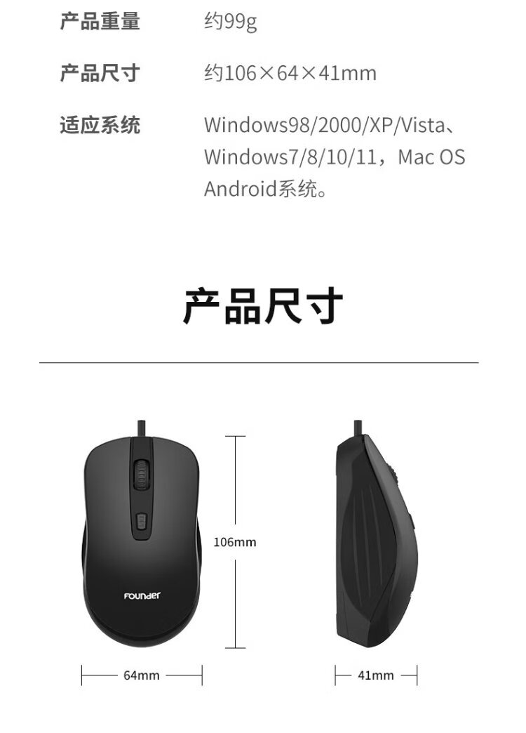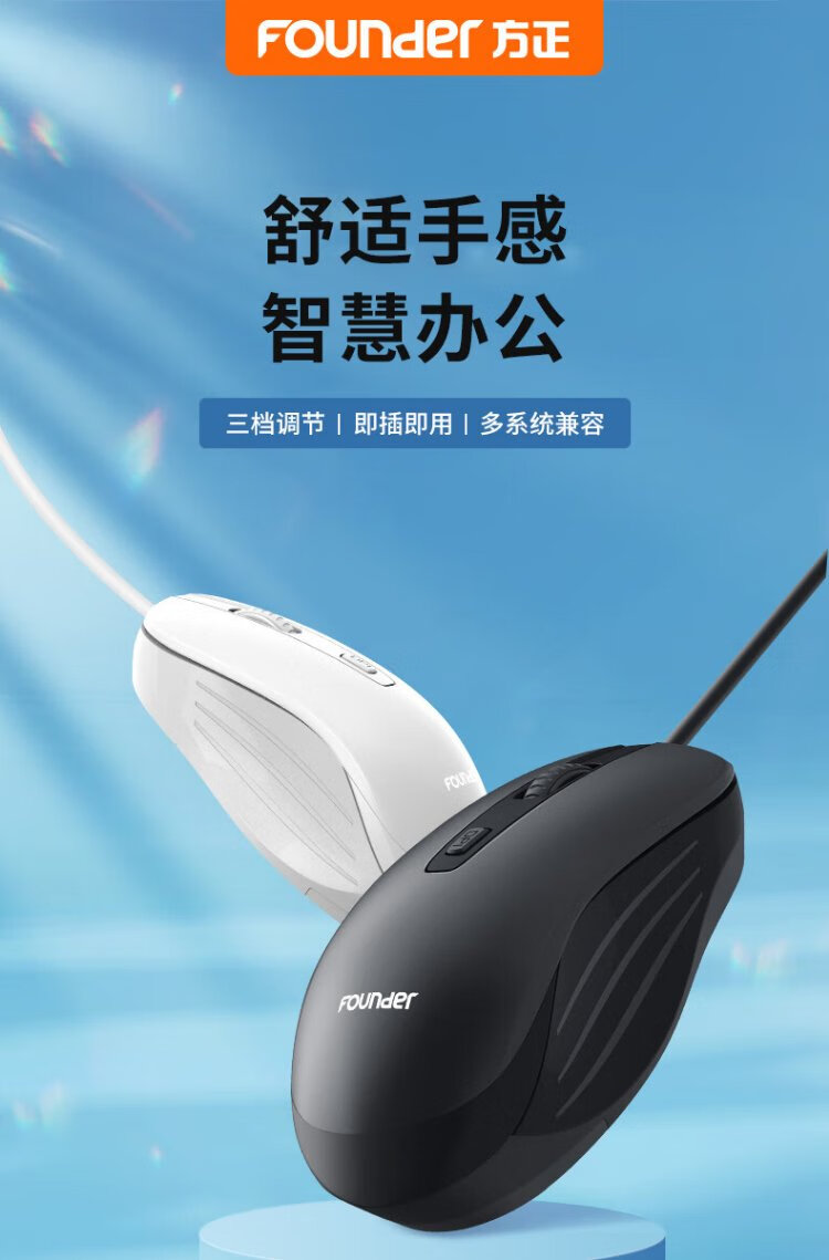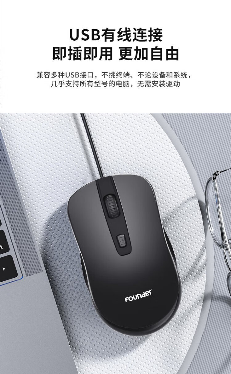 方正Founder有线鼠标 企业采购商务办公鼠标 人体工学设计USB即插即用 适用台式机笔记本办公游戏鼠标【黑色】