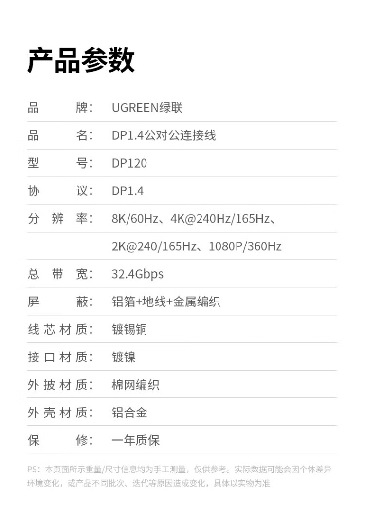 Greenlink DP cable version 1.4 8K HD 4K/2K240Hz DisplayPort suitable for computer graphics card to monitor e-sports video cable 1.5 meters compatible with DP1.2 25904