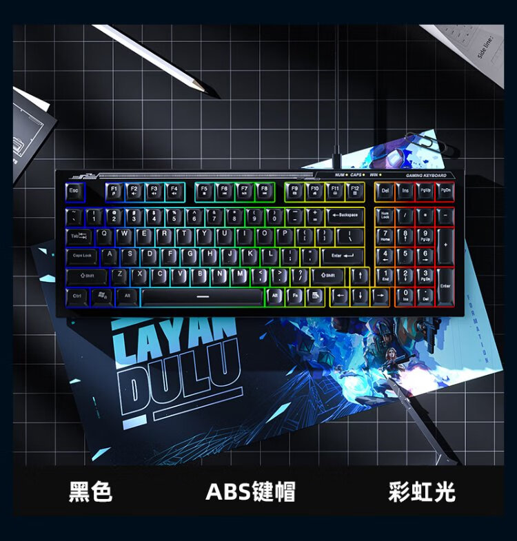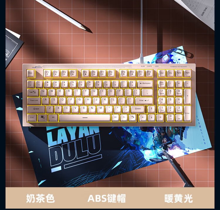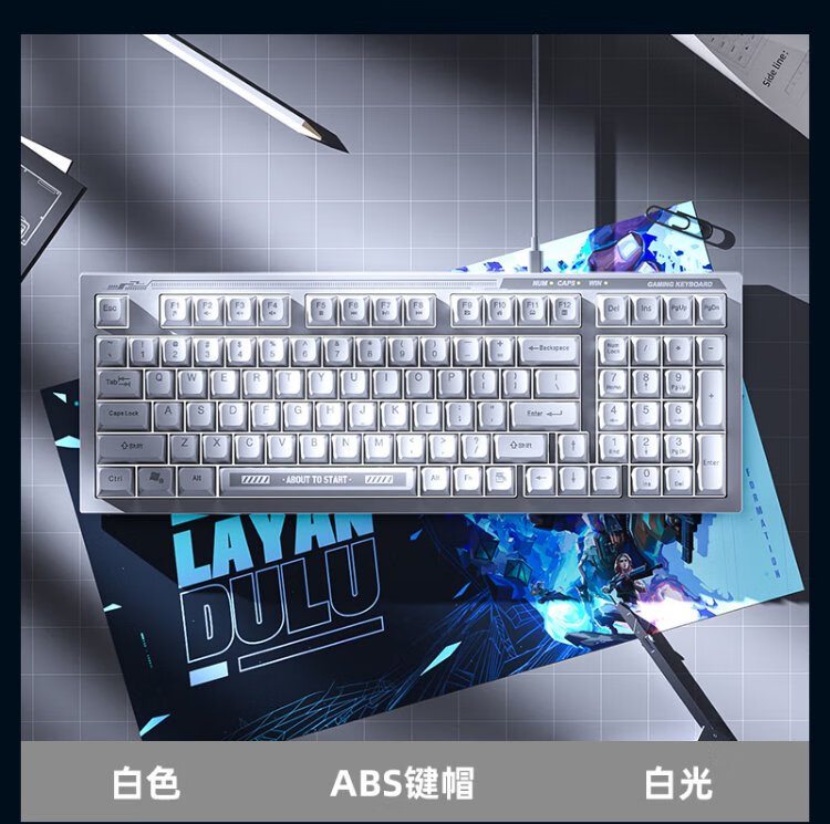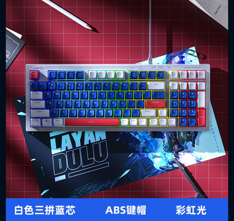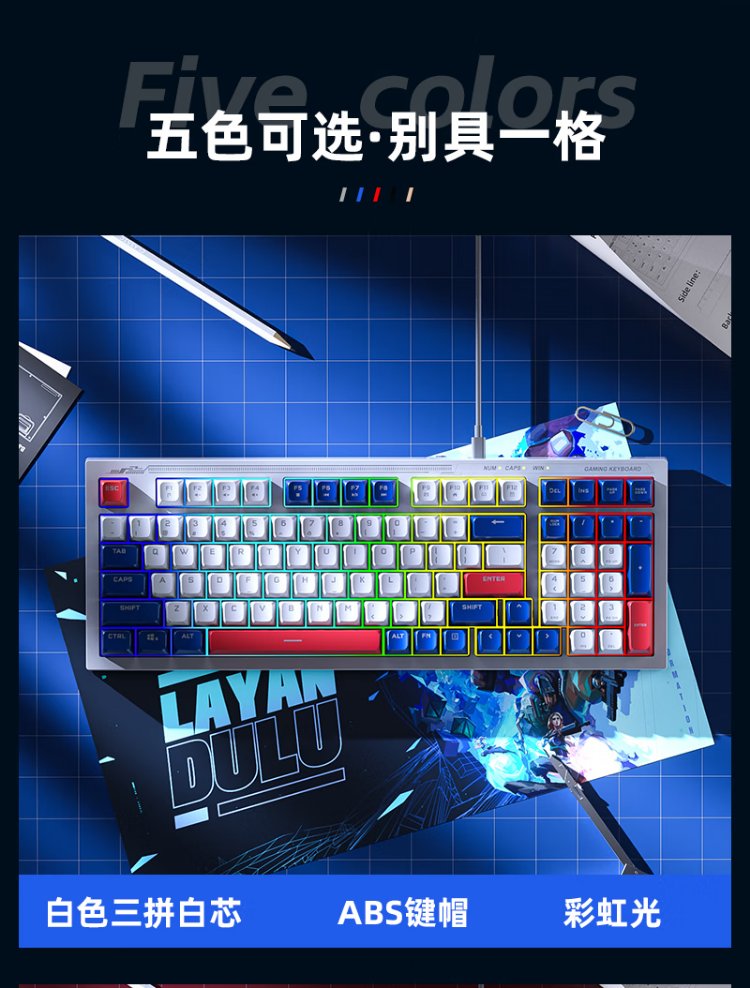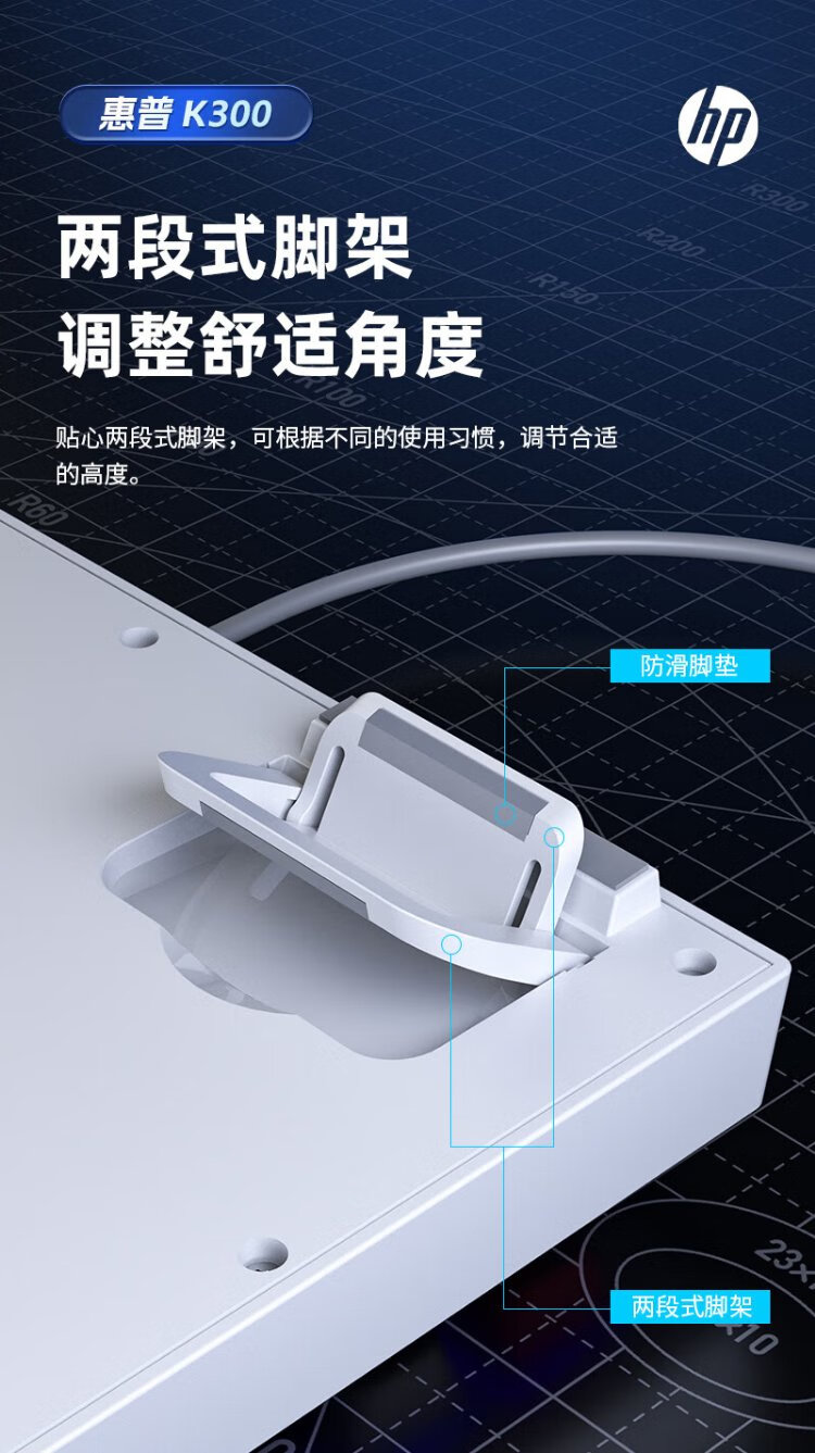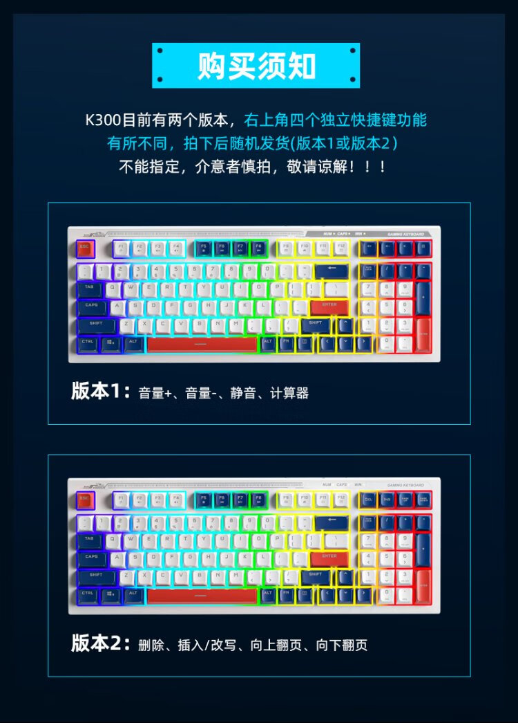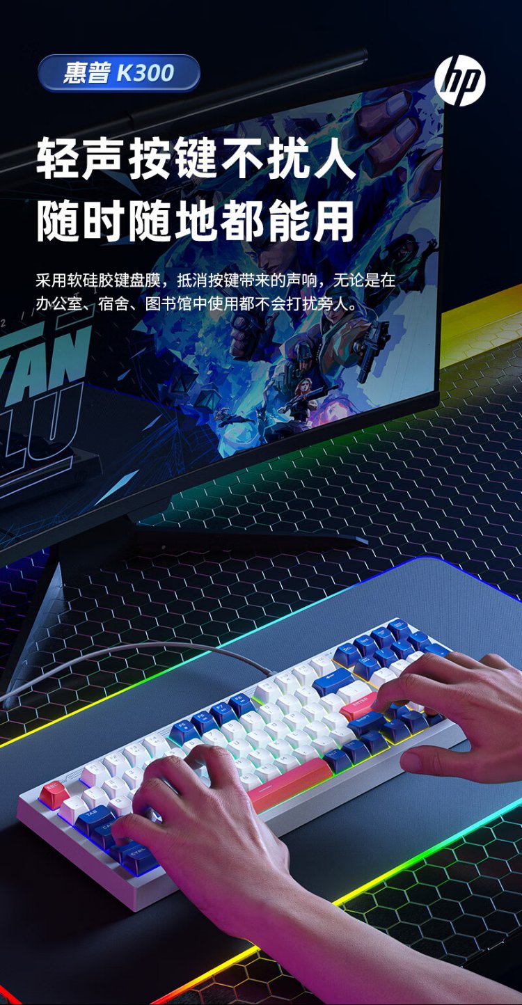 惠普(HP)K300真机械手感键盘 轻音高颜值 98客制化配列 插拔有线游戏专用吃鸡笔记本电脑电竞lol三拼色白芯