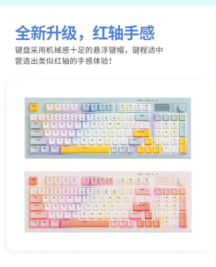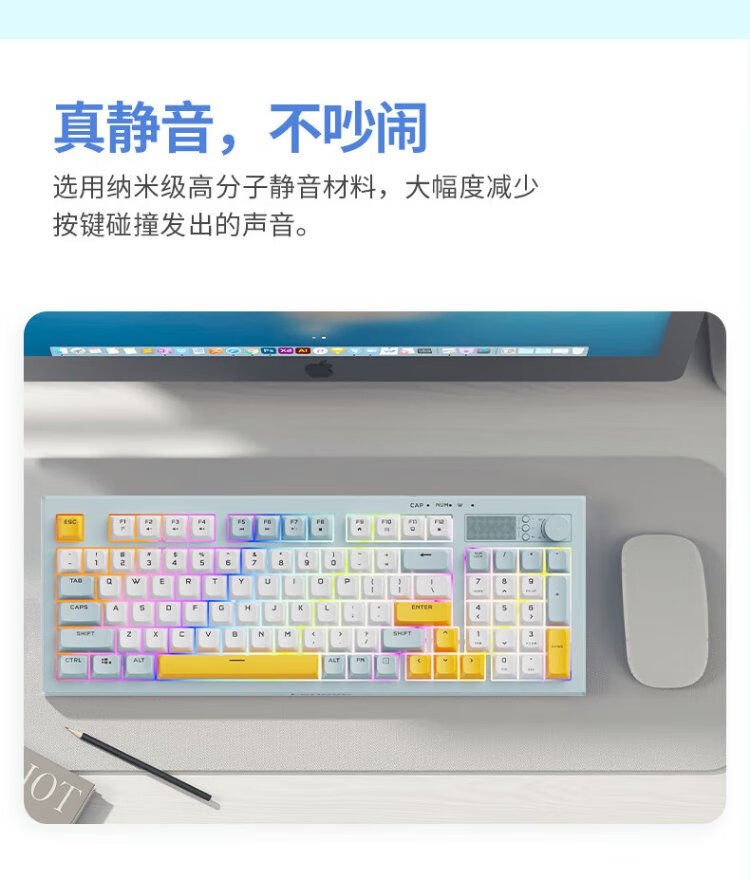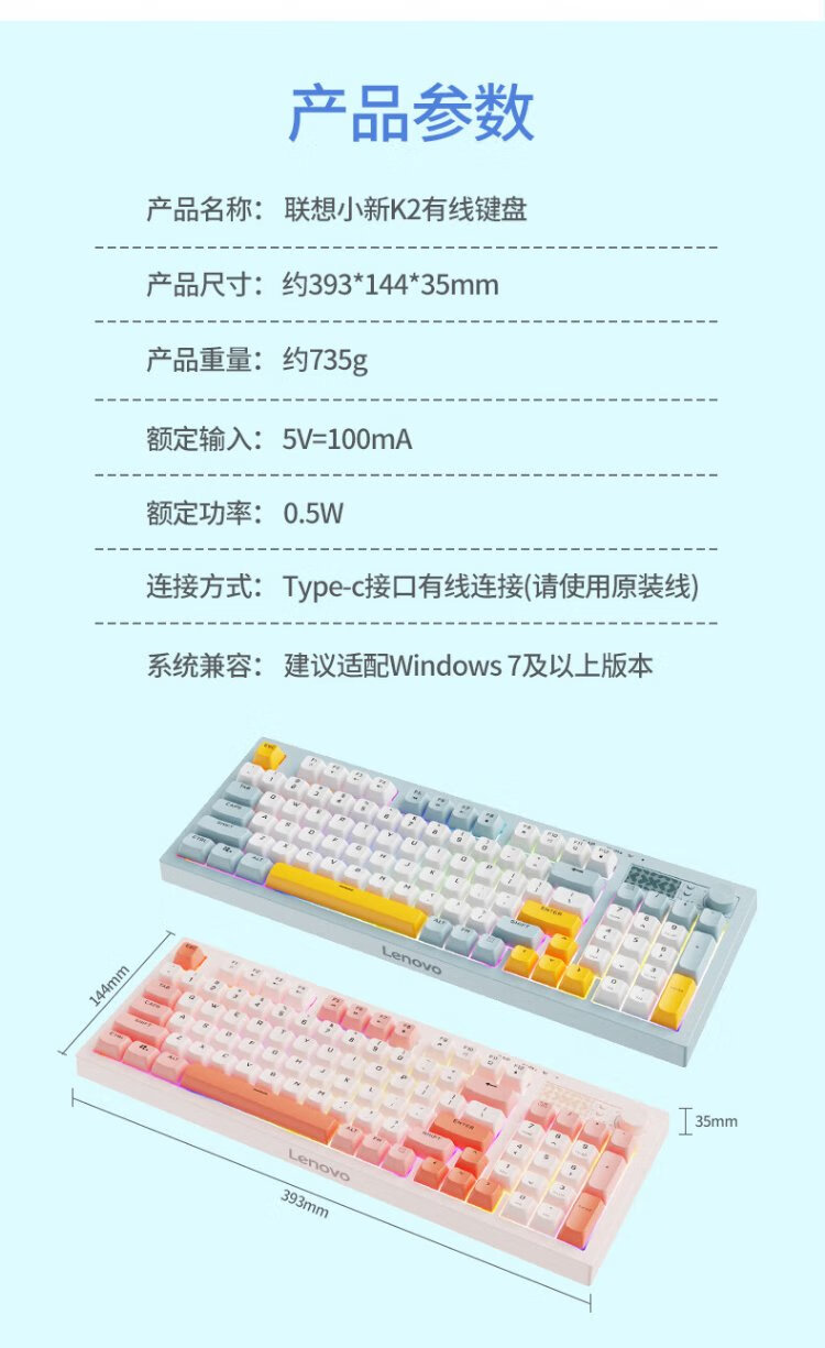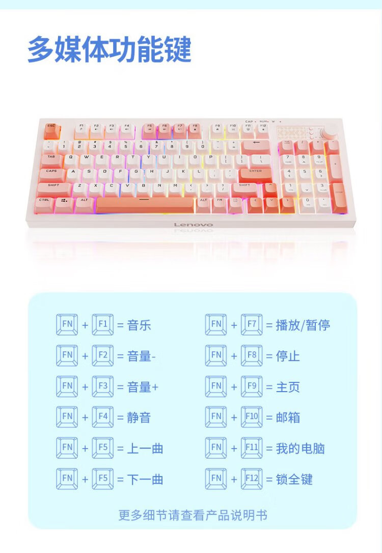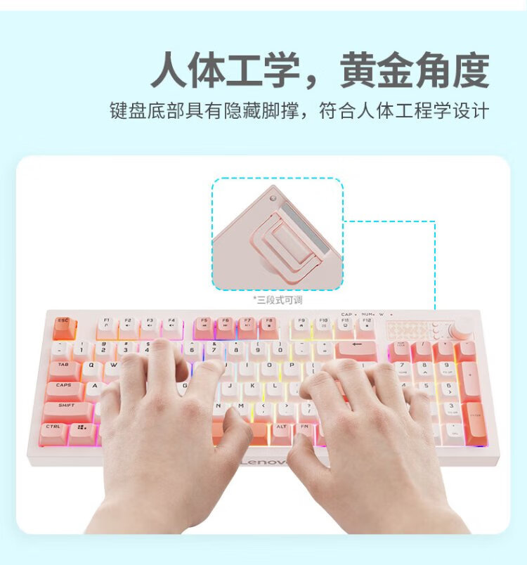 Проводная мягкая клавиатура Lenovo K2, механическое ощущение, 95-клавишная конструкция с глушителем, разноцветный световой эффект, эргономика, ручка громкости, проводная офисная клавиатура, подбор цветов, кварцевый порошок