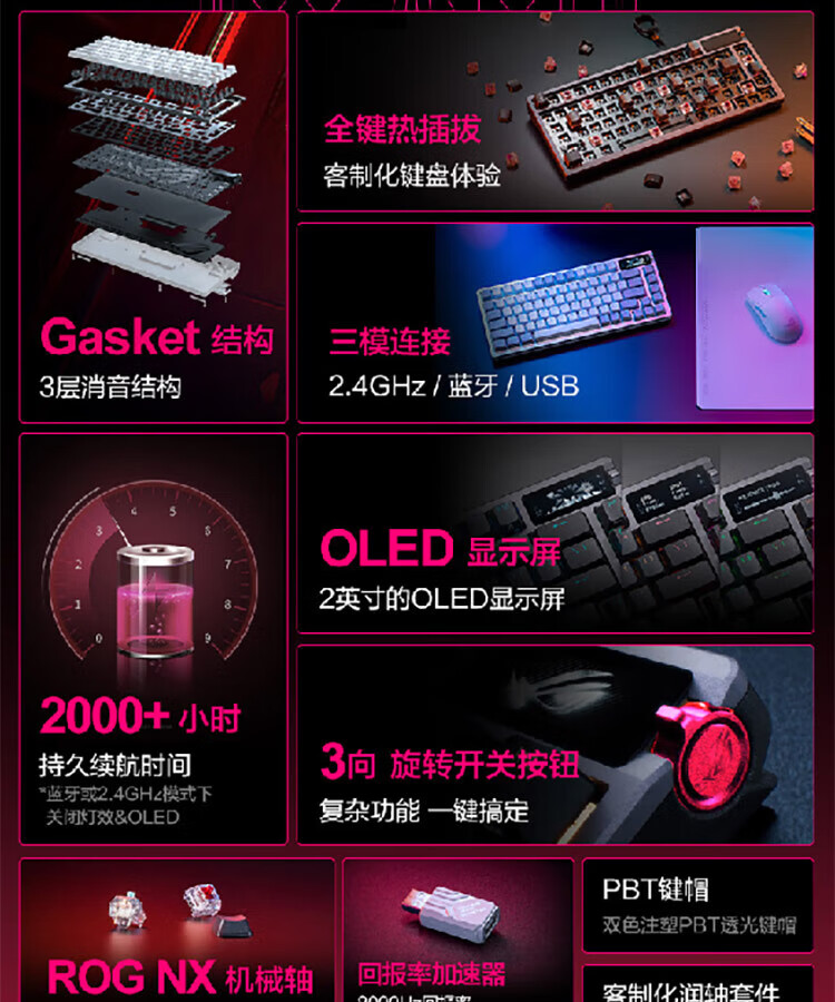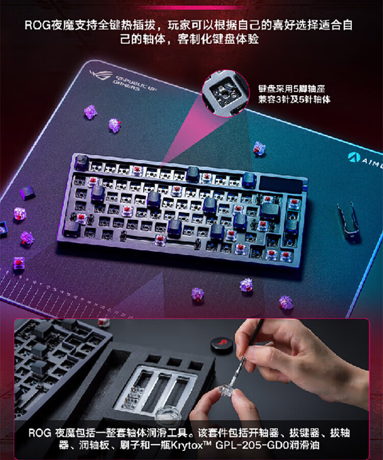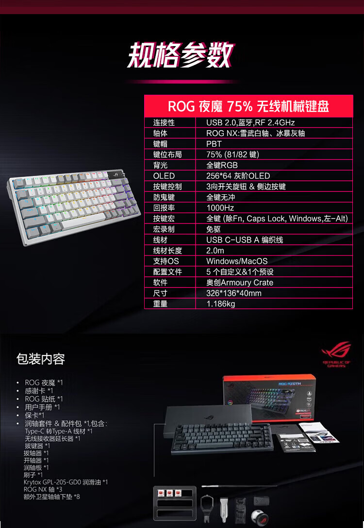 Механическая клавиатура ROG Night Demon, трехрежимная игровая клавиатура с беспроводной связью и Bluetooth, RGB, с возможностью горячей замены, по индивидуальному заказу, структура прокладки, OLED-экран, клавиатура, государственная субсидия Dark Night Black Xuewu White Axis