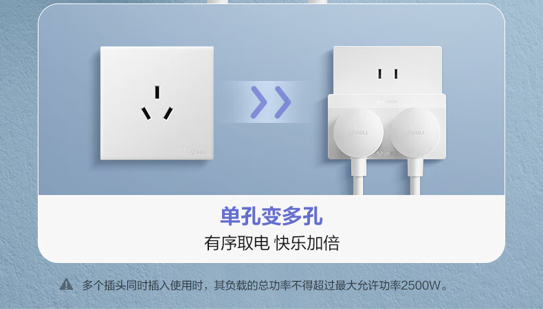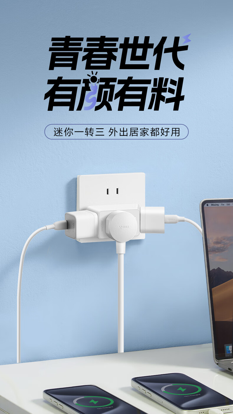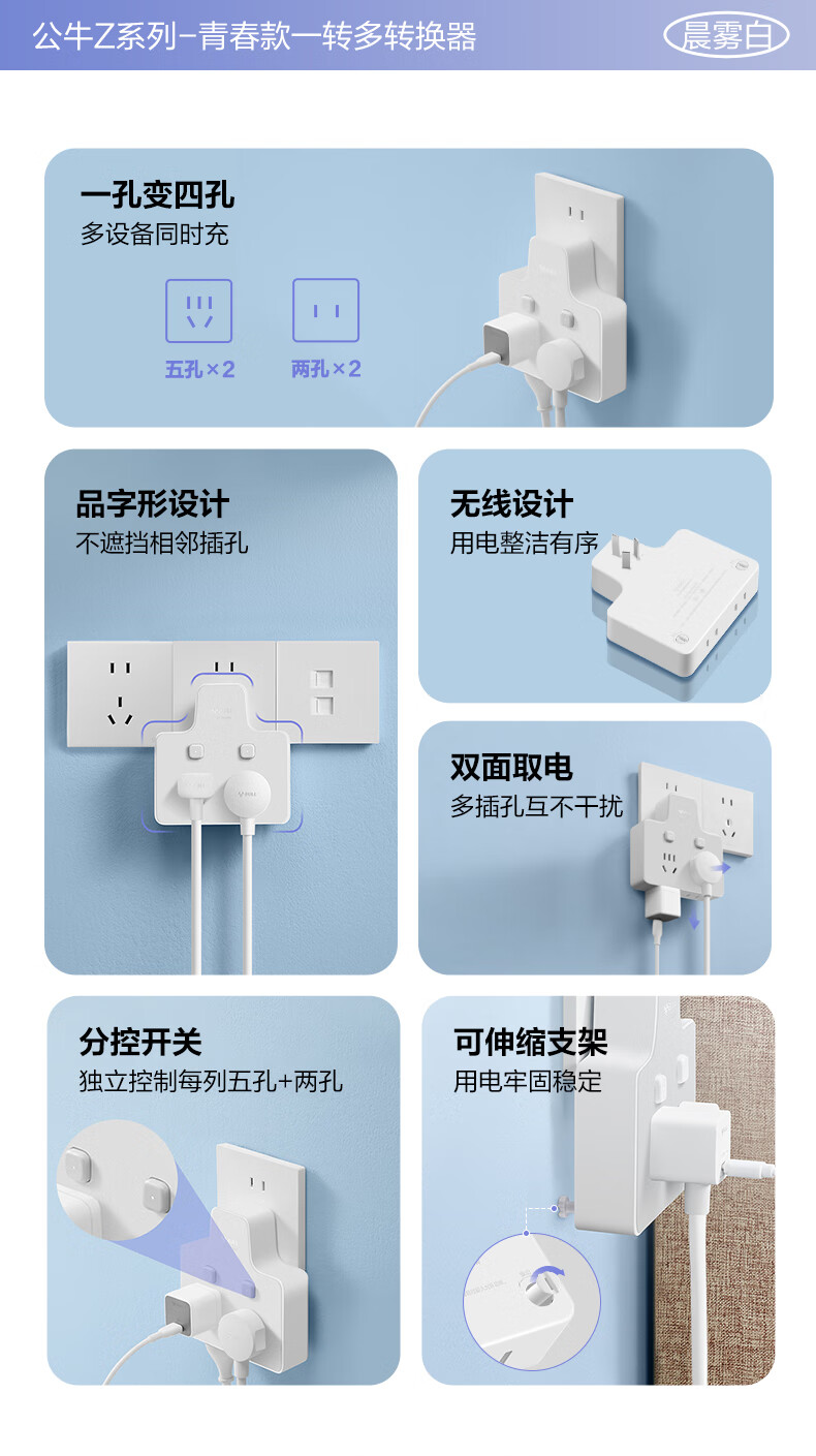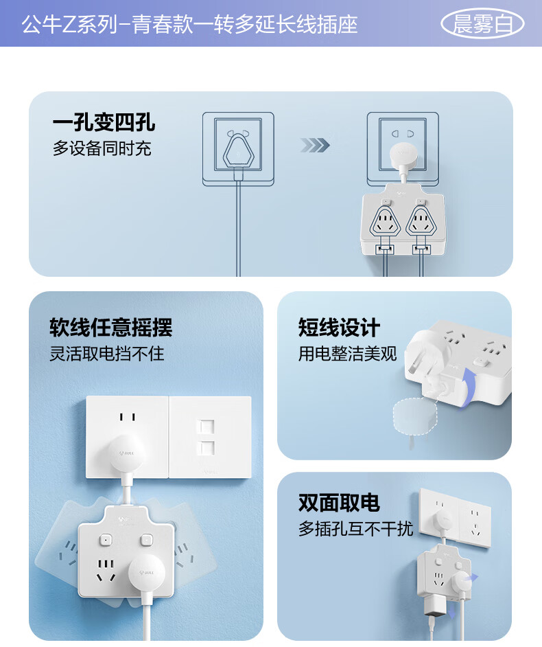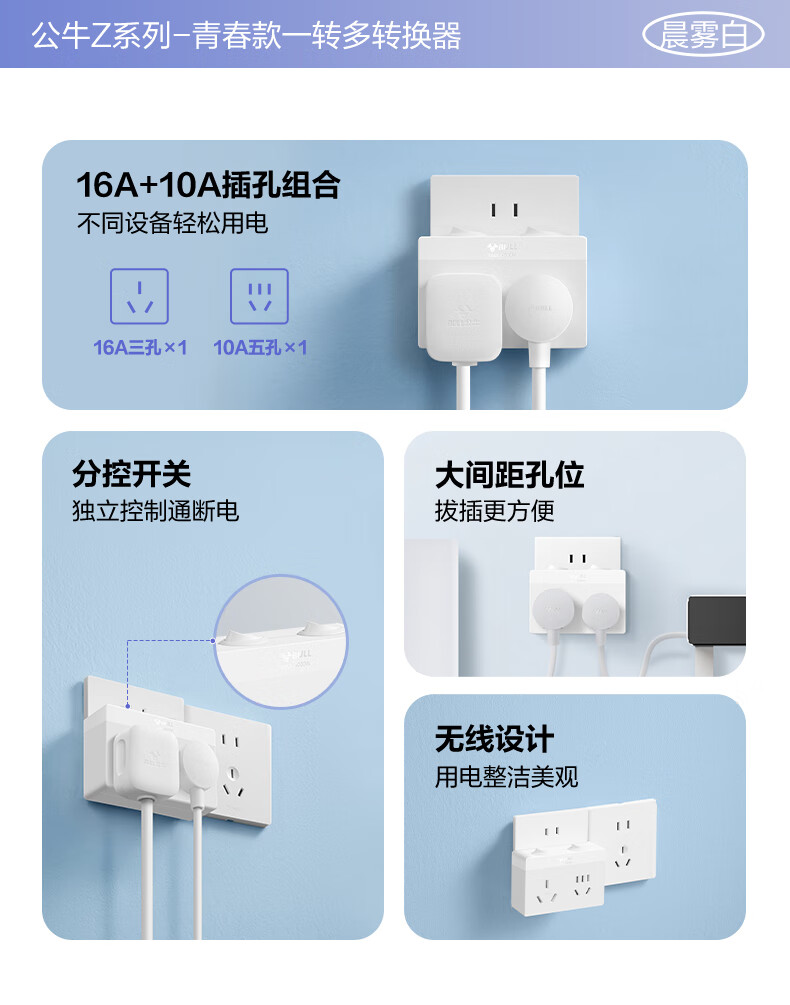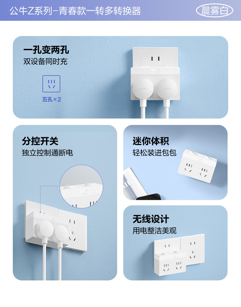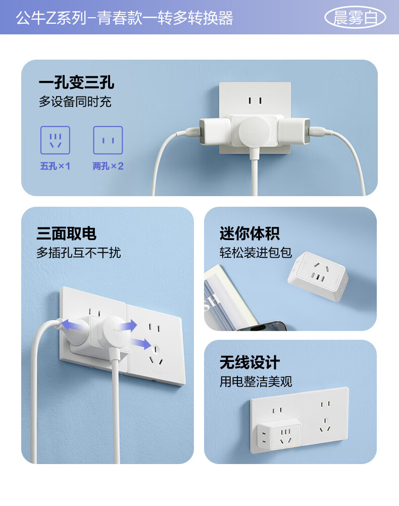 Bull (BULL) one-turn multi-socket expander plug-in strip expander conversion head one-turn two-turn connector socket conversion plug Generation Z flexible one-turn six-point control Morning Mist White Z97333