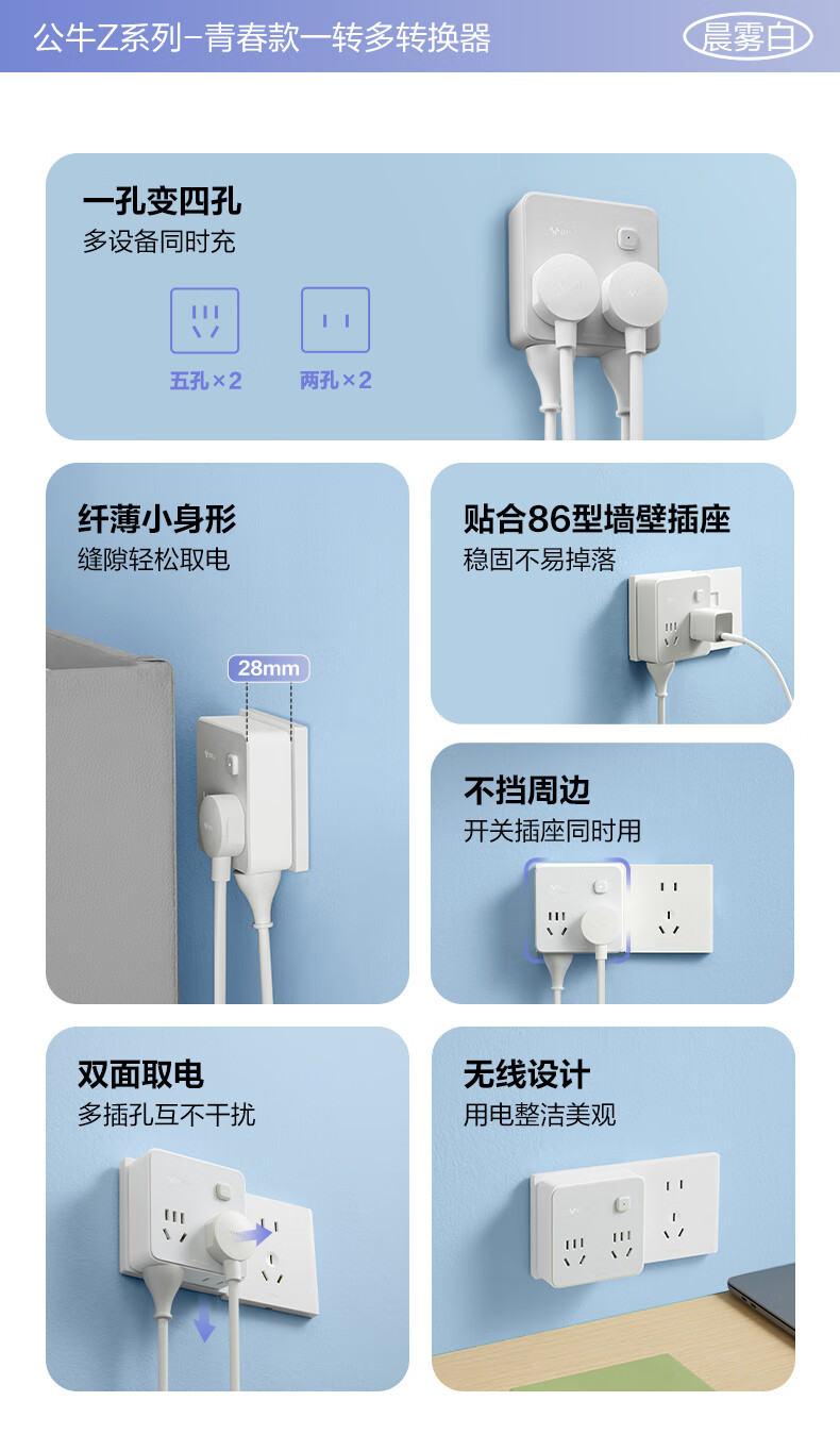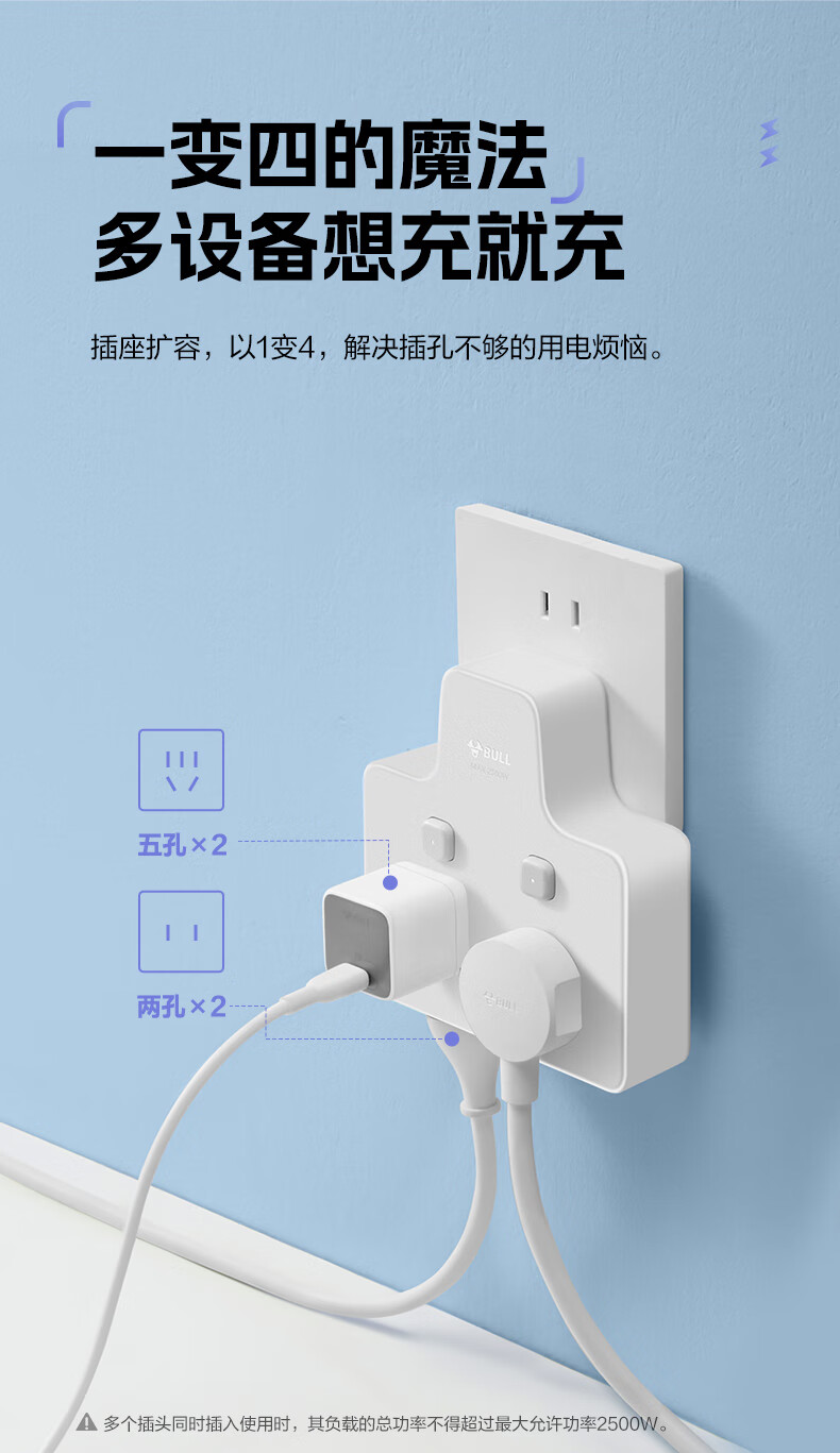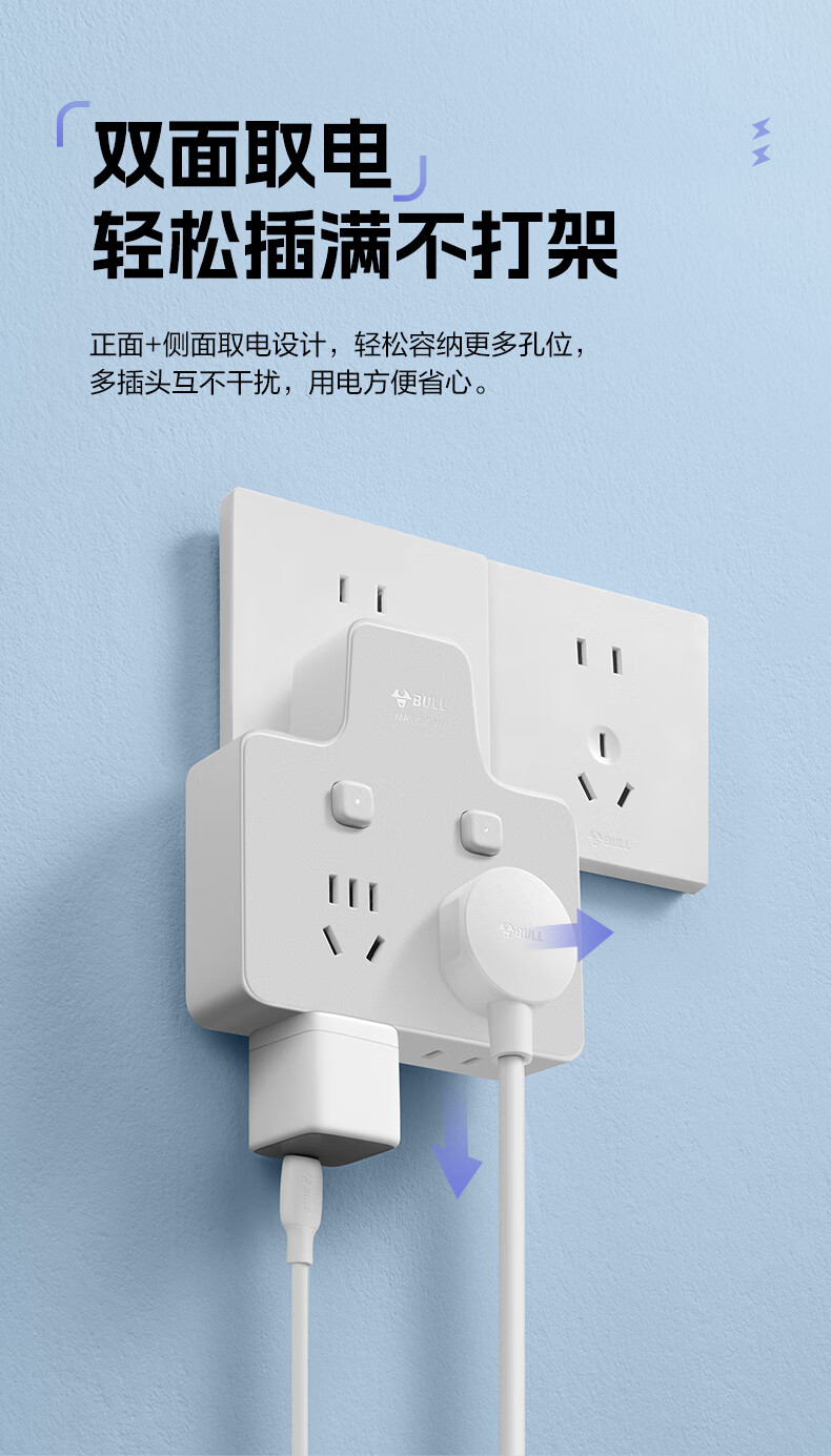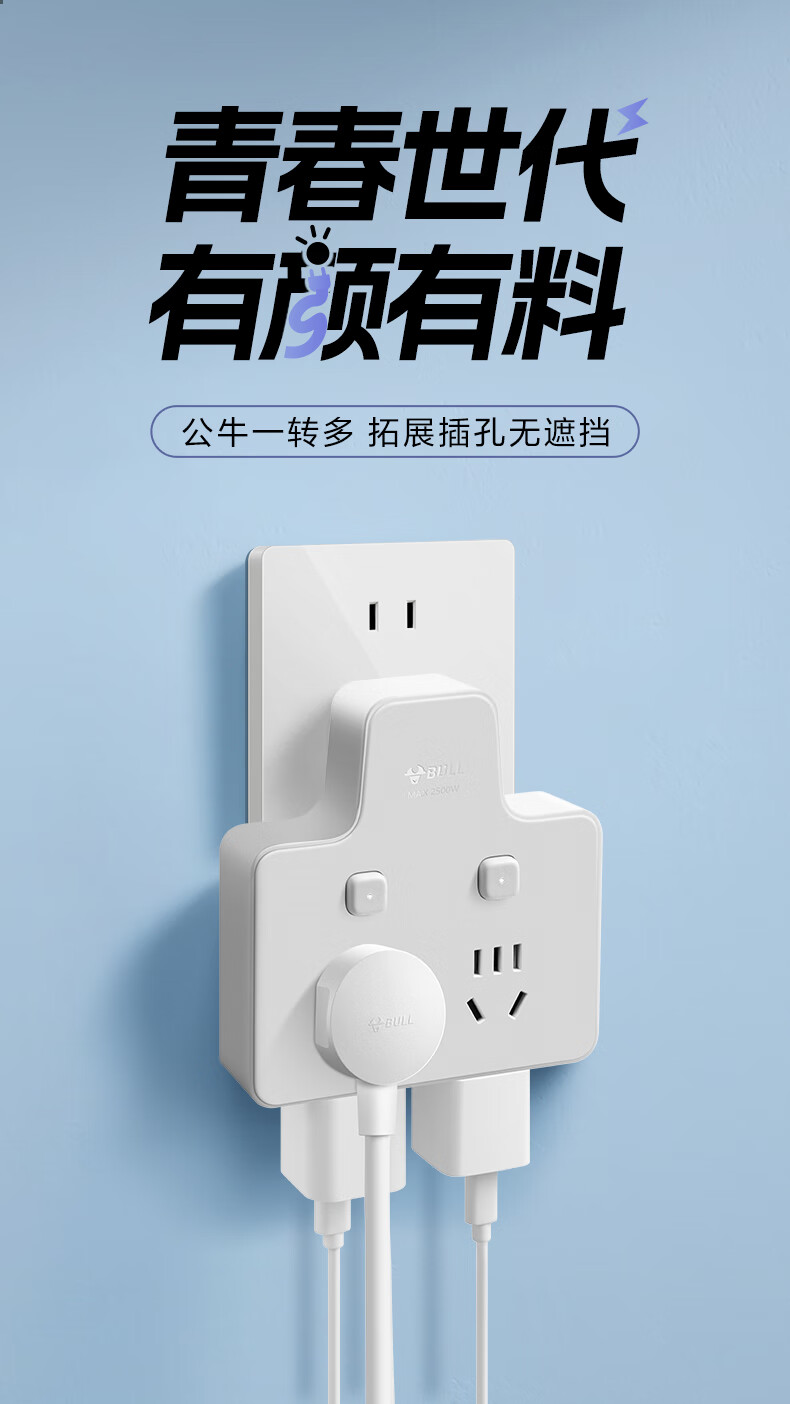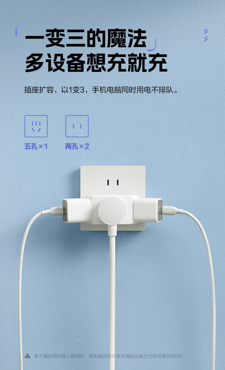 Bull (BULL) one-turn multi-socket expander plug-in strip expander conversion head one-turn two-turn connector socket conversion plug Generation Z flexible one-turn six-point control Morning Mist White Z97333