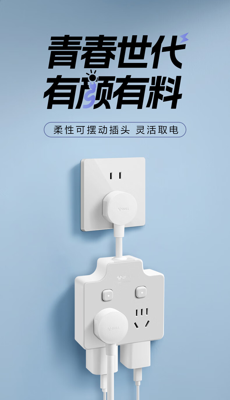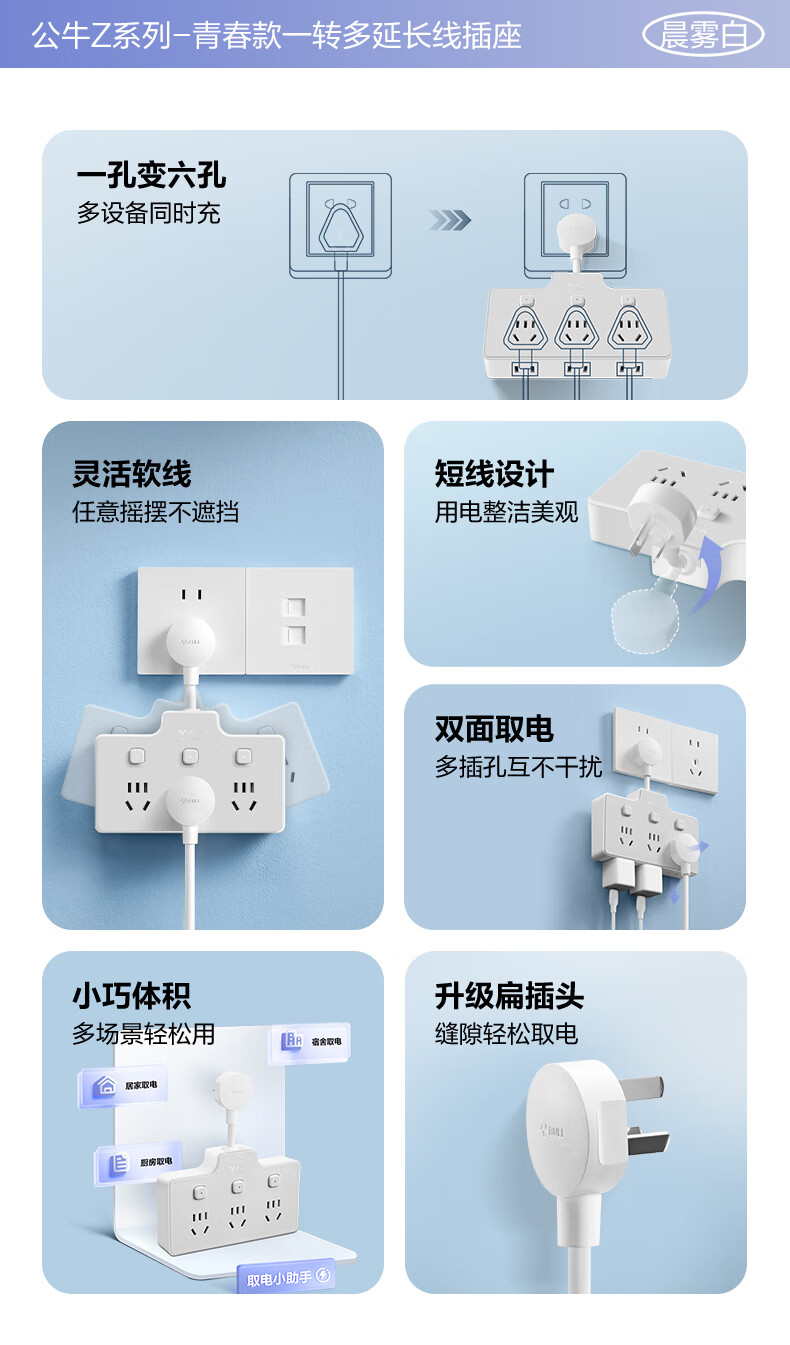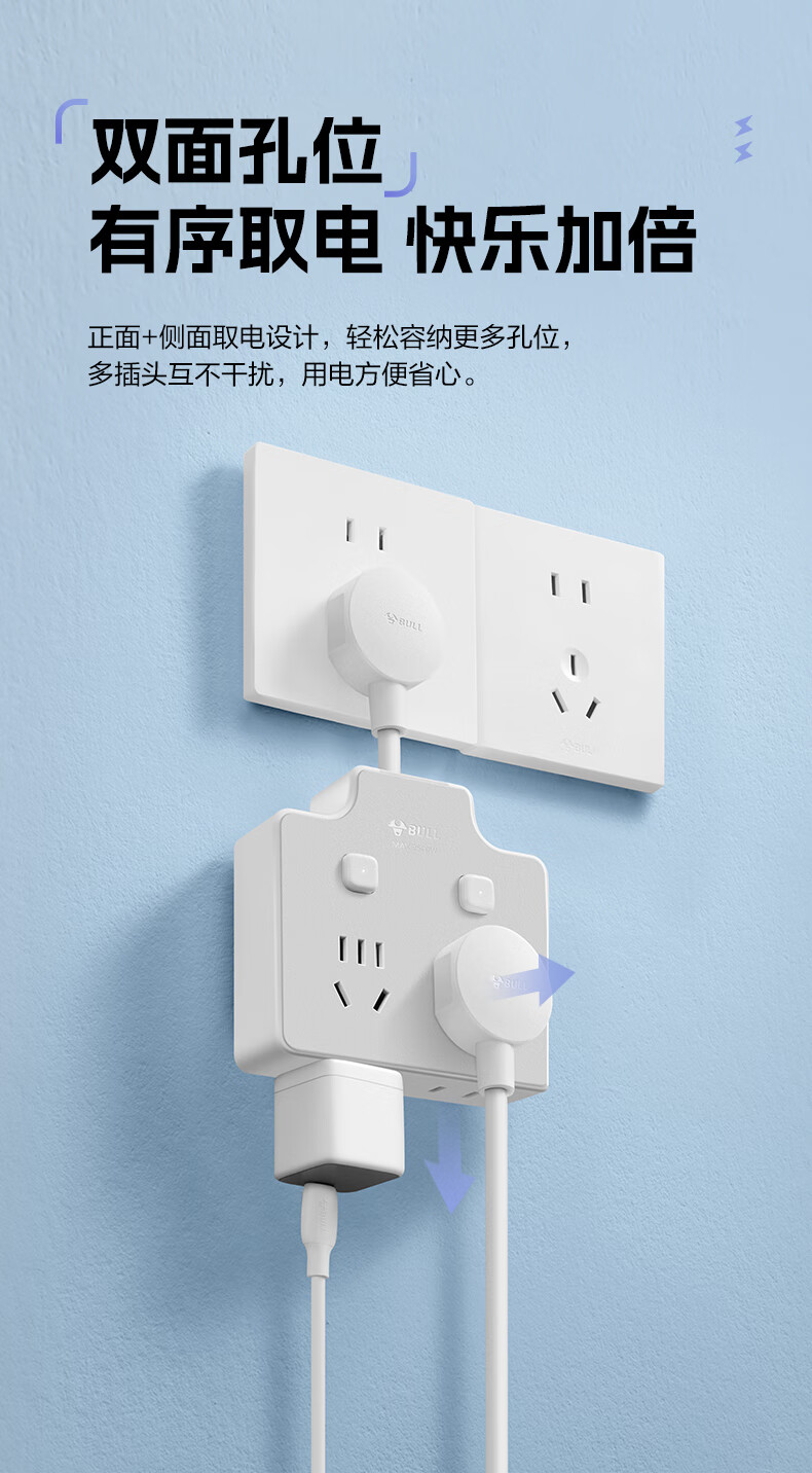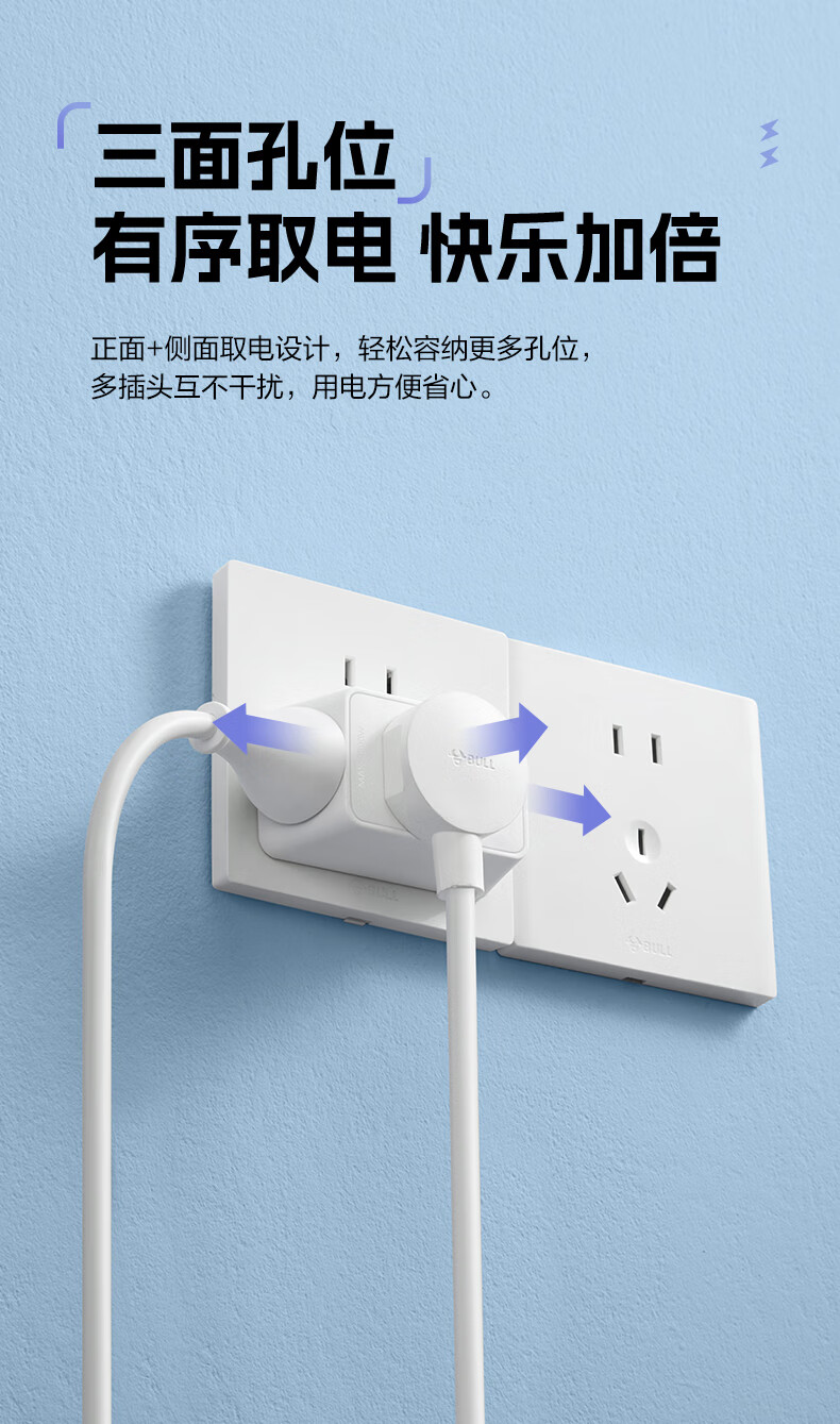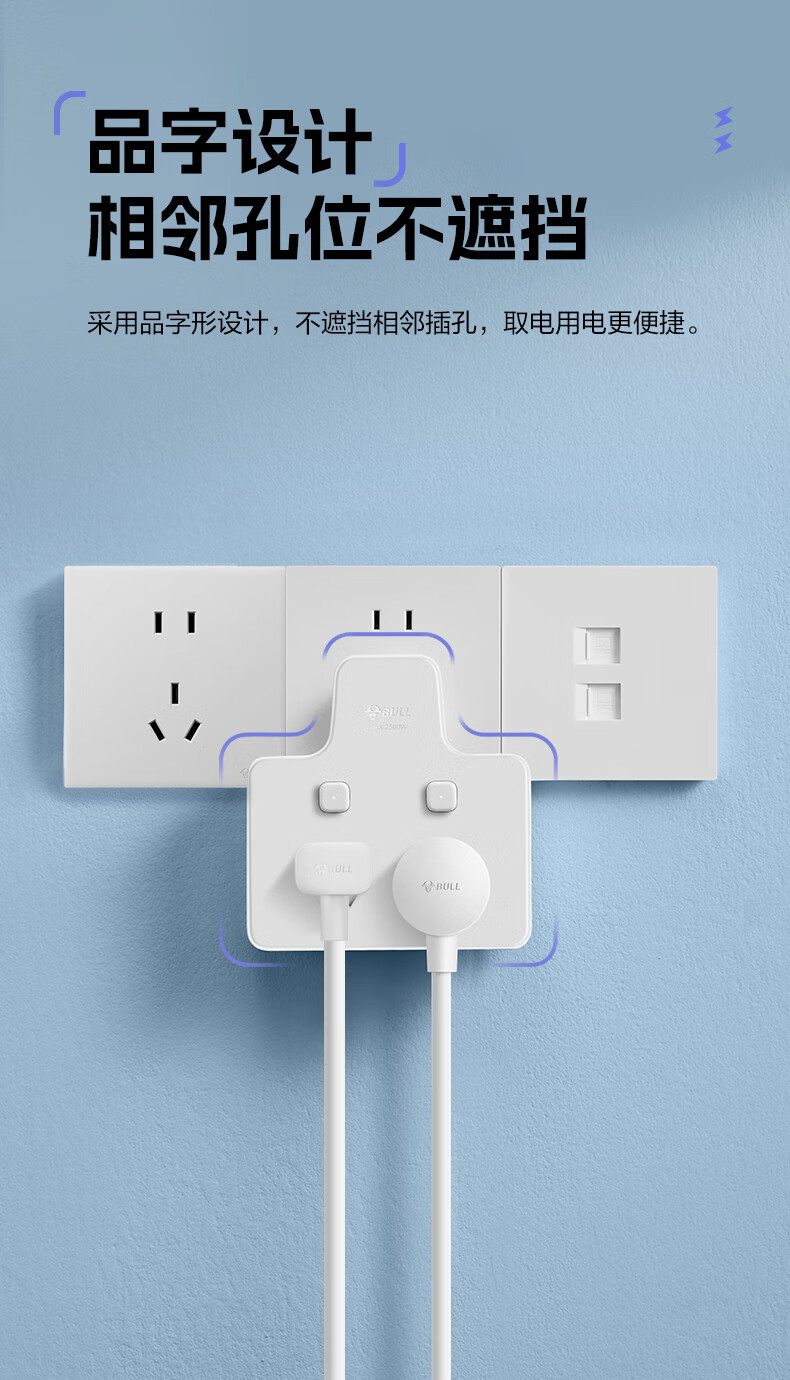 Bull (BULL) one-turn multi-socket expander plug-in strip expander conversion head one-turn two-turn connector socket conversion plug Generation Z flexible one-turn six-point control Morning Mist White Z97333
