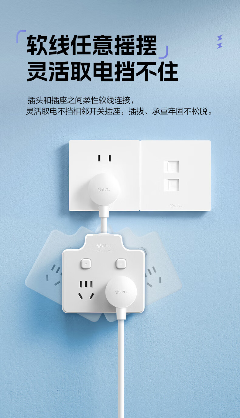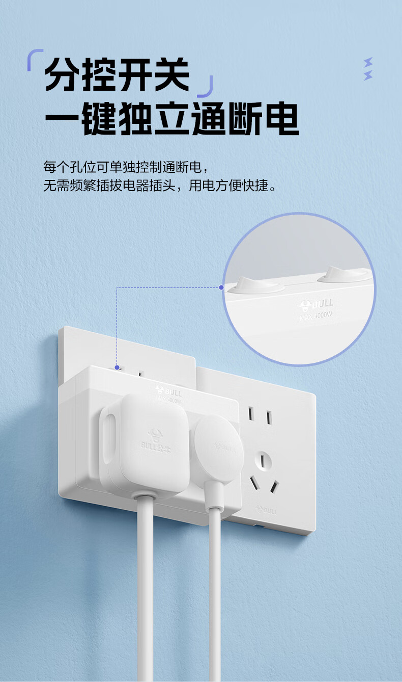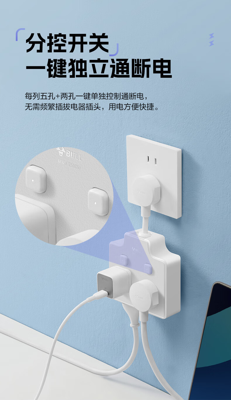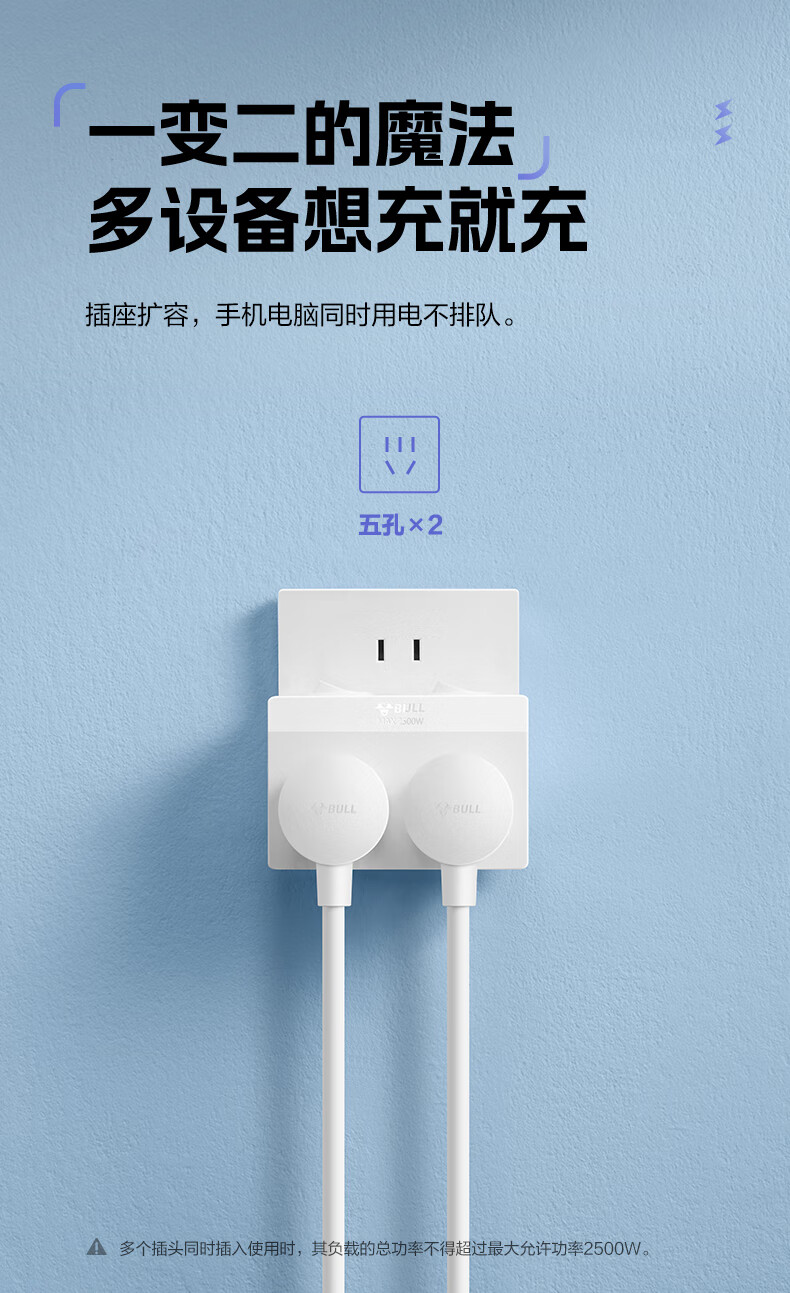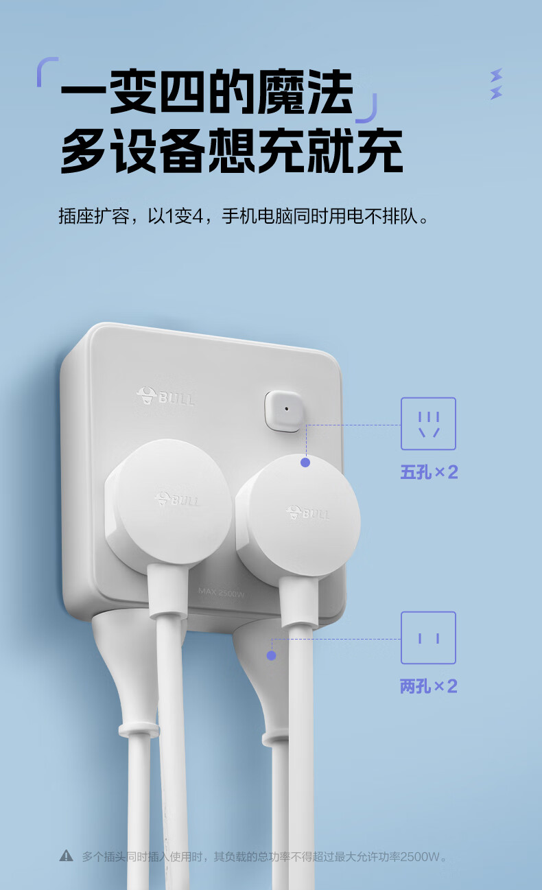 Bull (BULL) one-turn multi-socket expander plug-in strip expander conversion head one-turn two-turn connector socket conversion plug Generation Z flexible one-turn six-point control Morning Mist White Z97333