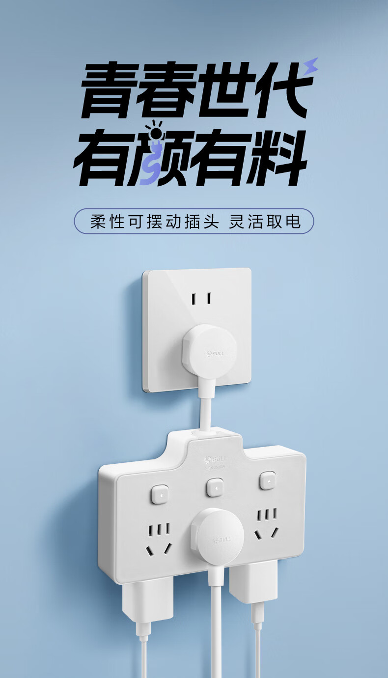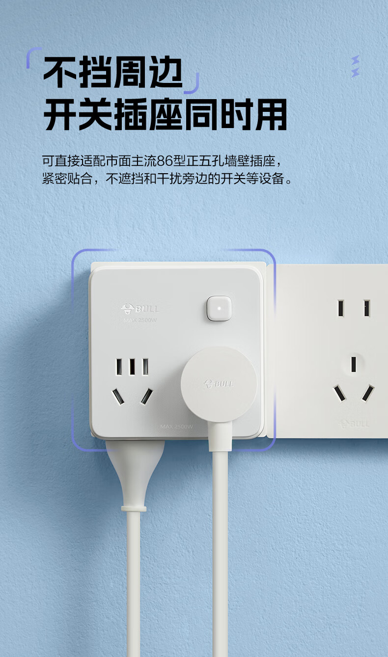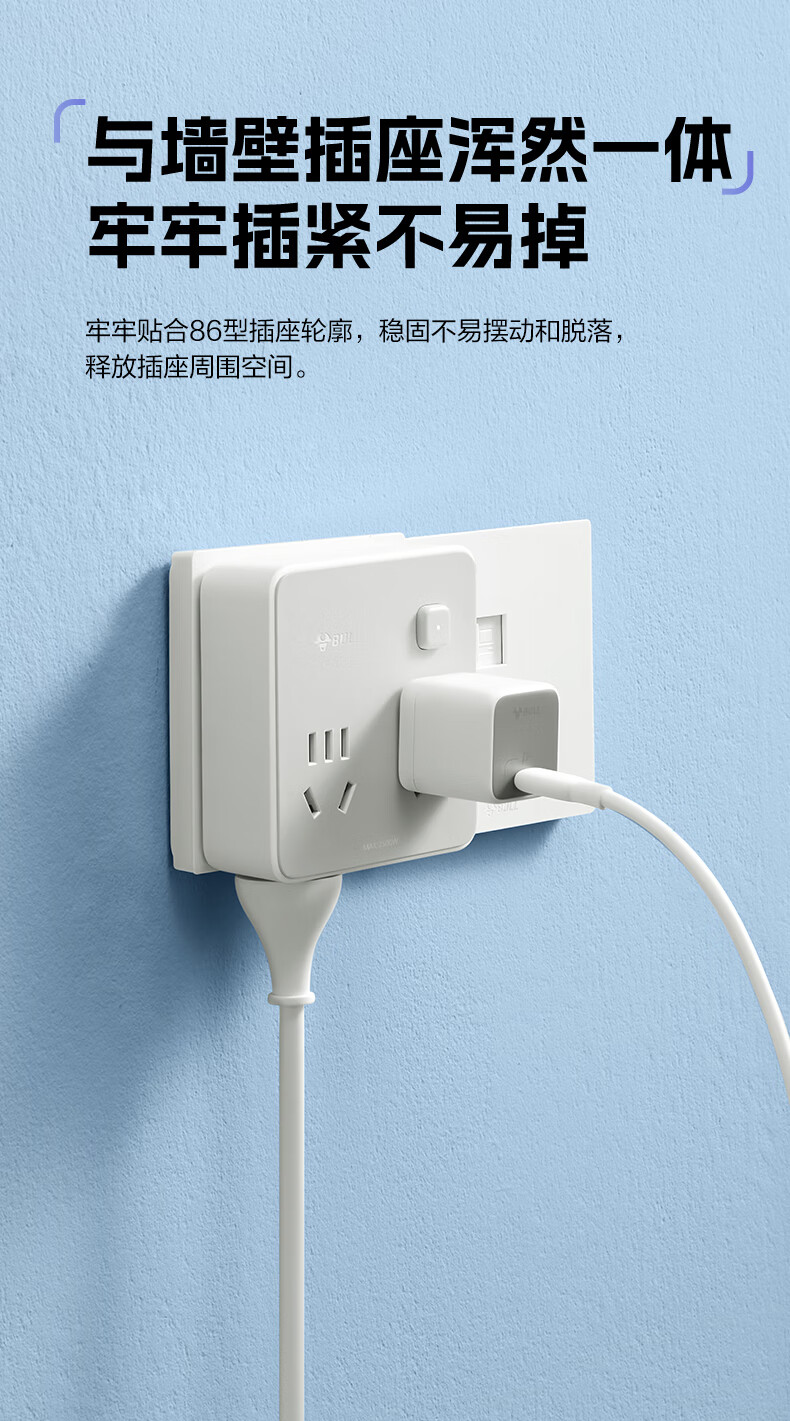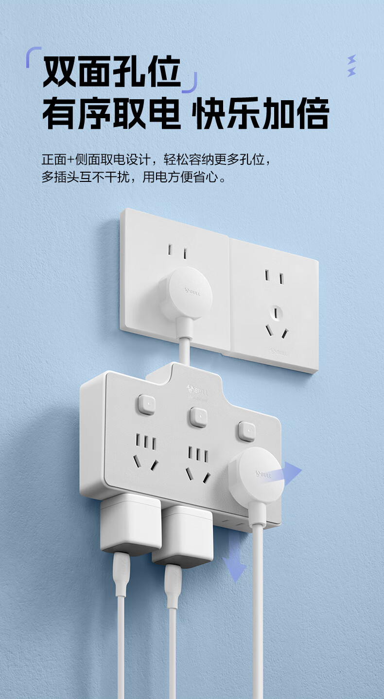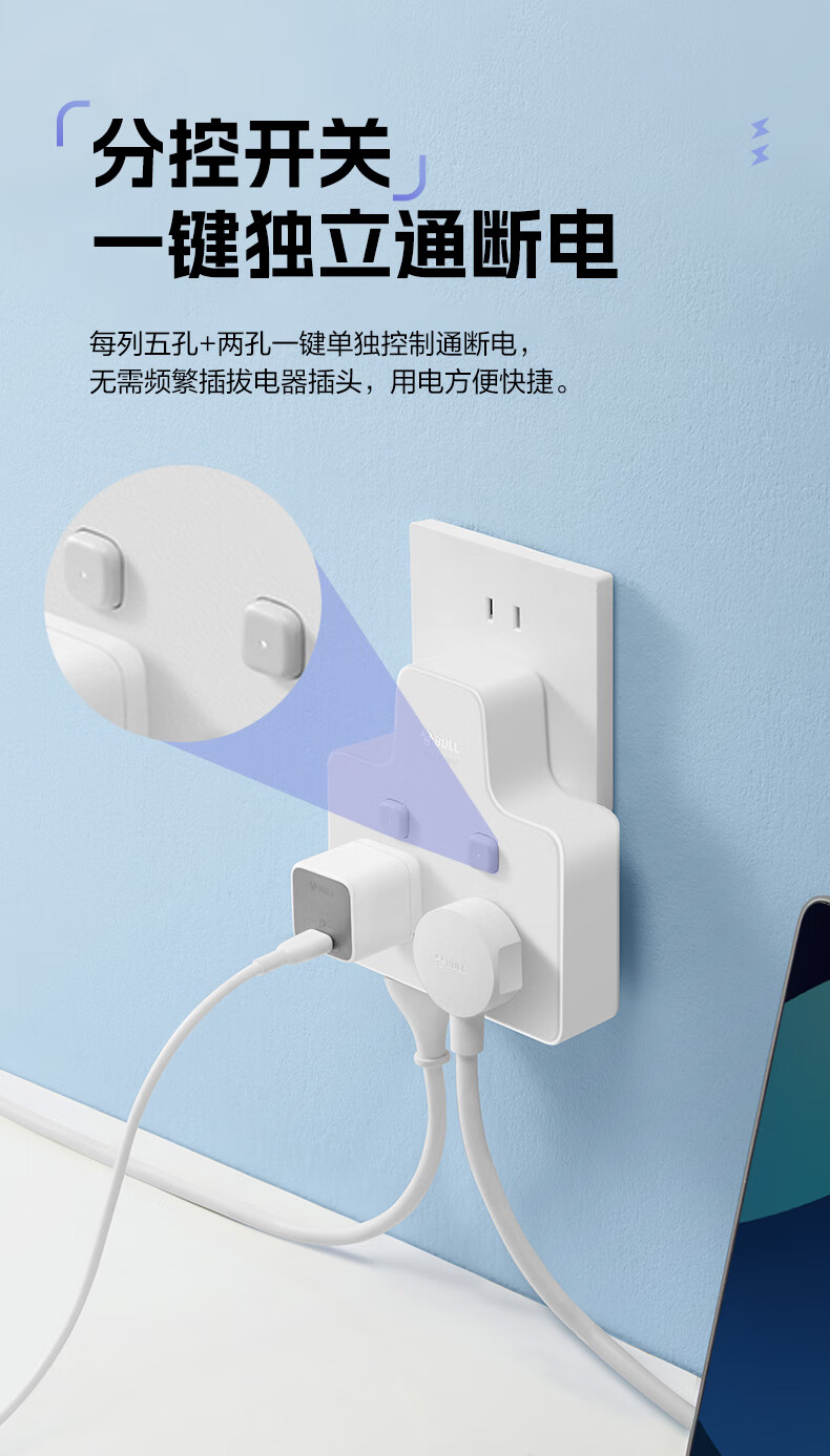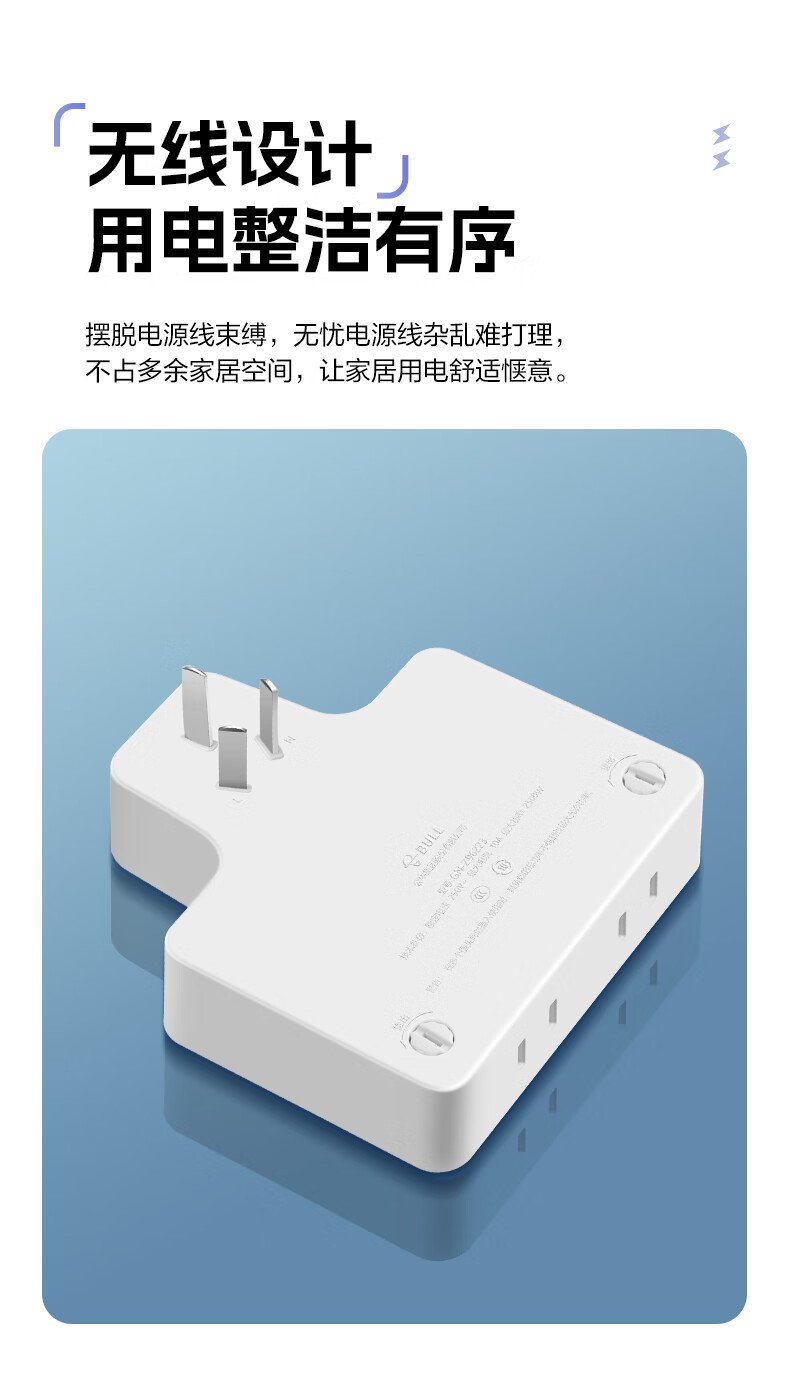 Bull (BULL) one-turn multi-socket expander plug-in strip expander conversion head one-turn two-turn connector socket conversion plug Generation Z flexible one-turn six-point control Morning Mist White Z97333