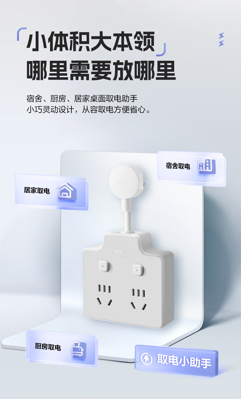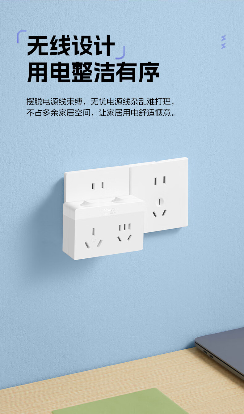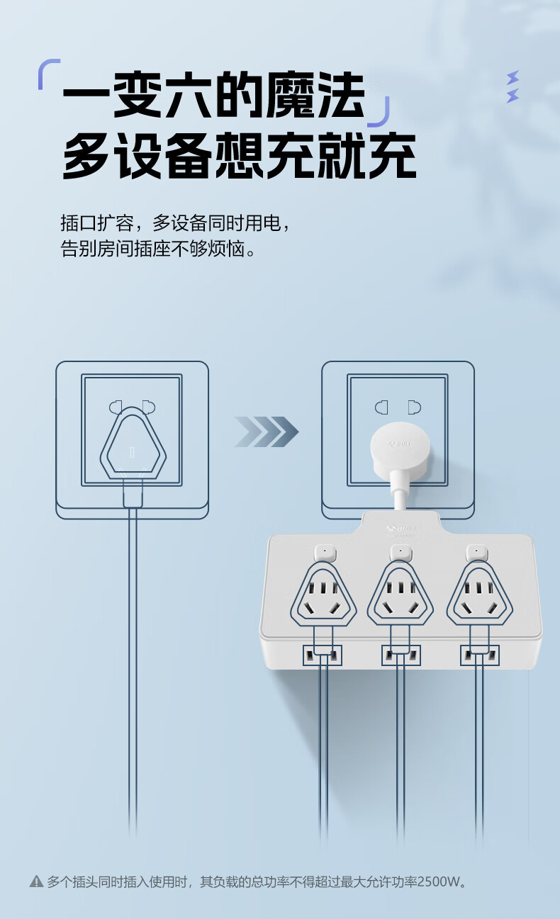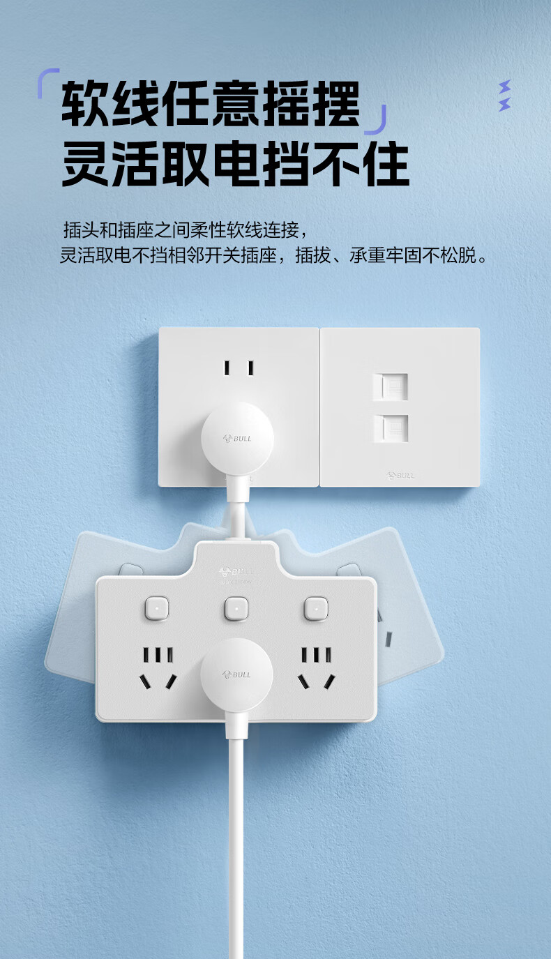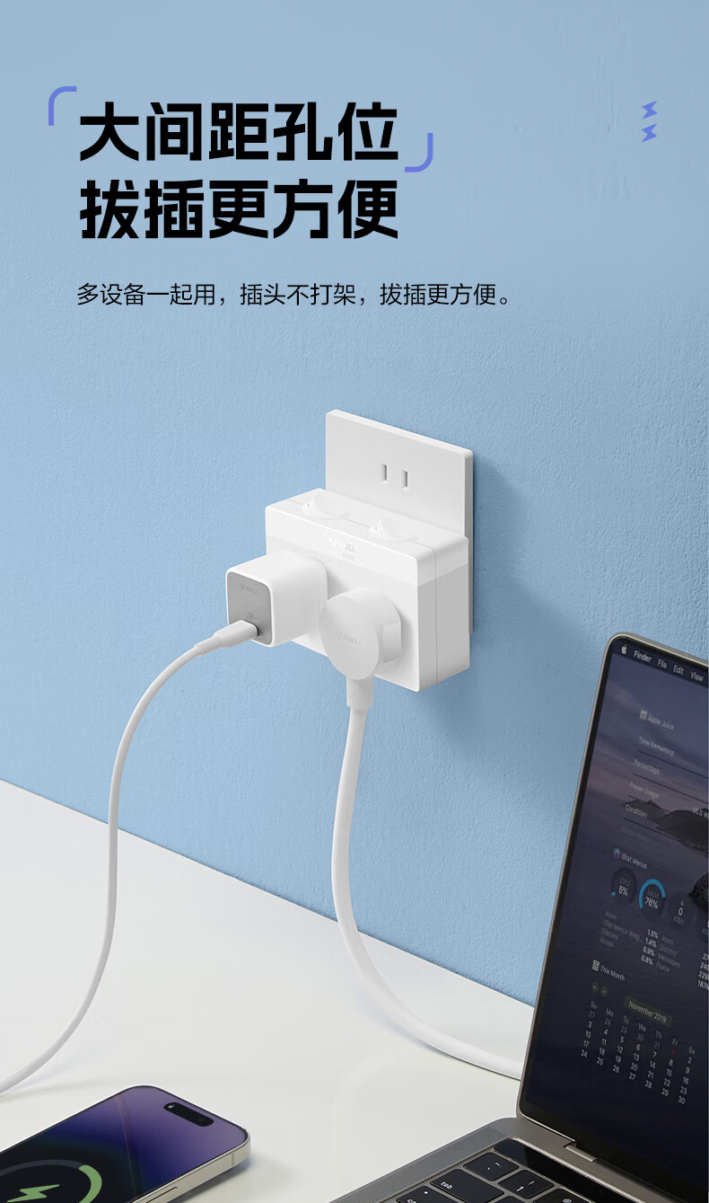Bull (BULL) one-turn multi-socket expander plug-in strip expander conversion head one-turn two-turn connector socket conversion plug Generation Z flexible one-turn six-point control Morning Mist White Z97333