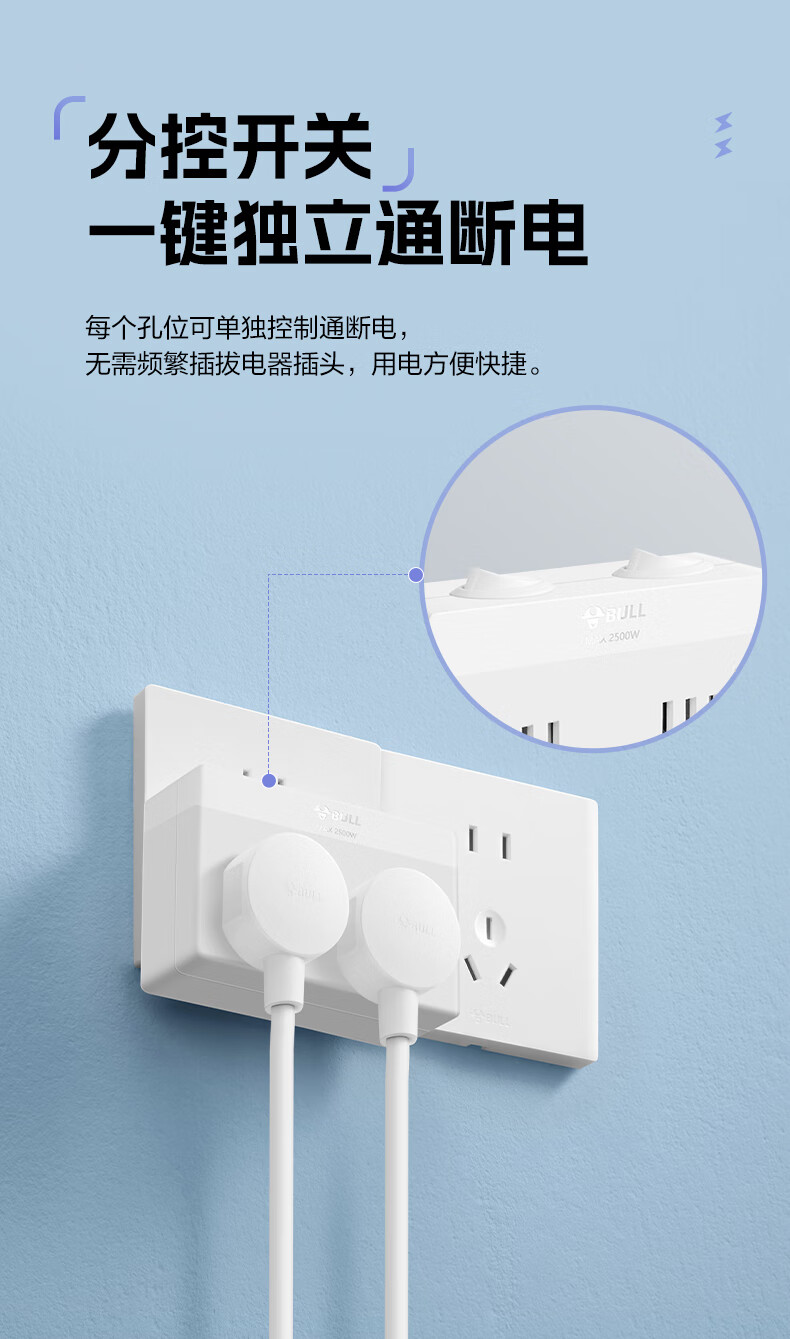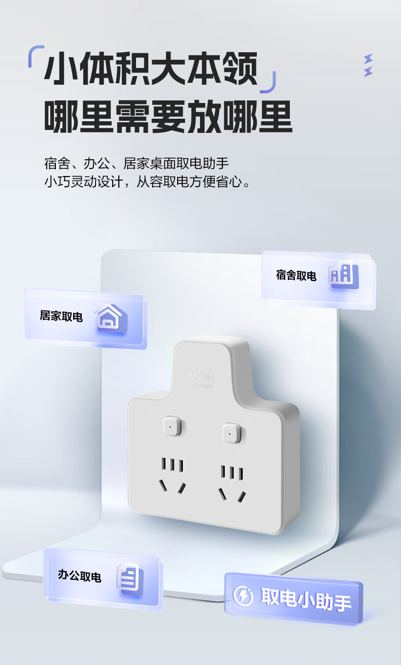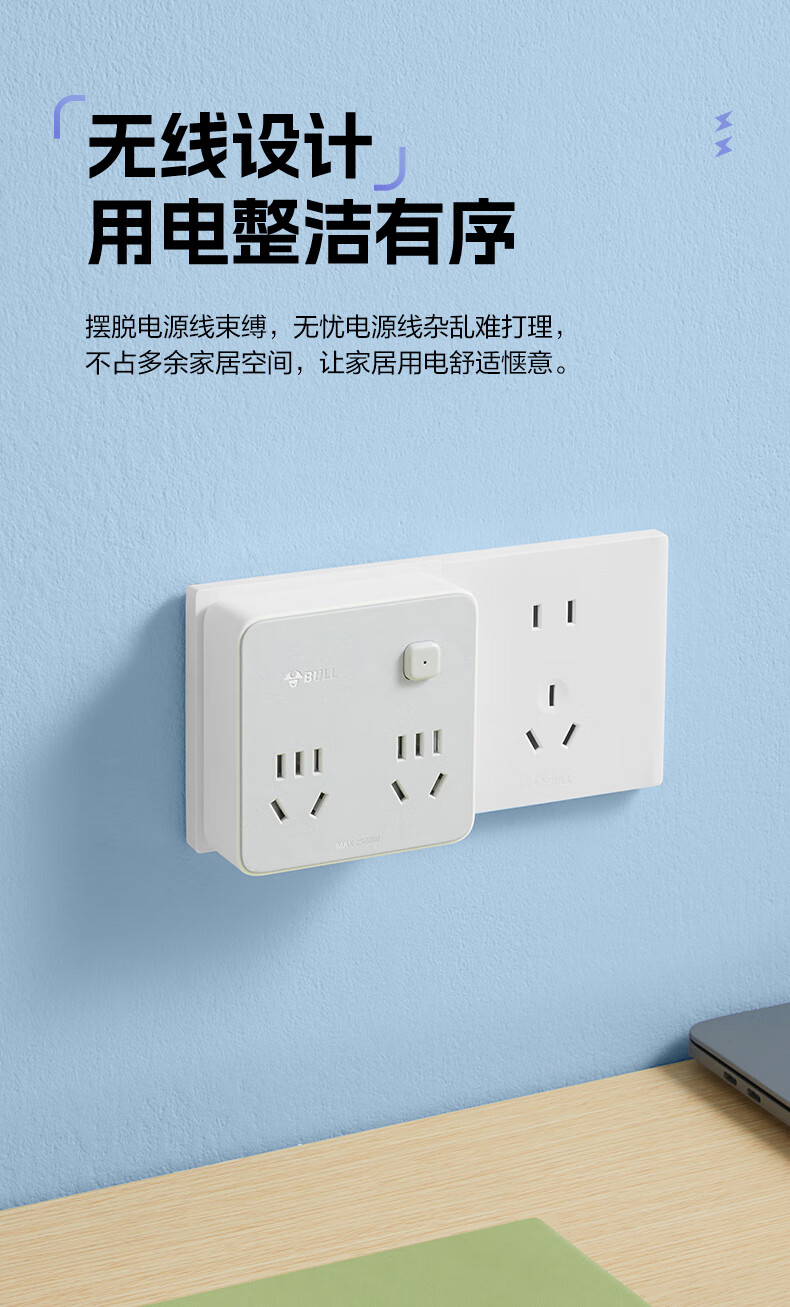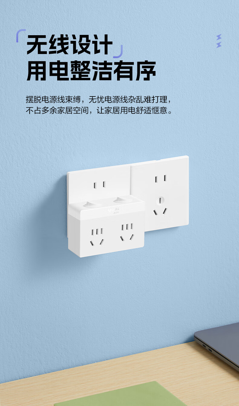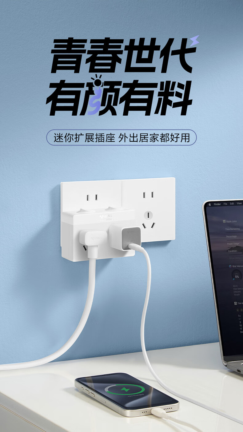 Bull (BULL) one-turn multi-socket expander plug-in strip expander conversion head one-turn two-turn connector socket conversion plug Generation Z flexible one-turn six-point control Morning Mist White Z97333