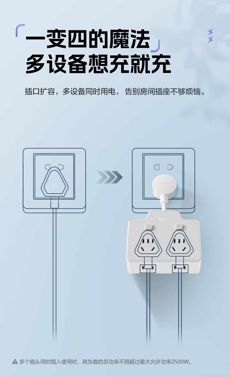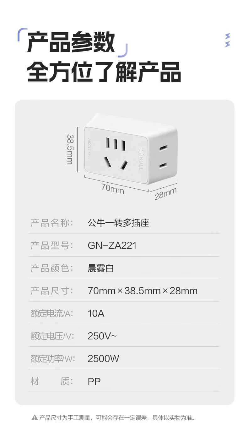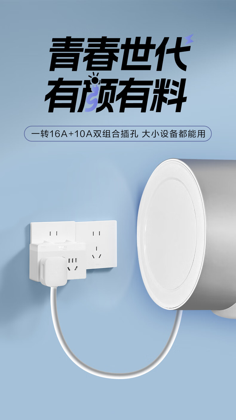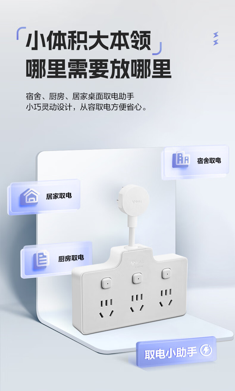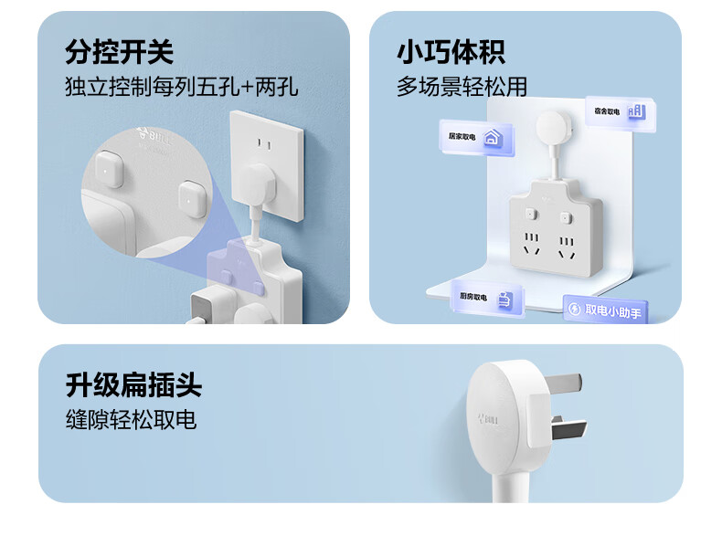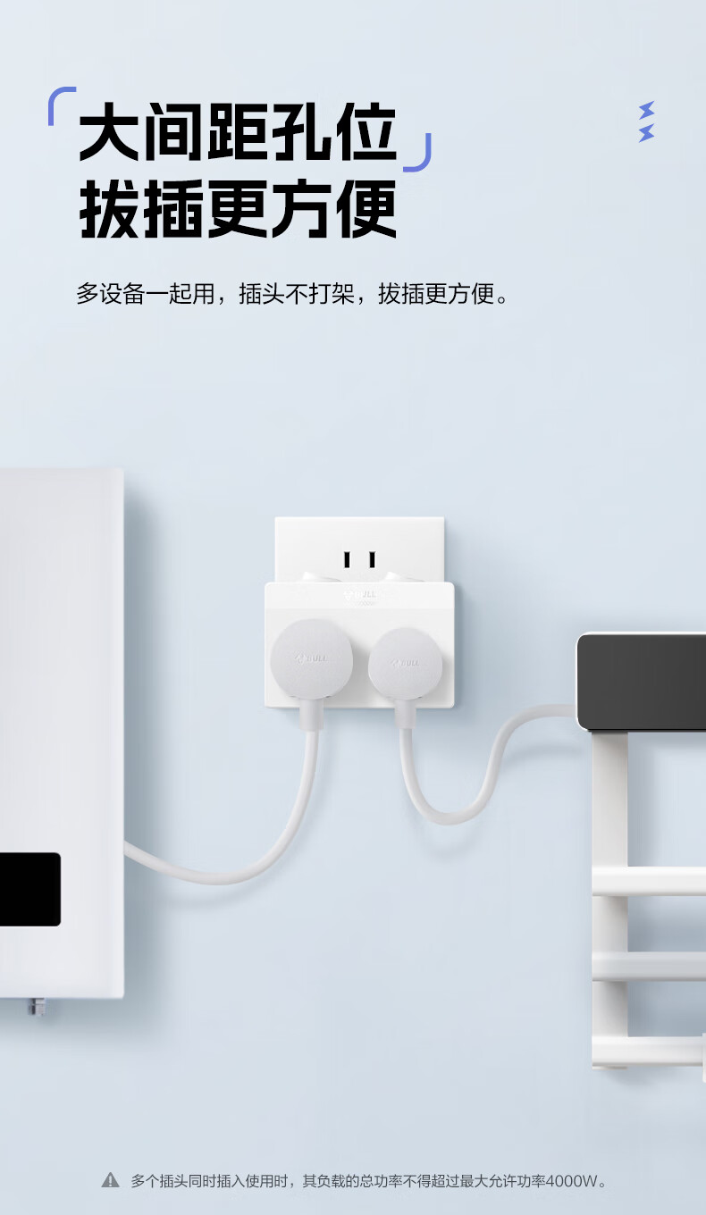 Bull (BULL) one-turn multi-socket expander plug-in strip expander conversion head one-turn two-turn connector socket conversion plug Generation Z flexible one-turn six-point control Morning Mist White Z97333