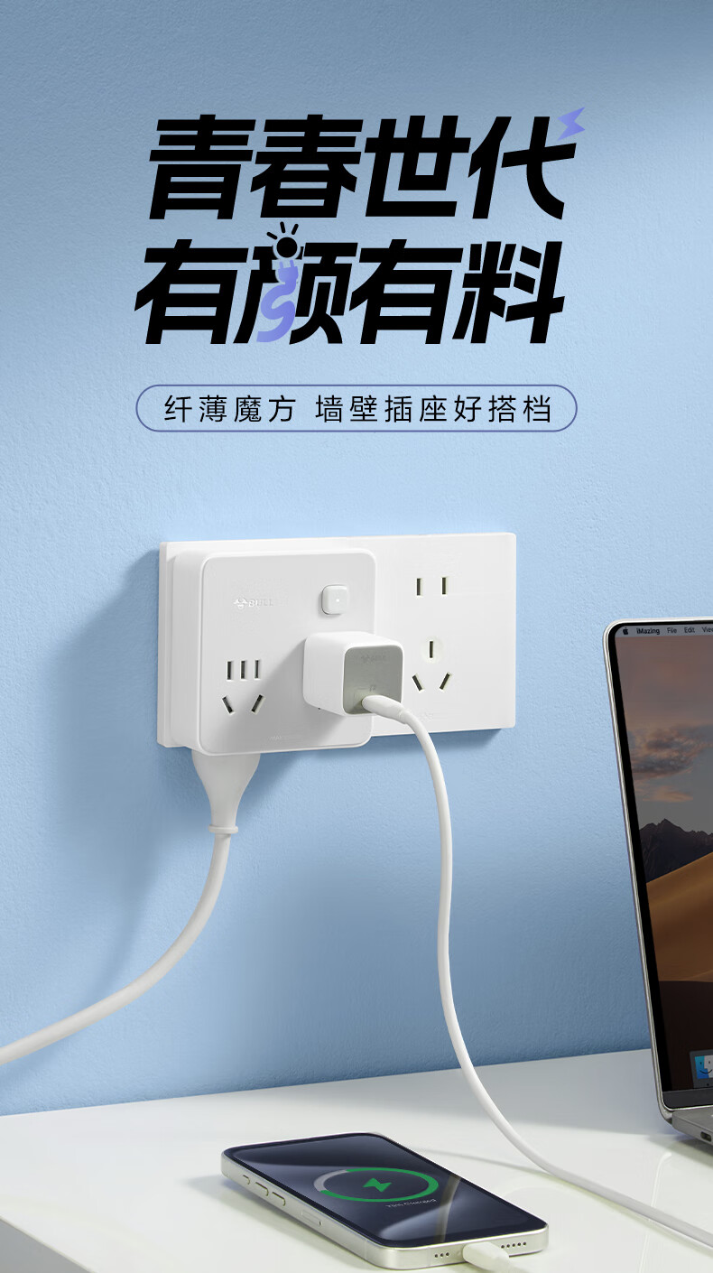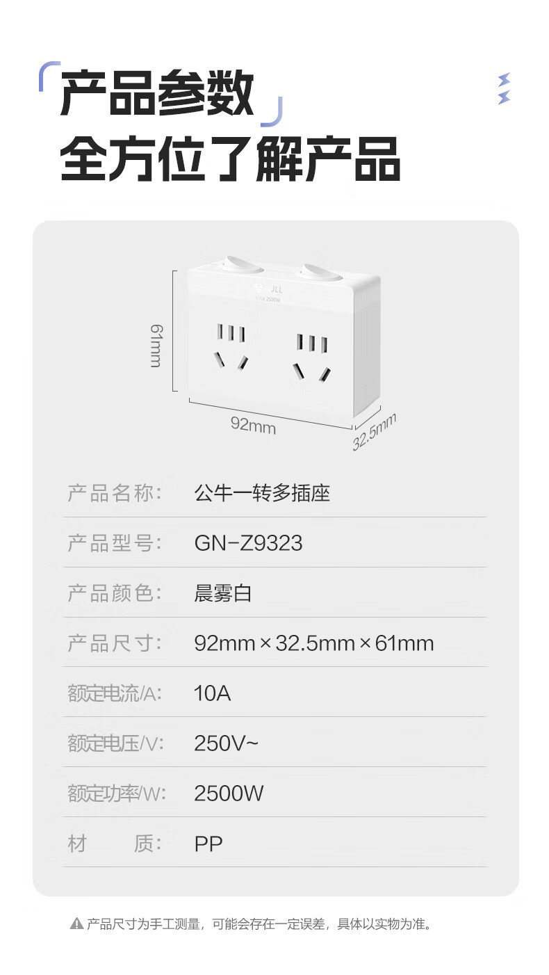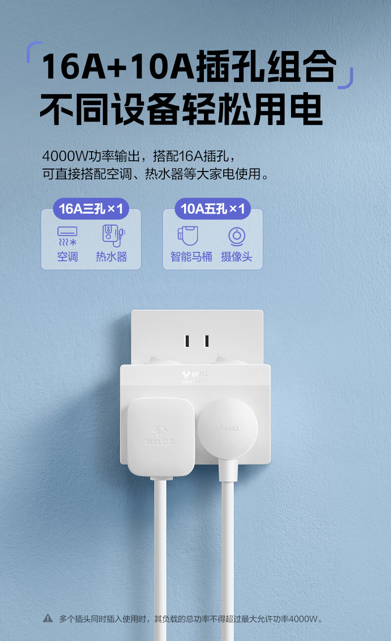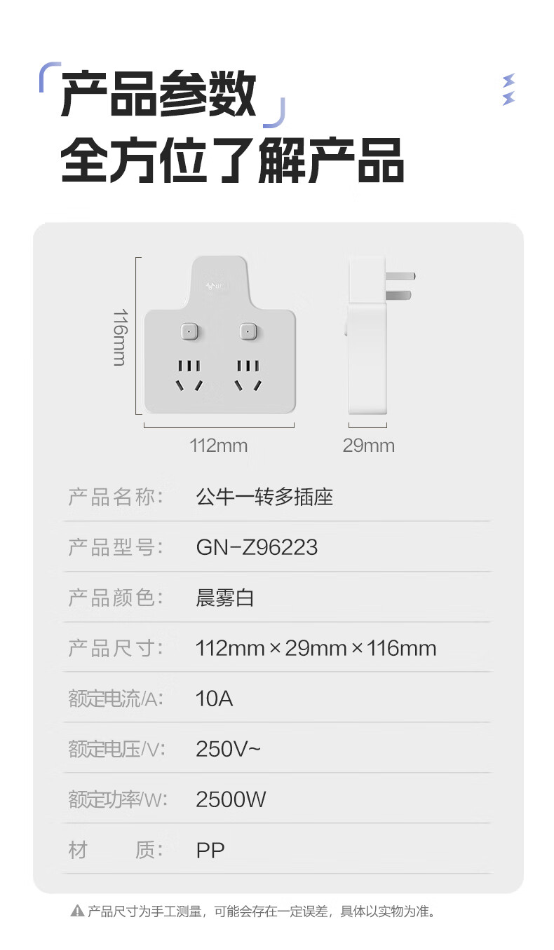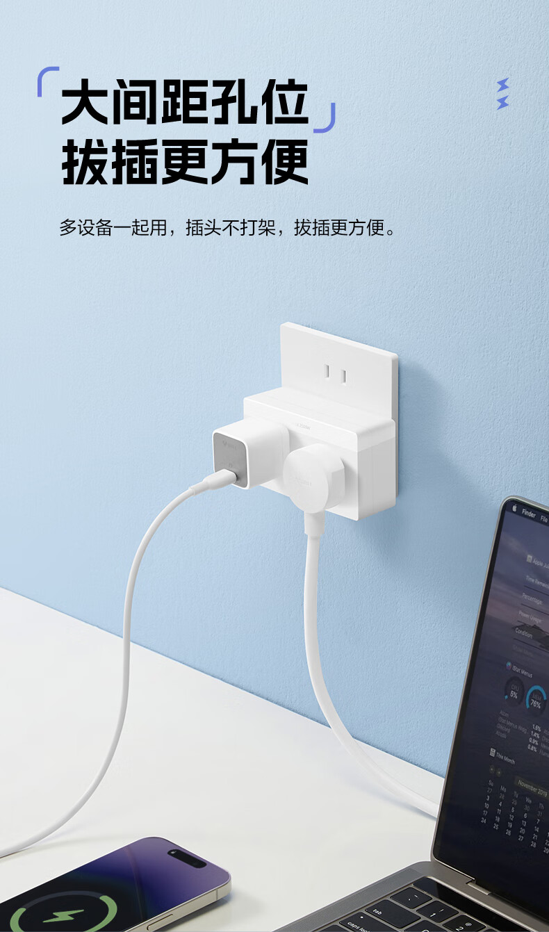 Bull (BULL) one-turn multi-socket expander plug-in strip expander conversion head one-turn two-turn connector socket conversion plug Generation Z flexible one-turn six-point control Morning Mist White Z97333
