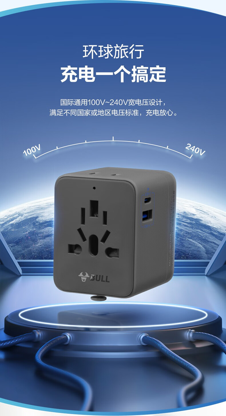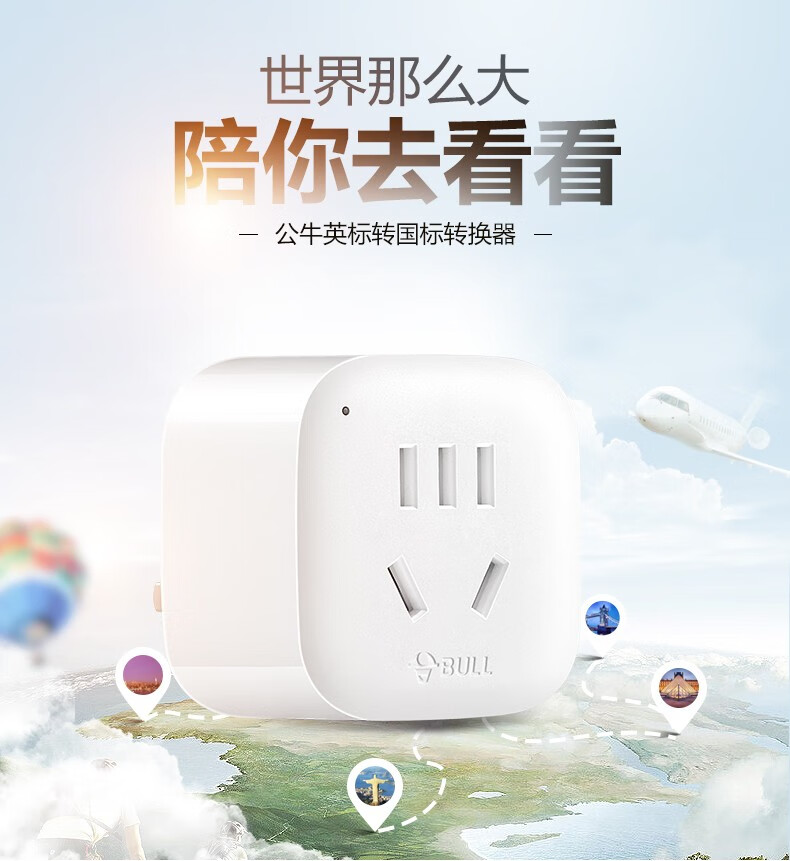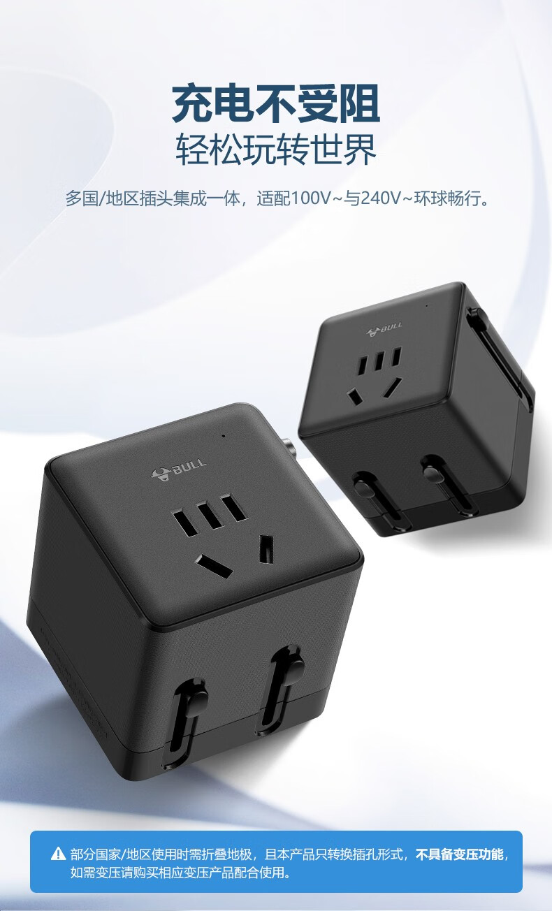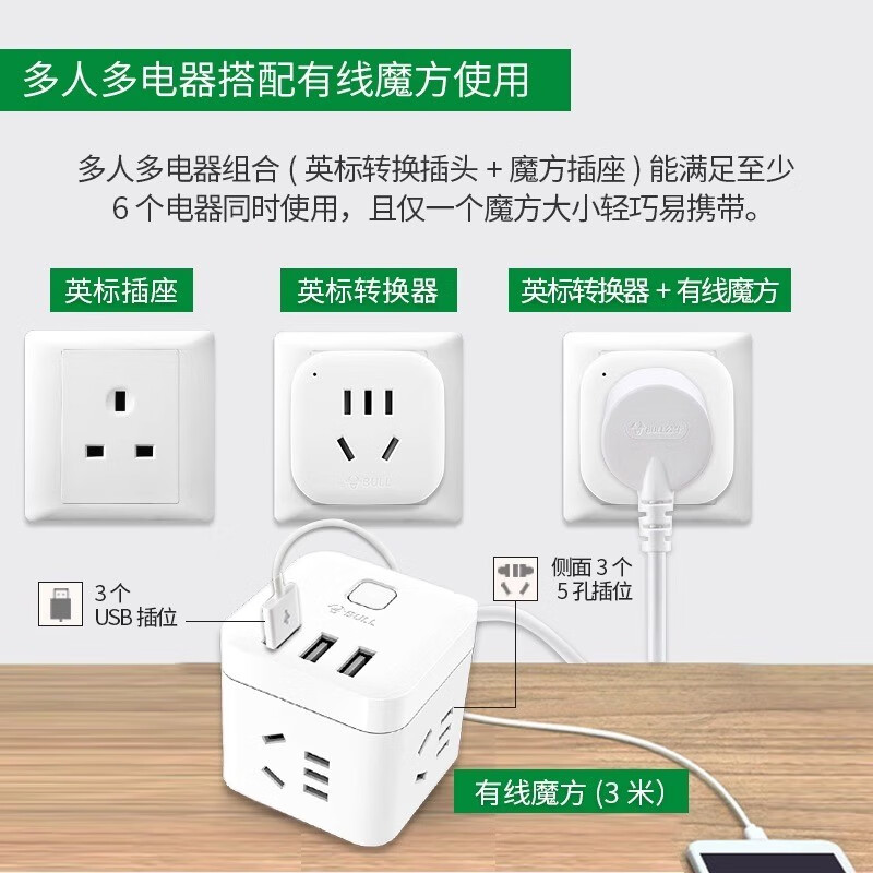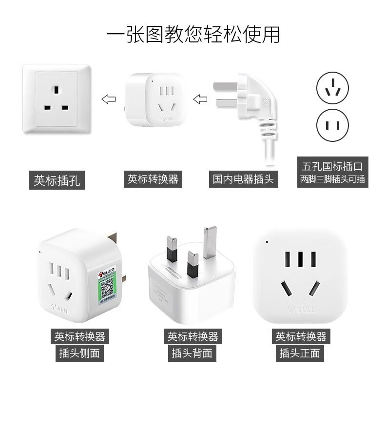 Bull British Standard Conversion Plug China Hong Kong/Macau Travel Converter British Travel British Standard Adapter Singapore Malaysia Dubai Socket Plug Conversion Head New Product Special Offer Can Charge 3 Appliances When Going Abroad L02E Deep Space Gray