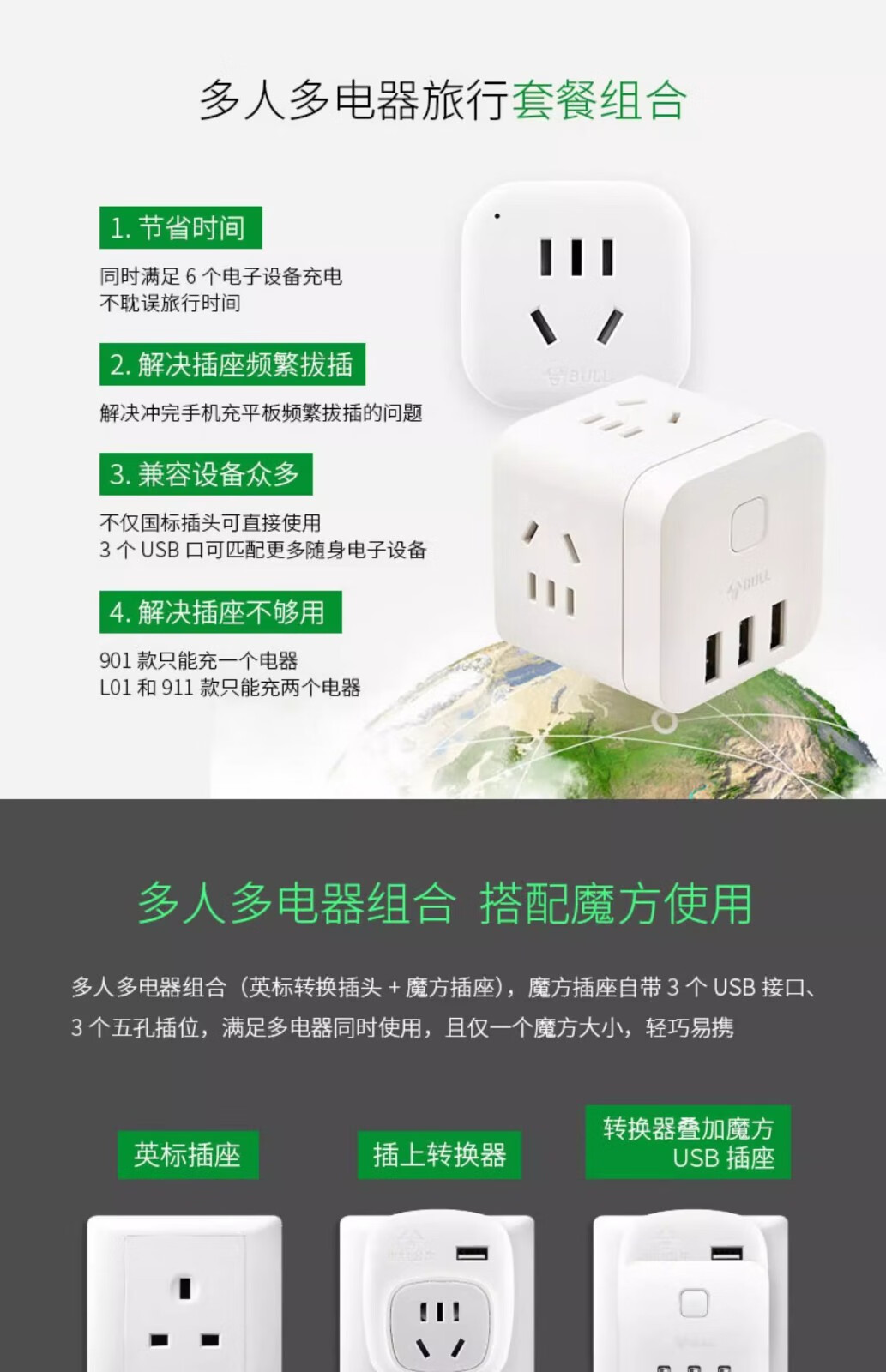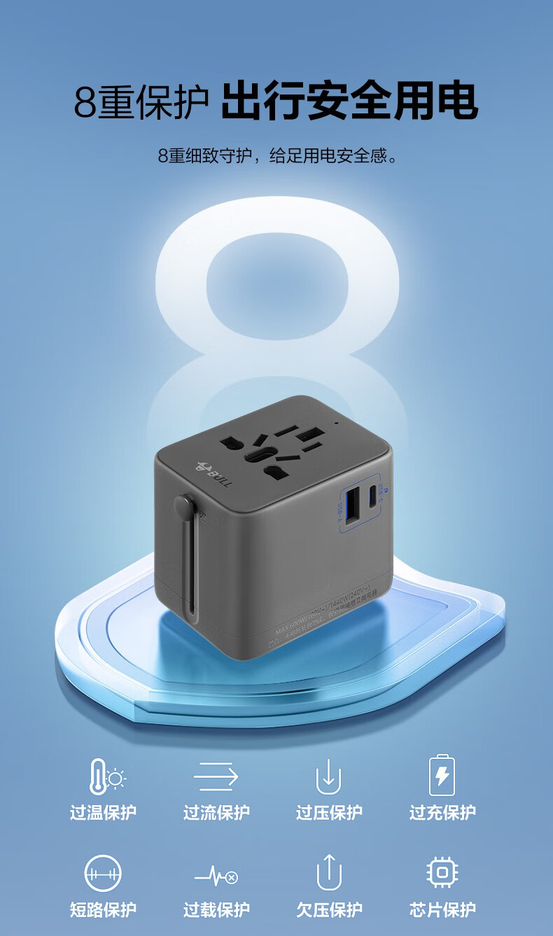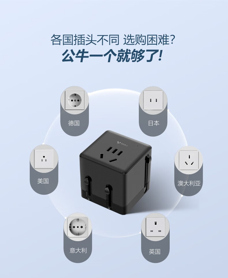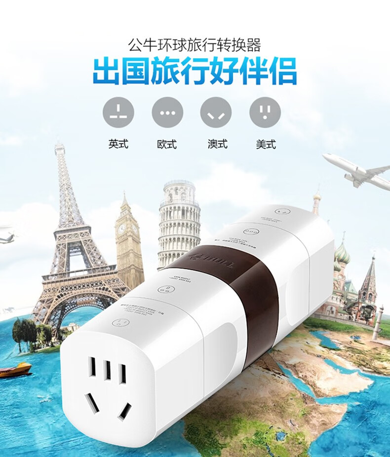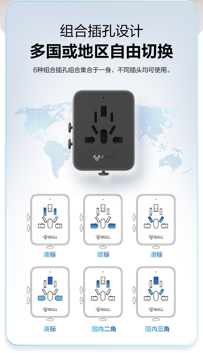 Bull British Standard Conversion Plug China Hong Kong/Macau Travel Converter British Travel British Standard Adapter Singapore Malaysia Dubai Socket Plug Conversion Head New Product Special Offer Can Charge 3 Appliances When Going Abroad L02E Deep Space Gray