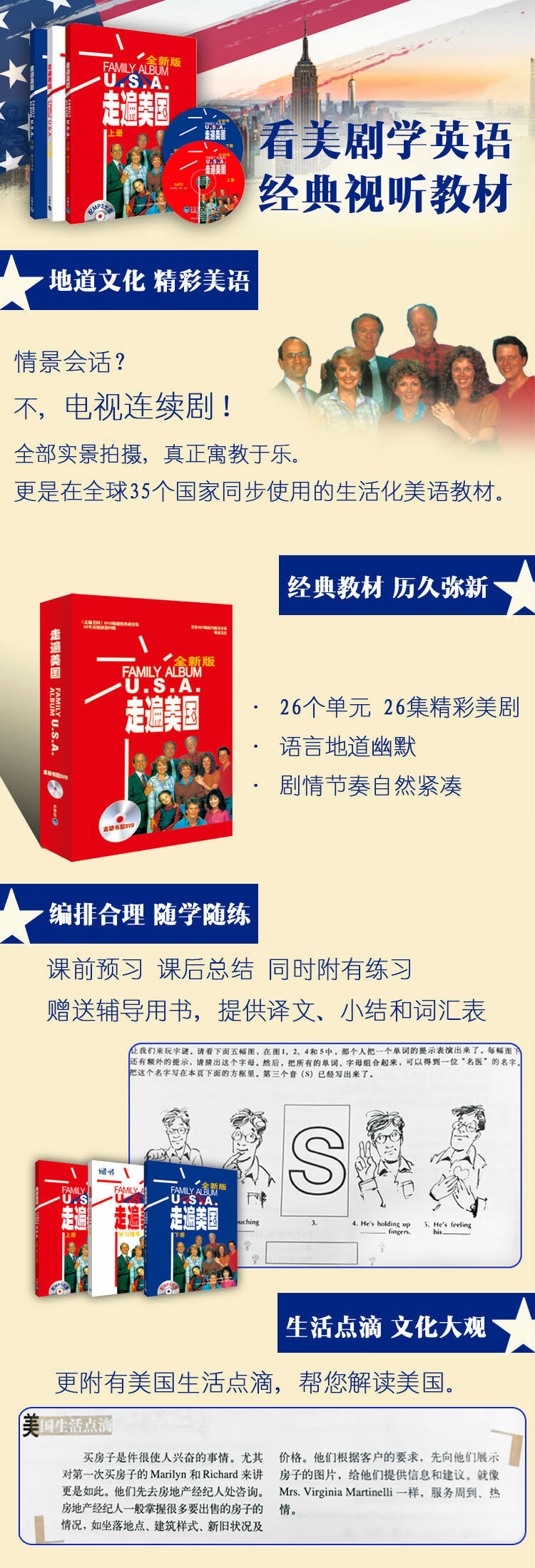 【正版】走遍美国全新版 全三册学生用书上下册看美剧学英语经典教材自学教材英语口语书籍跟着美剧学英语走