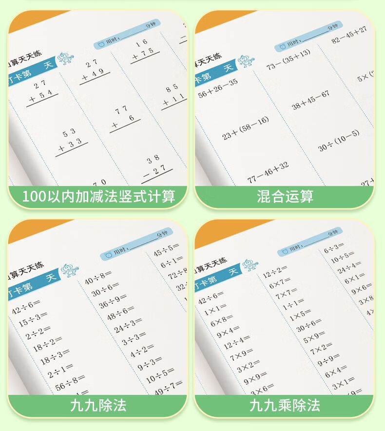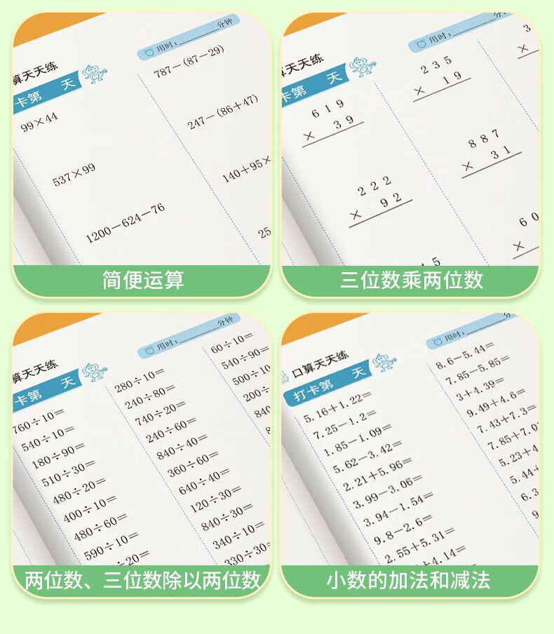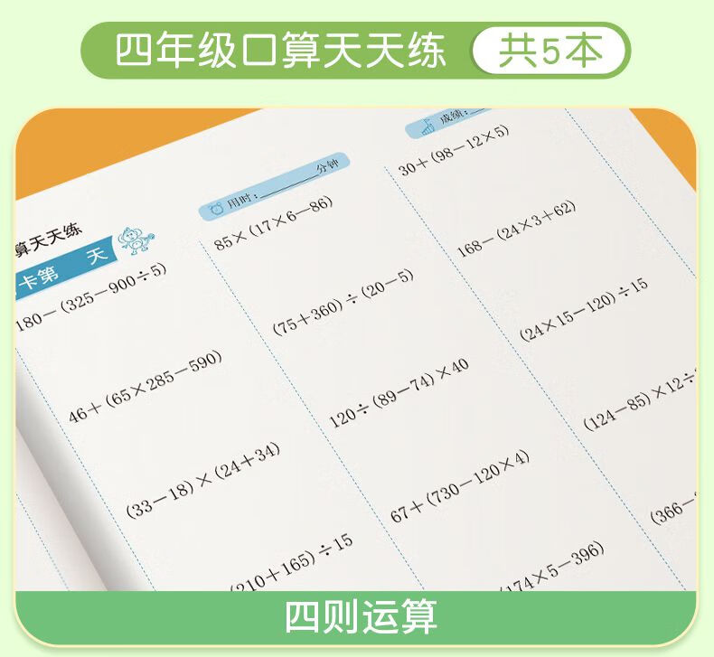 Die Klassen 1, 2, 3 und 4 üben täglich mündliche Rechenaufgaben in Mathematik im oberen und unteren Band, intensives Training von mit Sternen bewerteten mündlichen Rechenaufgaben, People's Education Press Edition, vollständiger Satz von 5 Büchern für die vierte Klasse, vier + einfache + dreistellige Multiplikation und Division + Dezimalzahlen, dritte Klasse der Grundschule