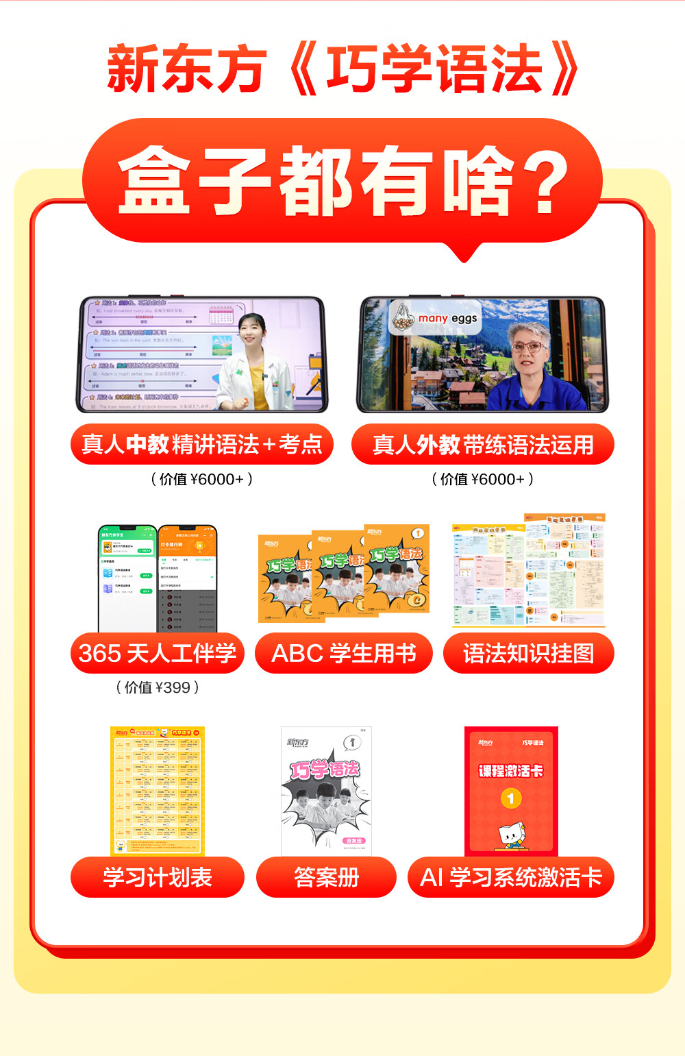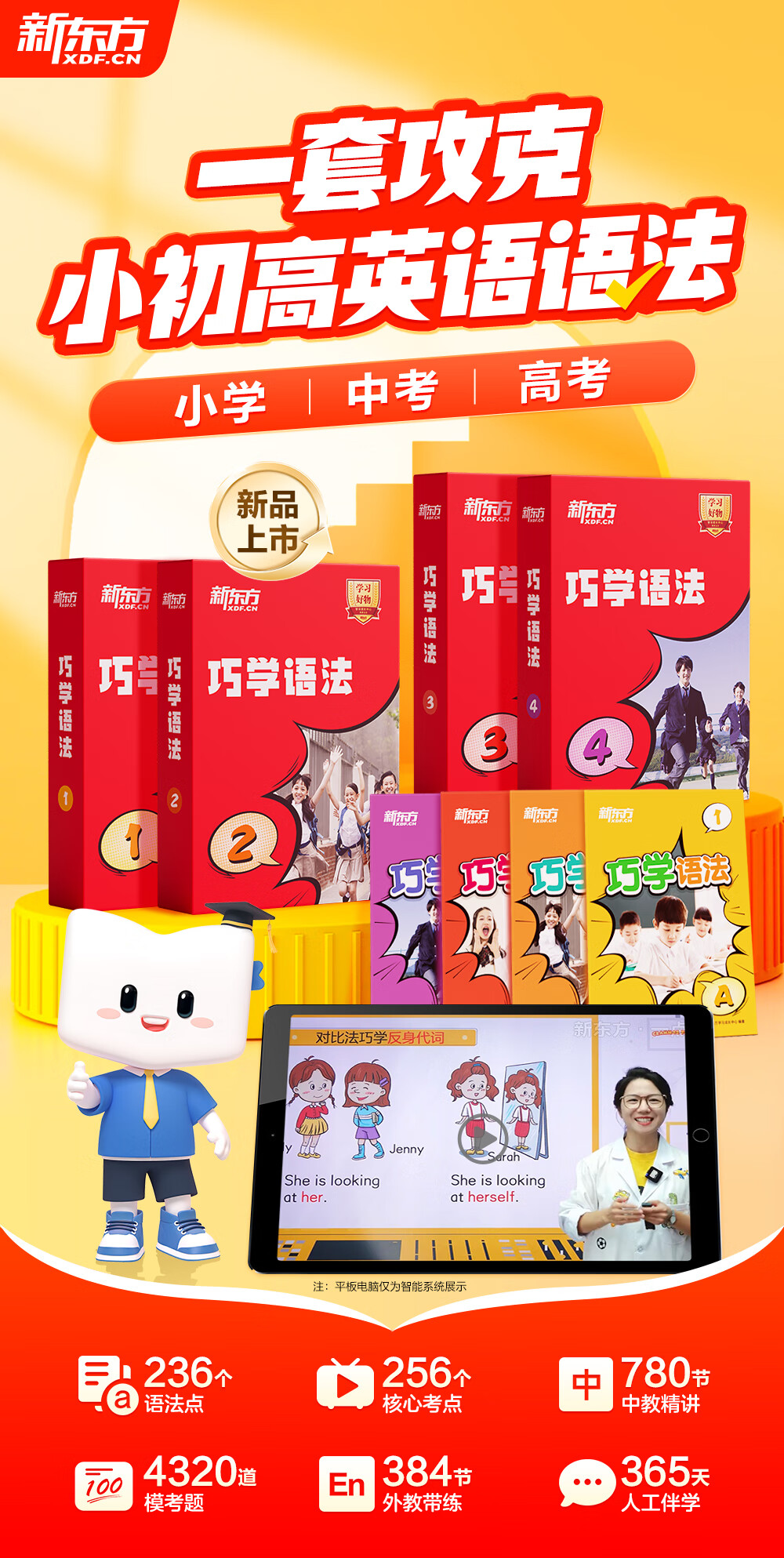 New Oriental English Grammar Guide: Learn Grammar Skillfully for Primary, Junior High and High School Grammar (Books + Courses + AI Learning Practice Tests) Chinese and Foreign Teachers Lectures Skillfully Learn Grammar 1-4 Levels 4 Boxes (Grammar for Elementary School and High School) (Free Alpha Egg Learning Headphones)
