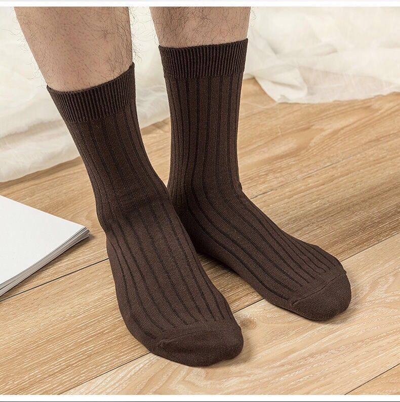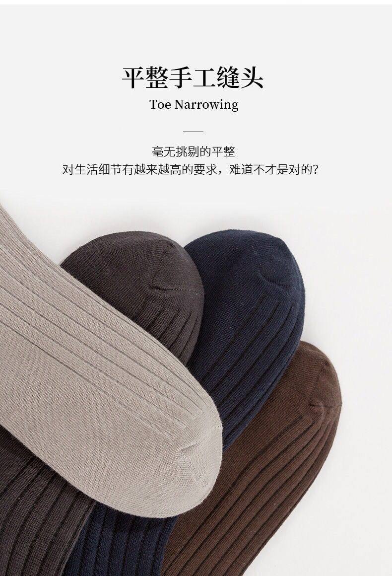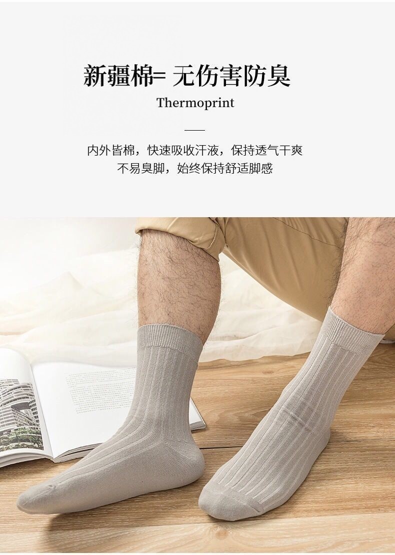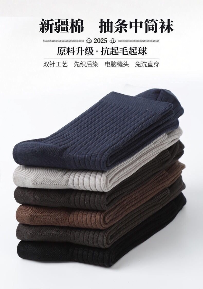 Men's Socks for Autumn and Winter, Mid-Calf Socks, Double-Needle Solid Color Cotton Socks, Sweat-Absorbent, Anti-Slip, Spring and Autumn Men's Black Business Long Socks