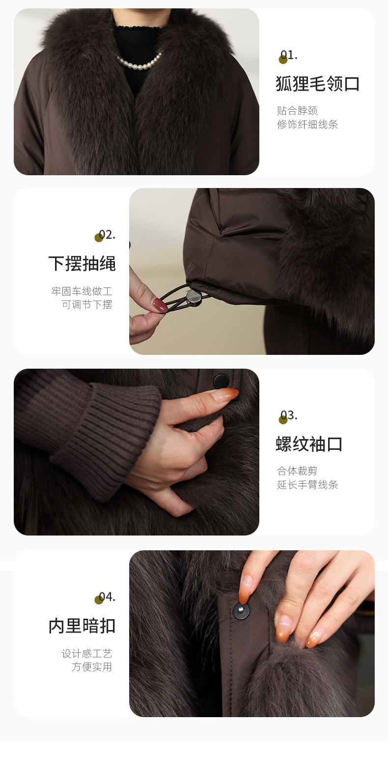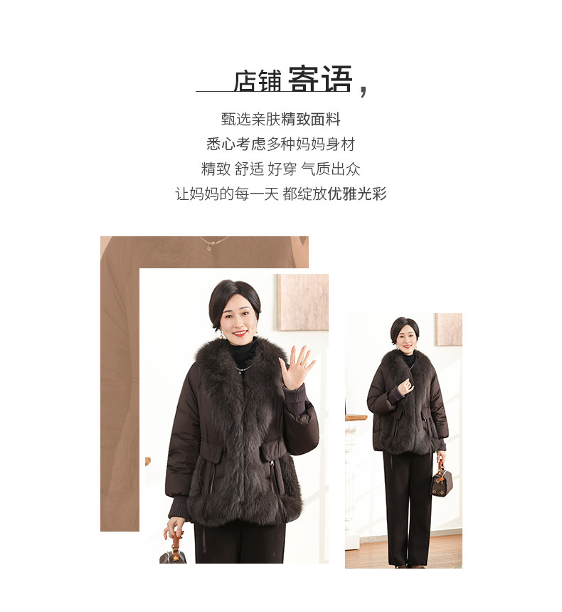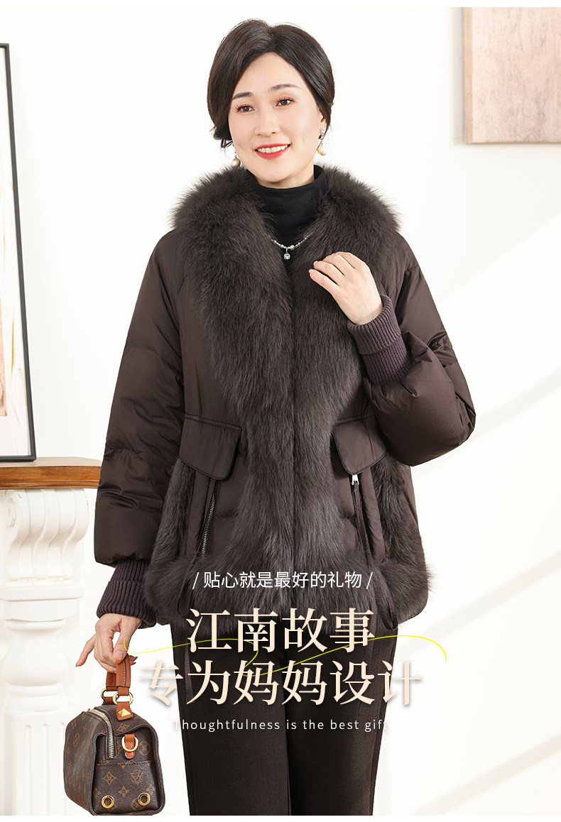 Jiangnan Story Mom 90 chaqueta de plumón de piel de zorro cálida de plumón de pato blanco