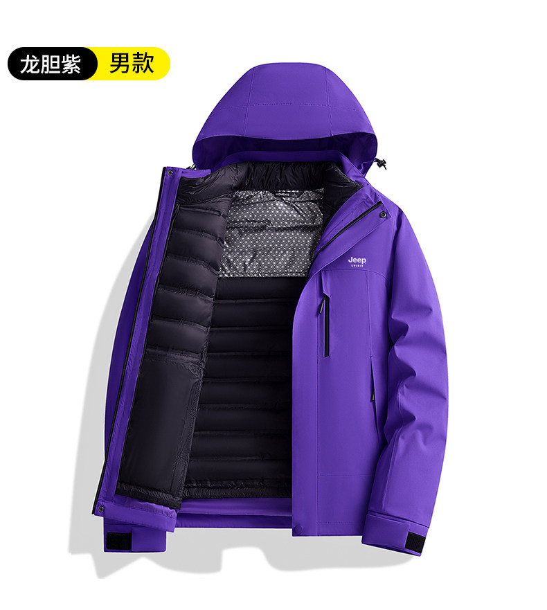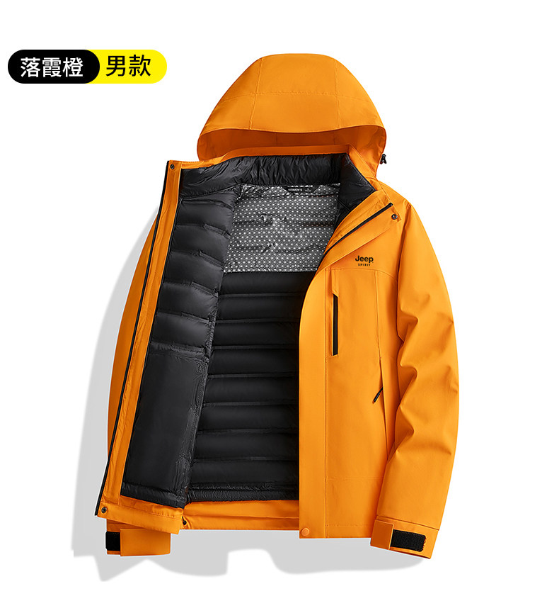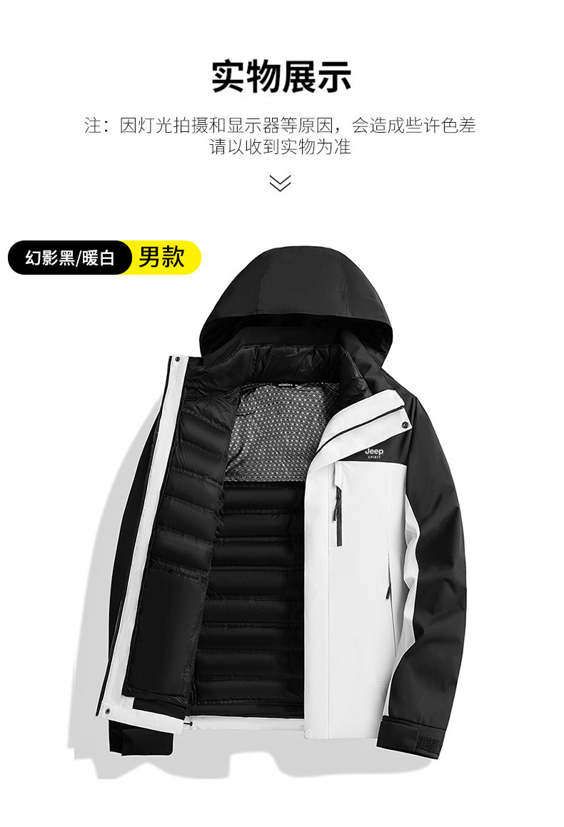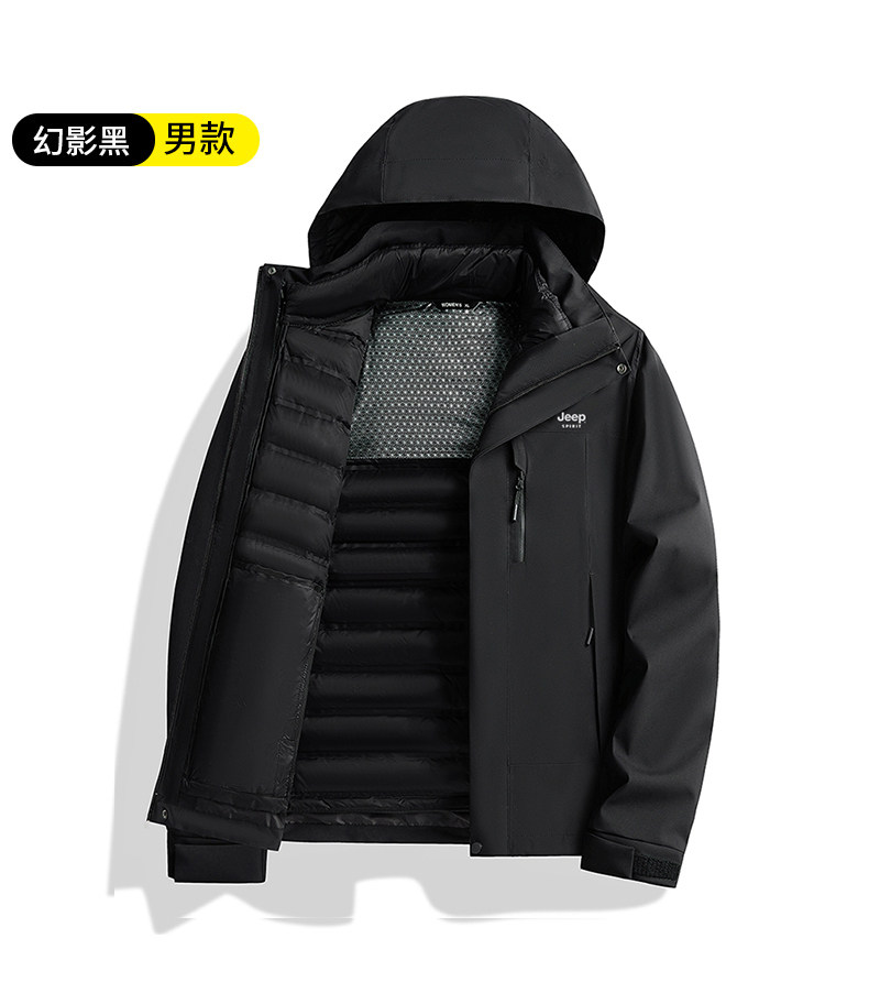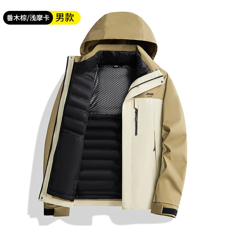 吉普羽绒服男士秋冬季三合一可拆内胆加厚保暖防风新款冲锋服外套