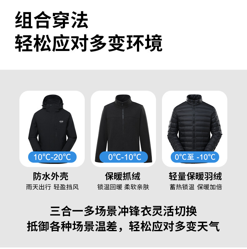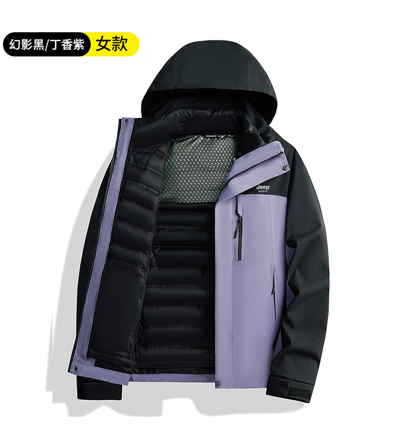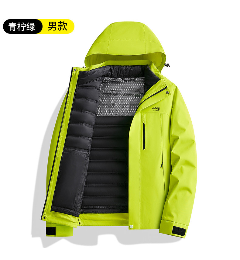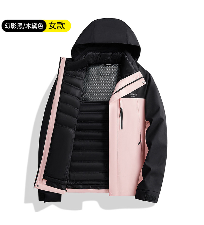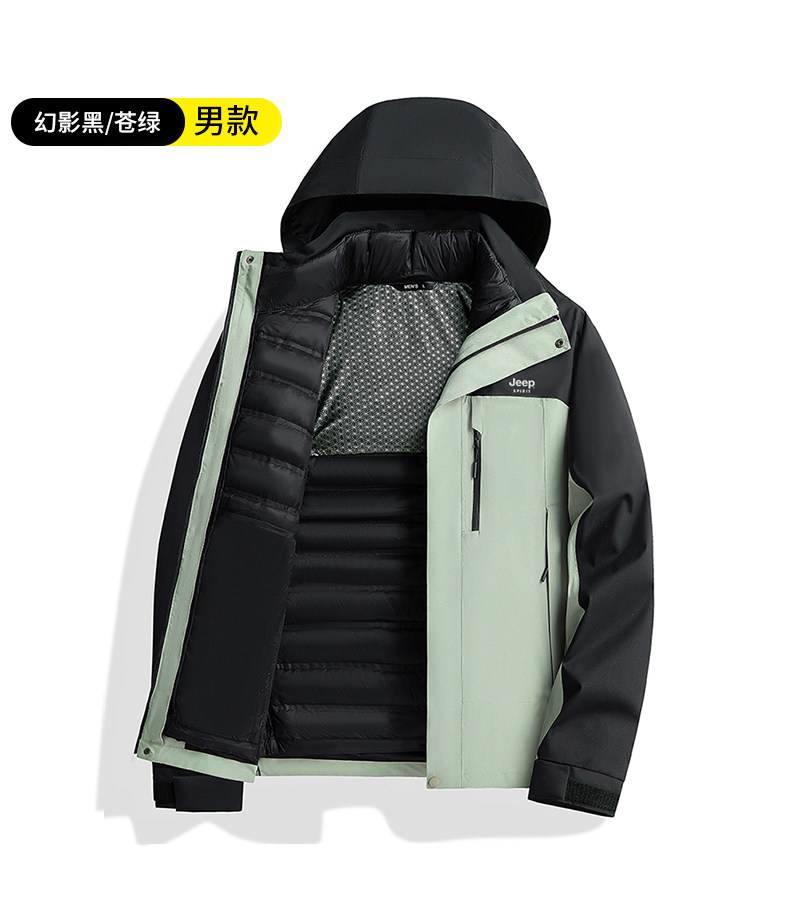 吉普羽绒服男士秋冬季三合一可拆内胆加厚保暖防风新款冲锋服外套