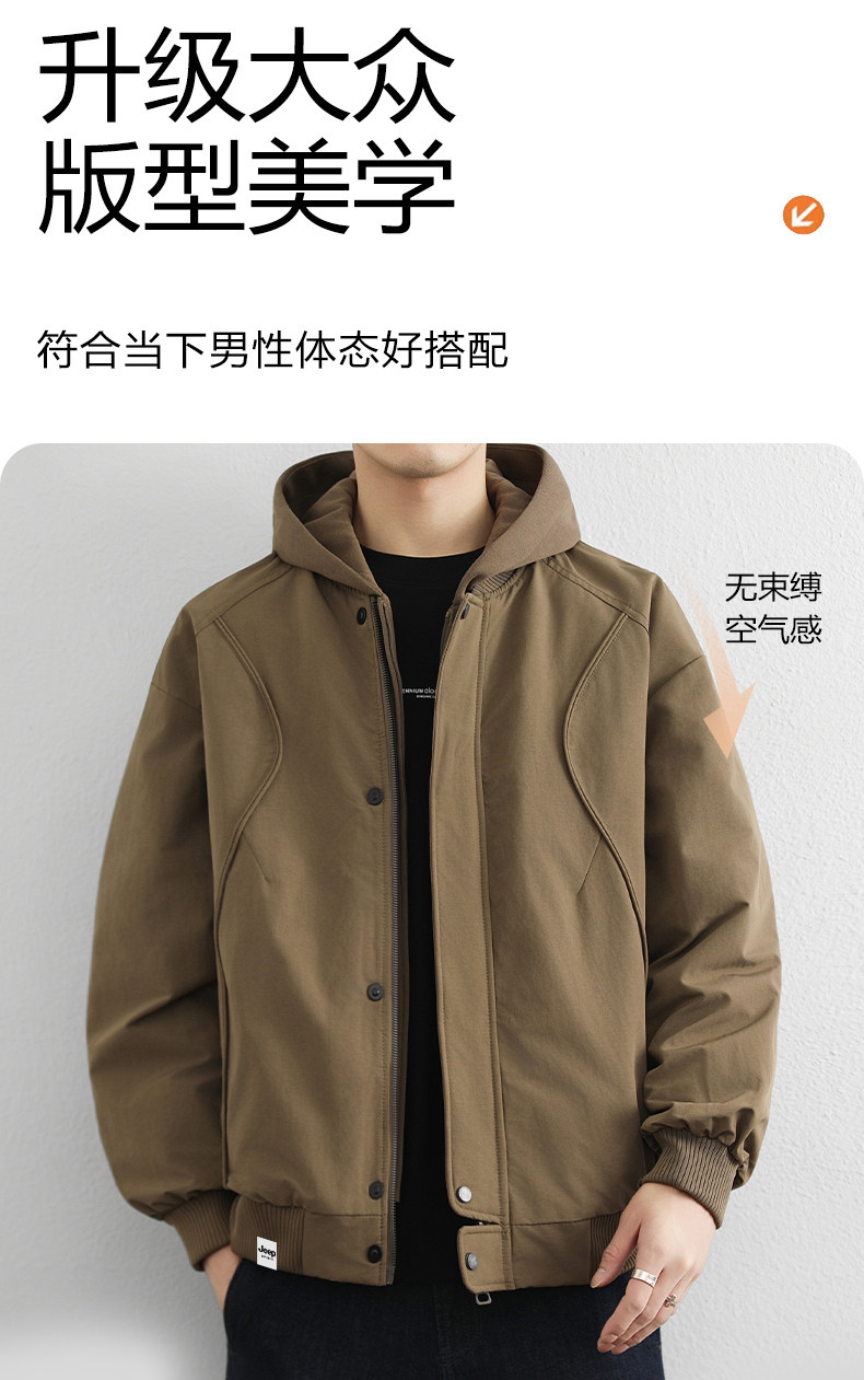 Chaqueta de fino algodón Down Jeep para hombre, nueva chaqueta holgada con capucha de invierno para hombre, chaqueta de trabajo cálida y gruesa para exteriores