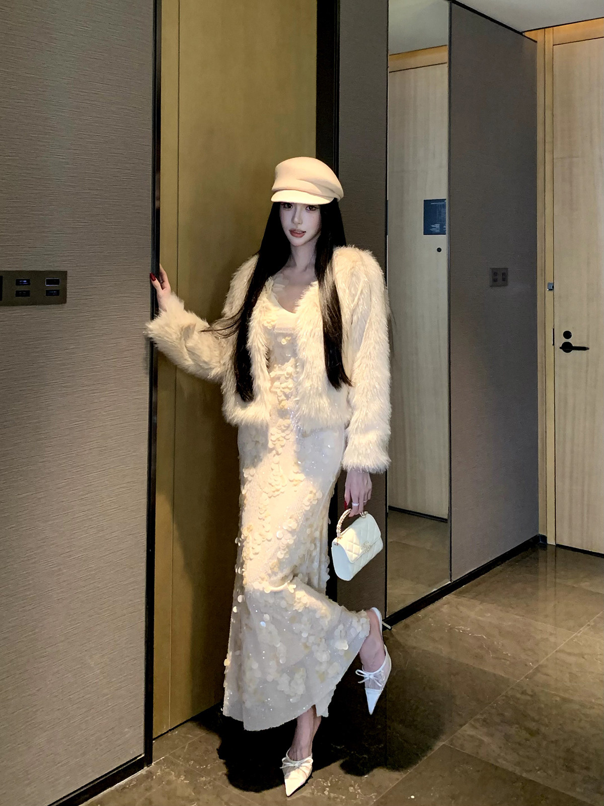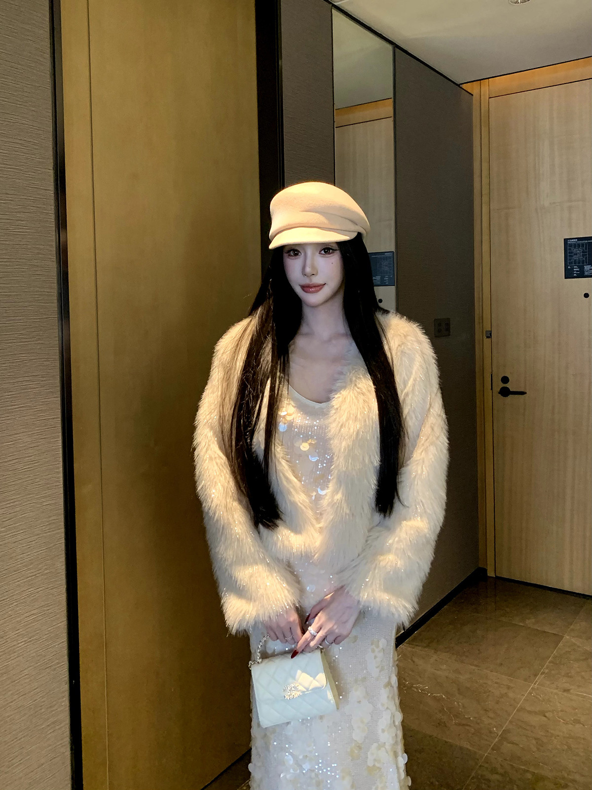 Короткая меховая куртка Barb Chill для женщин, зимний новогодний наряд, стройнящая пушистая куртка.