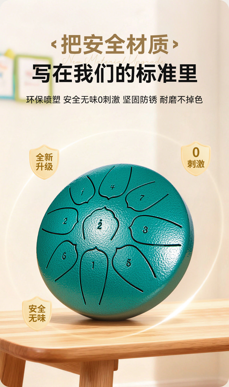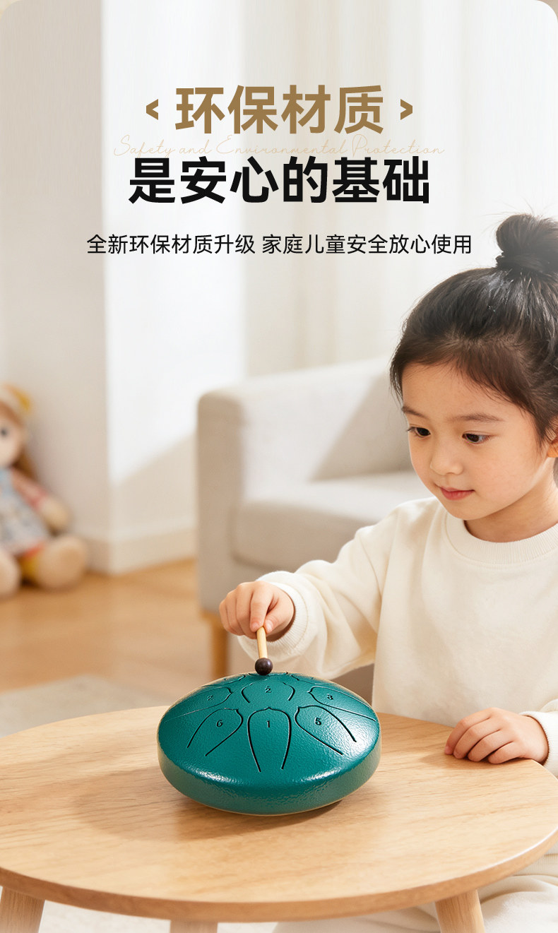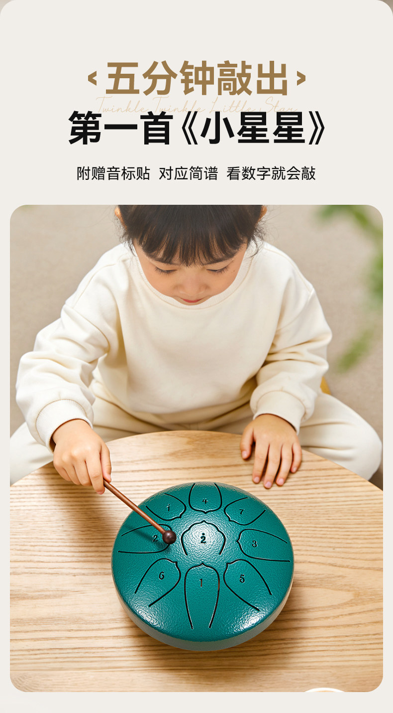 Children's Beginner Music Enlightenment Ethereal Drum 6-Inch 9-Tone Authentic Percussion Instrument for Children's Entry-Level Beginners Hand Drum