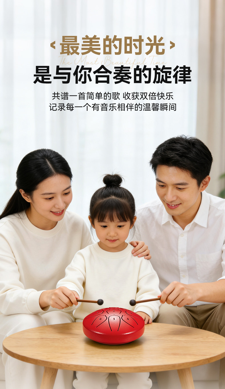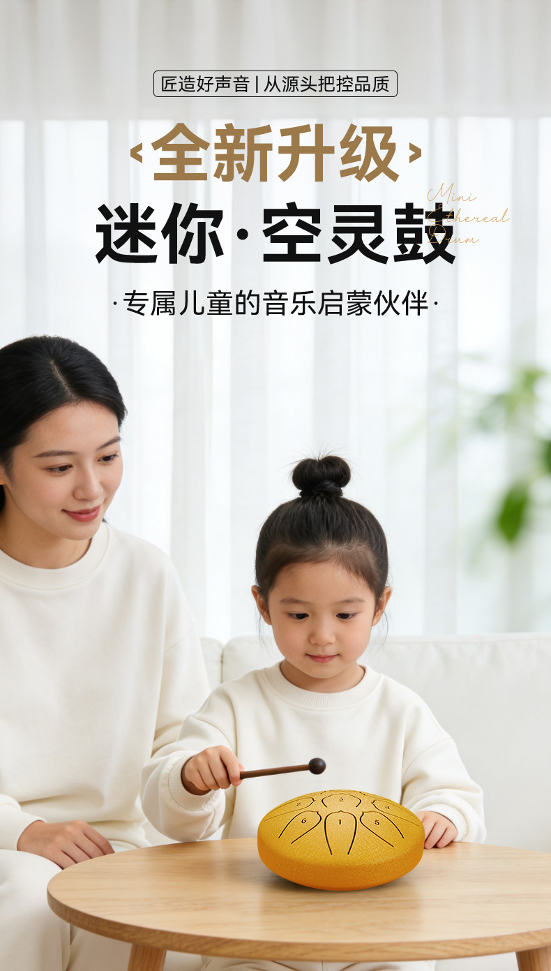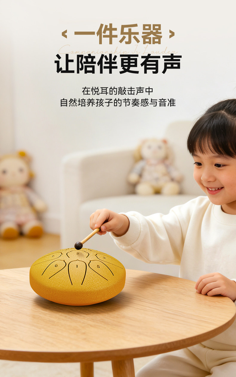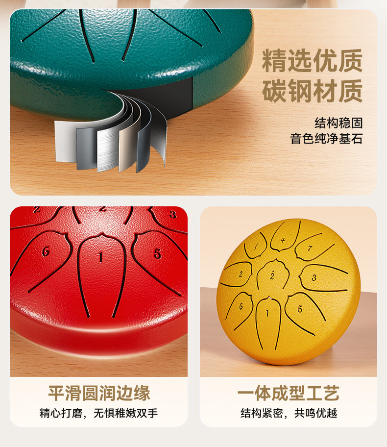 Children's Beginner Music Enlightenment Ethereal Drum 6-Inch 9-Tone Authentic Percussion Instrument for Children's Entry-Level Beginners Hand Drum