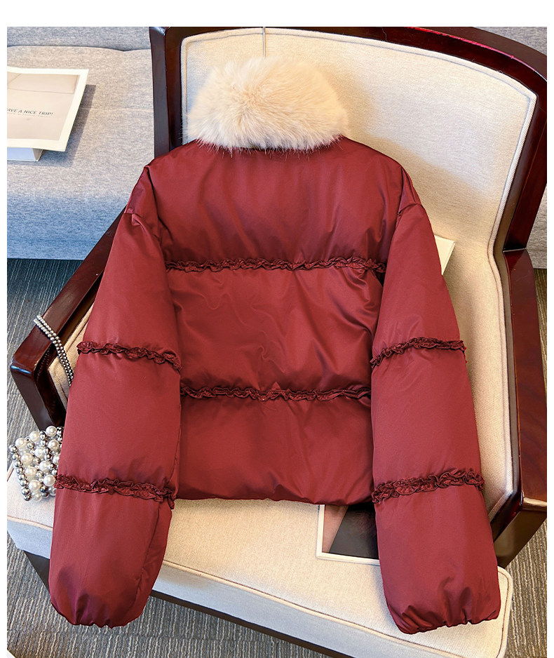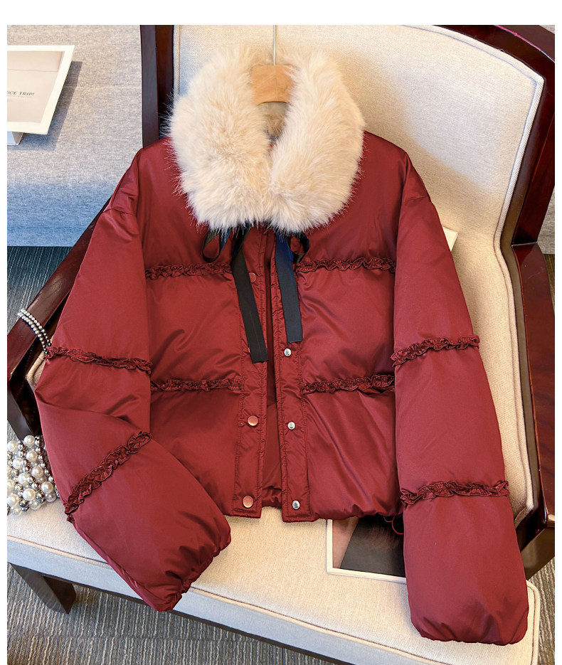 Красный короткий пуховик для женщин, новинка 2025 года, зима, супер горячий и красивый меховой воротник, теплый утолщенный белый утиный пух