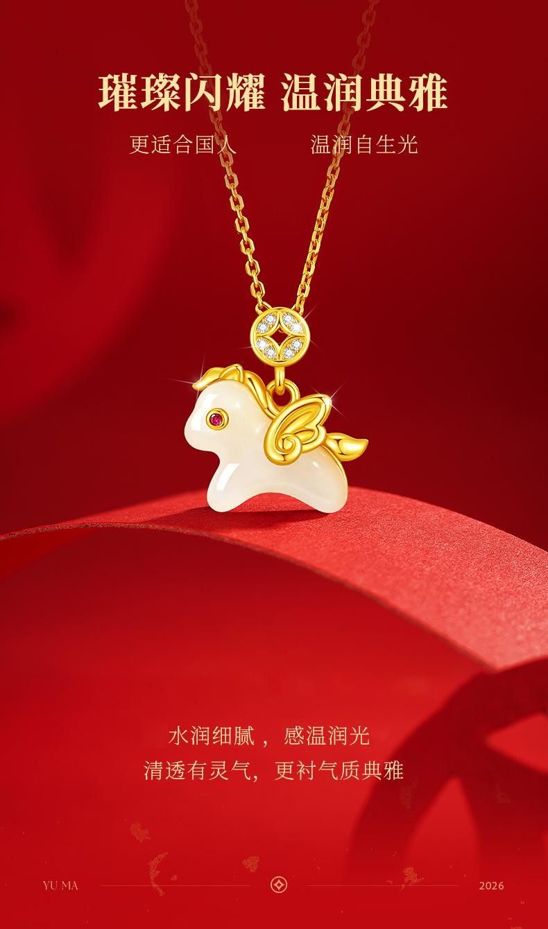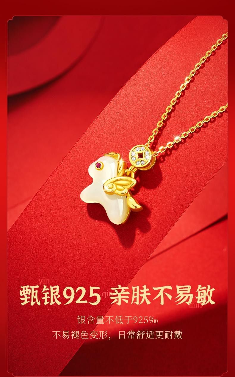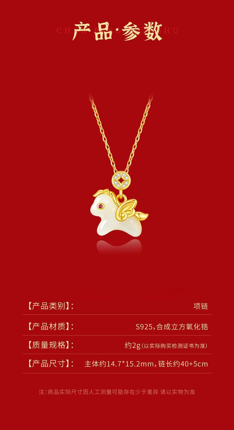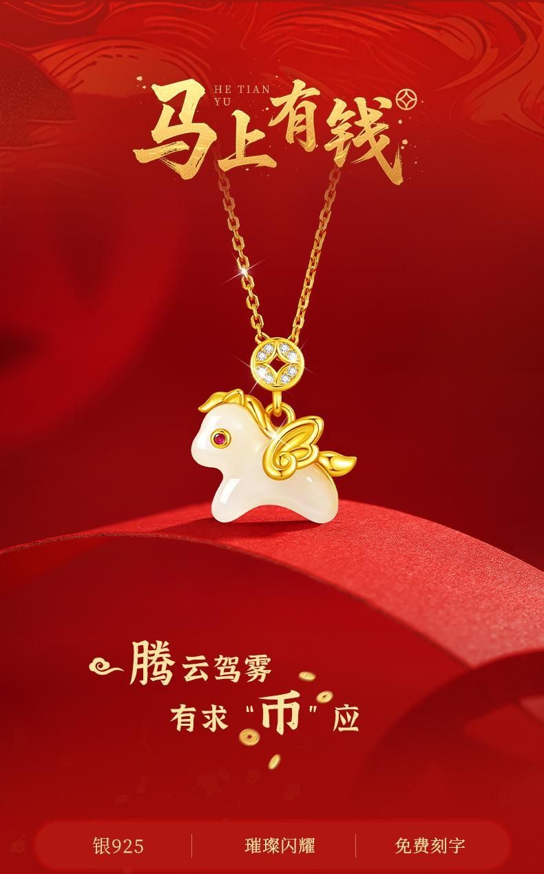 925银马上有钱吊坠项链女可爱时尚新中式马年新年圣诞礼物送女友