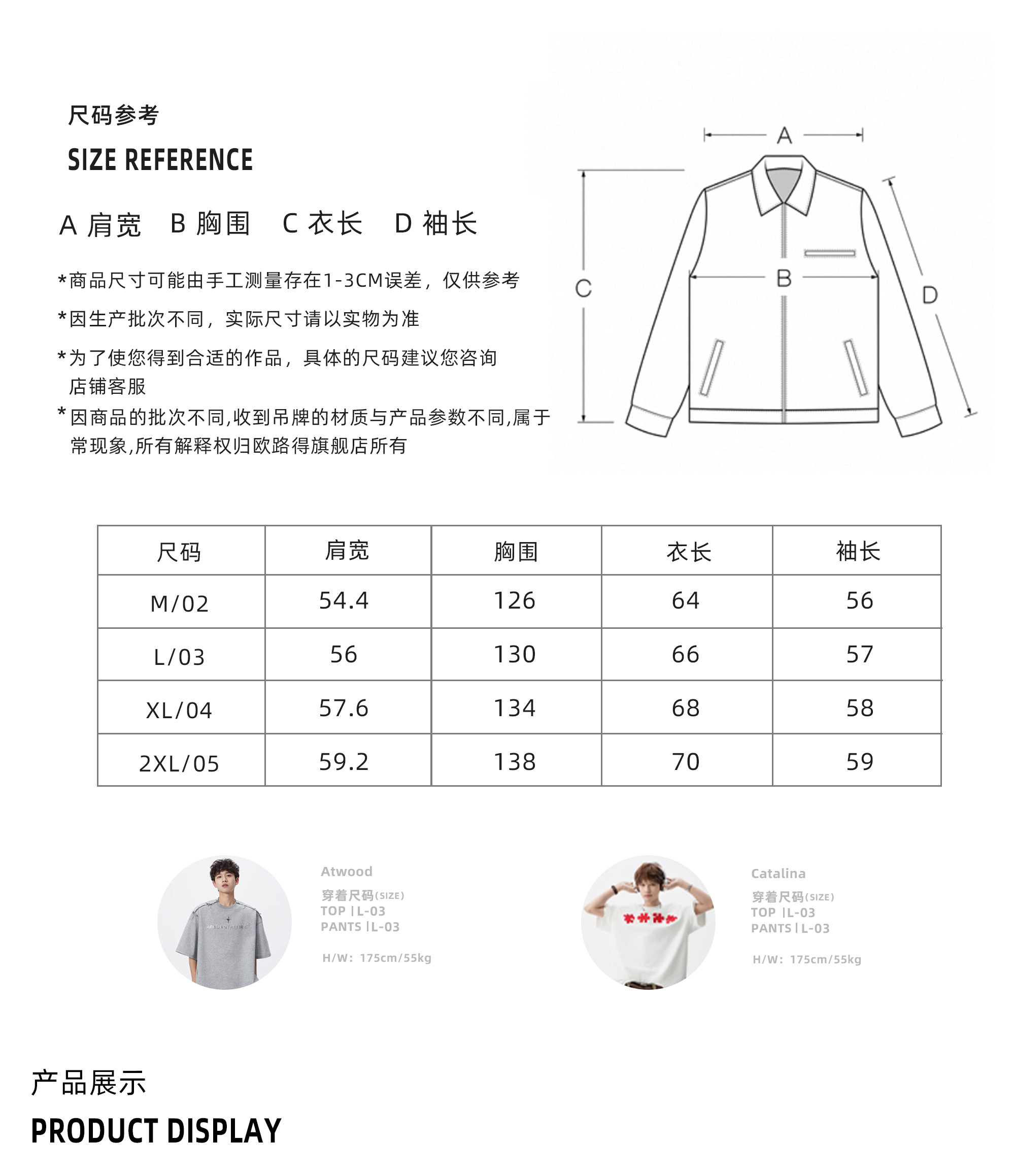 China (cm) 165 / 88-90 170 / 96-98 175 / 108-110 180 / 118-122 185 / 126-130