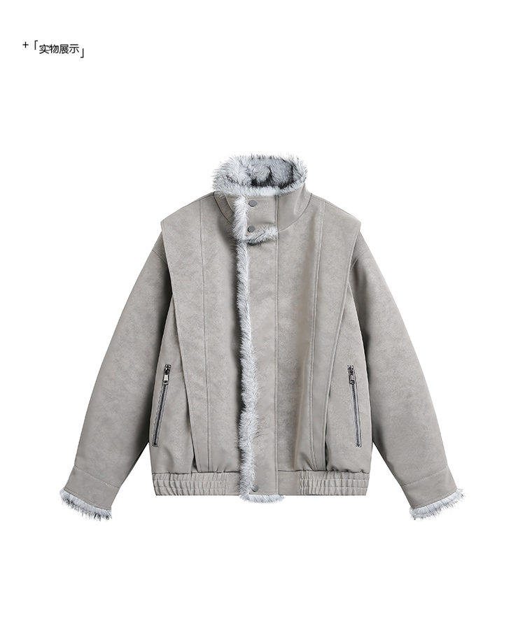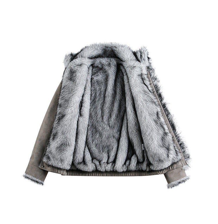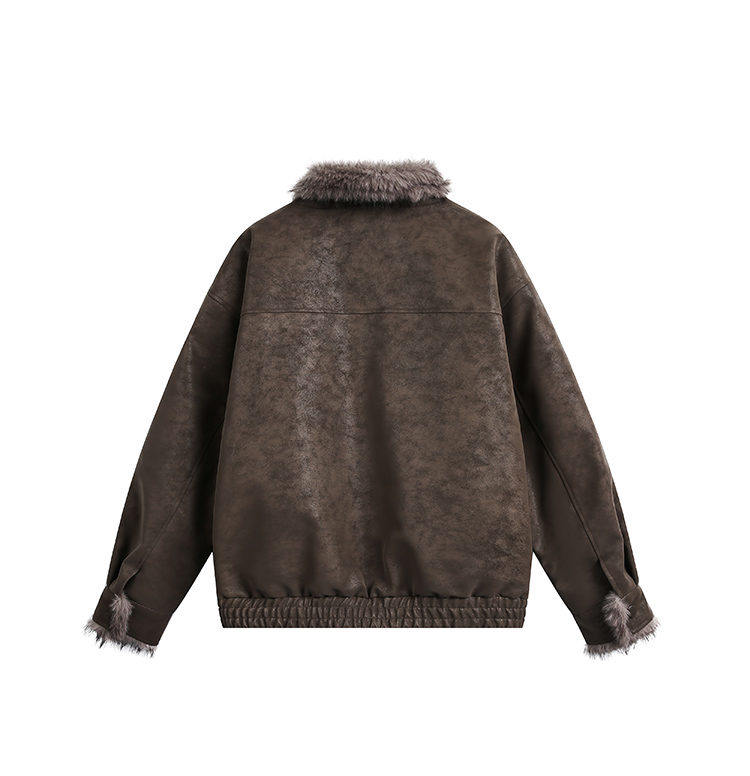American Retro Style Mountain Carving Cotton Jacket for Men, Winter Fleece-Lined Thickened Warm Coat, Trendy Brand, Cool and Stylish Pu Leather Jacket, Cotton Clothing
