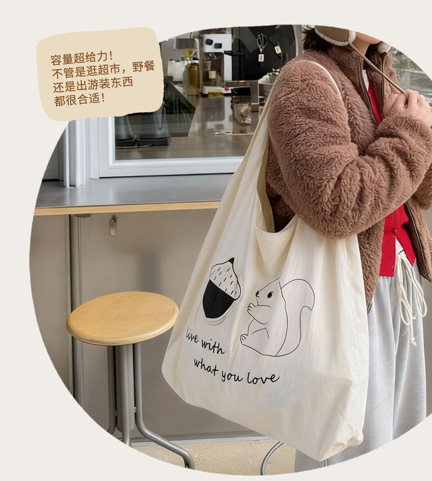 Berceau Eco-Friendly Foldable Portable Shopping Bag Cute Waterproof Extra Large Capacity Creative Pine Cone Tote Bag