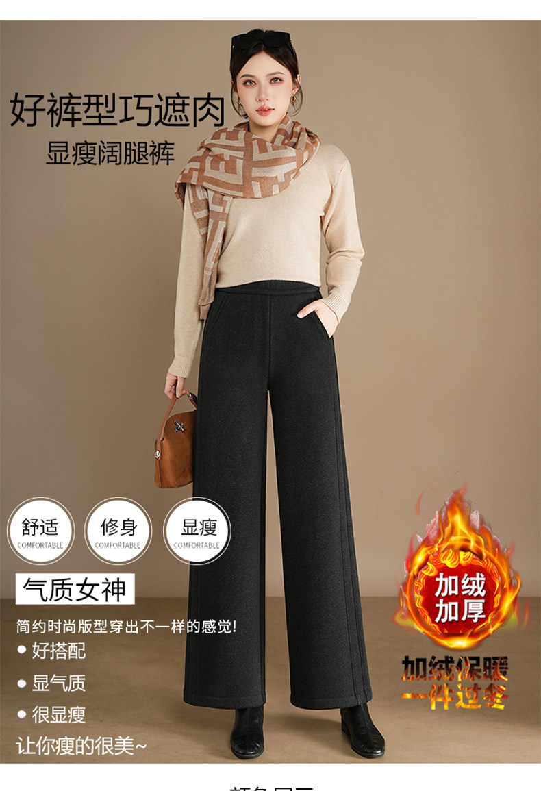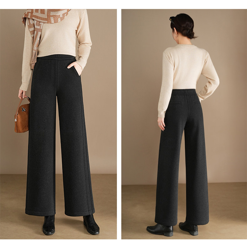 Versatile Magic Pants: Jiangnan Story Casual Style Woolen Trousers for Middle-Aged and Elderly Women, Fleece-Lined Warm Mom Pants, Straight-Leg Pants