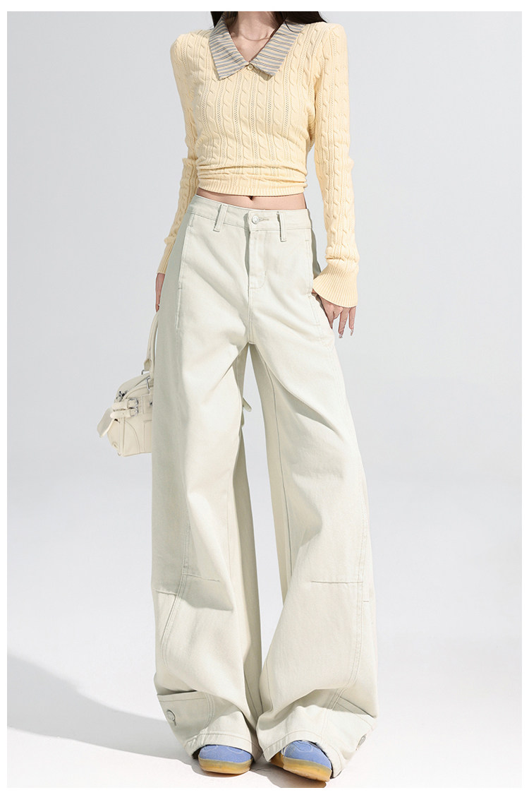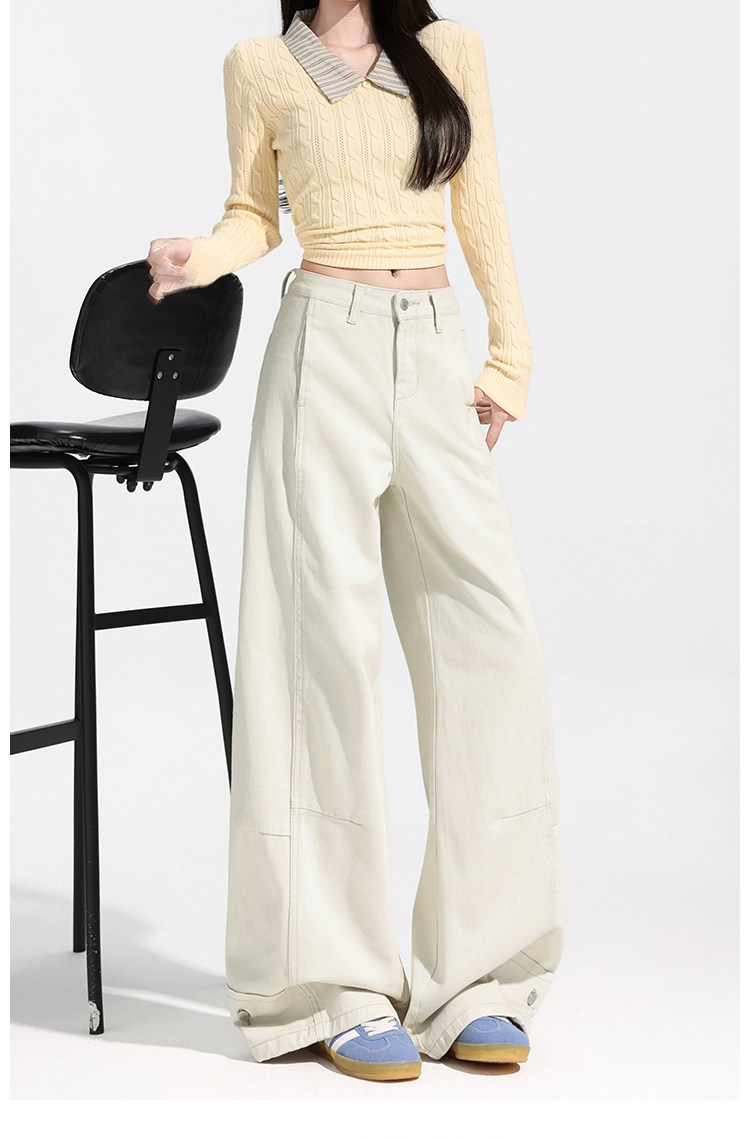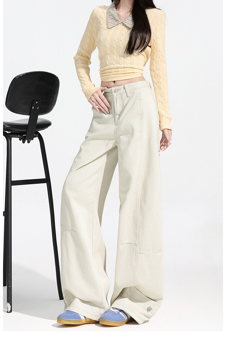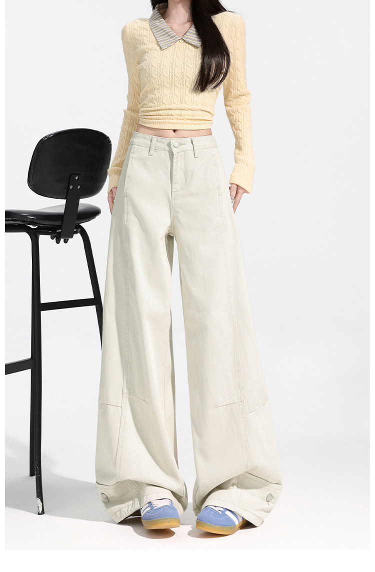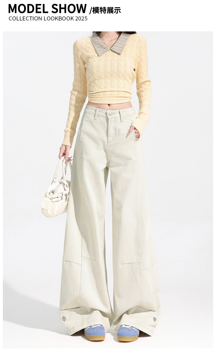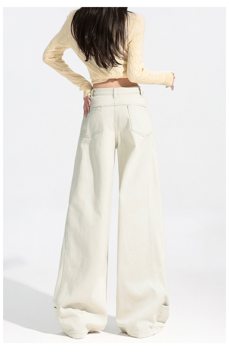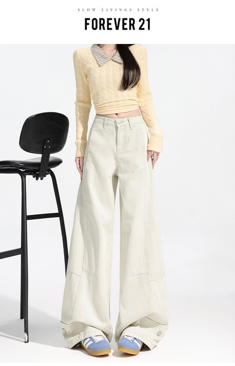 Forever 21超火杏色高腰阔腿牛仔裤女2026今年流行宽松直筒拖地裤