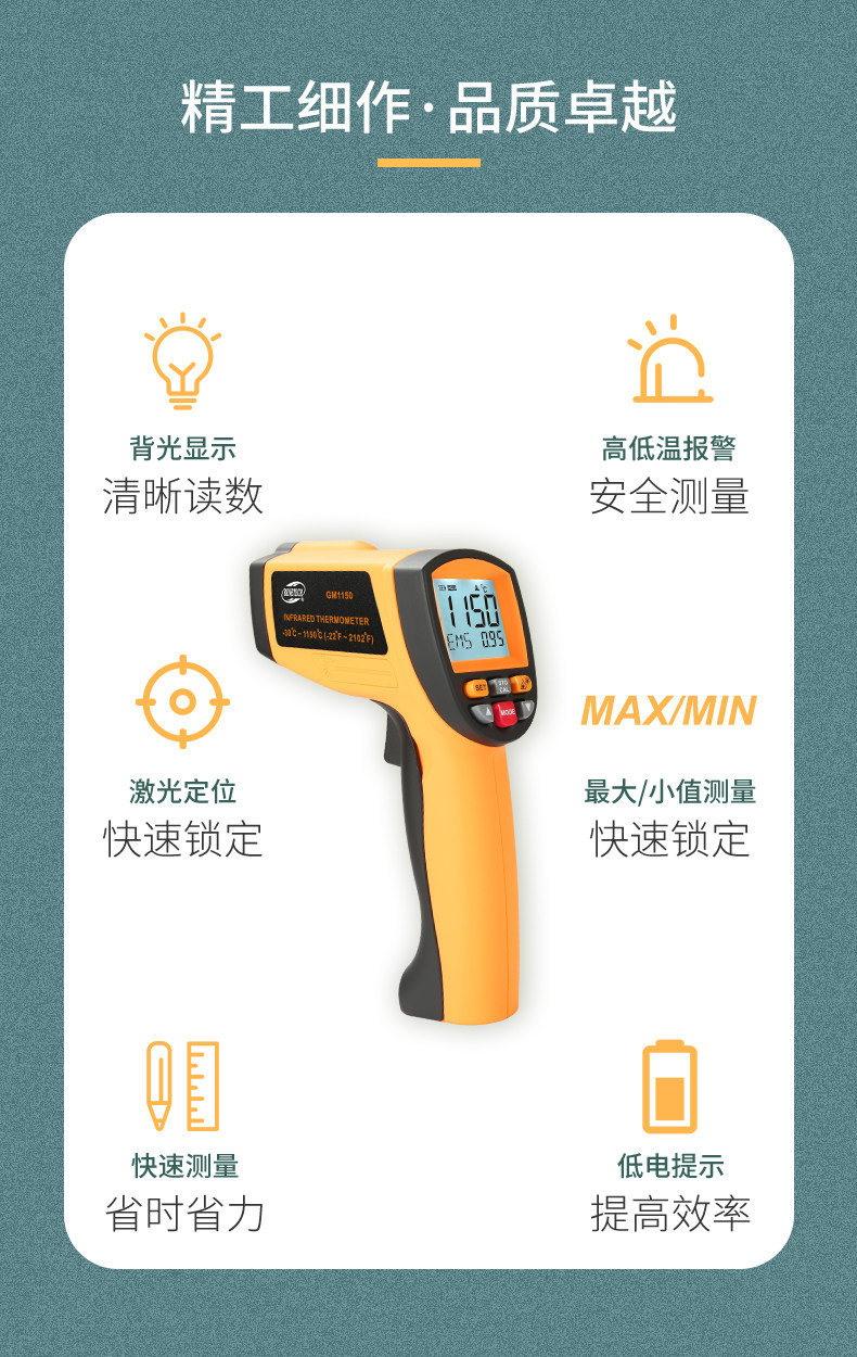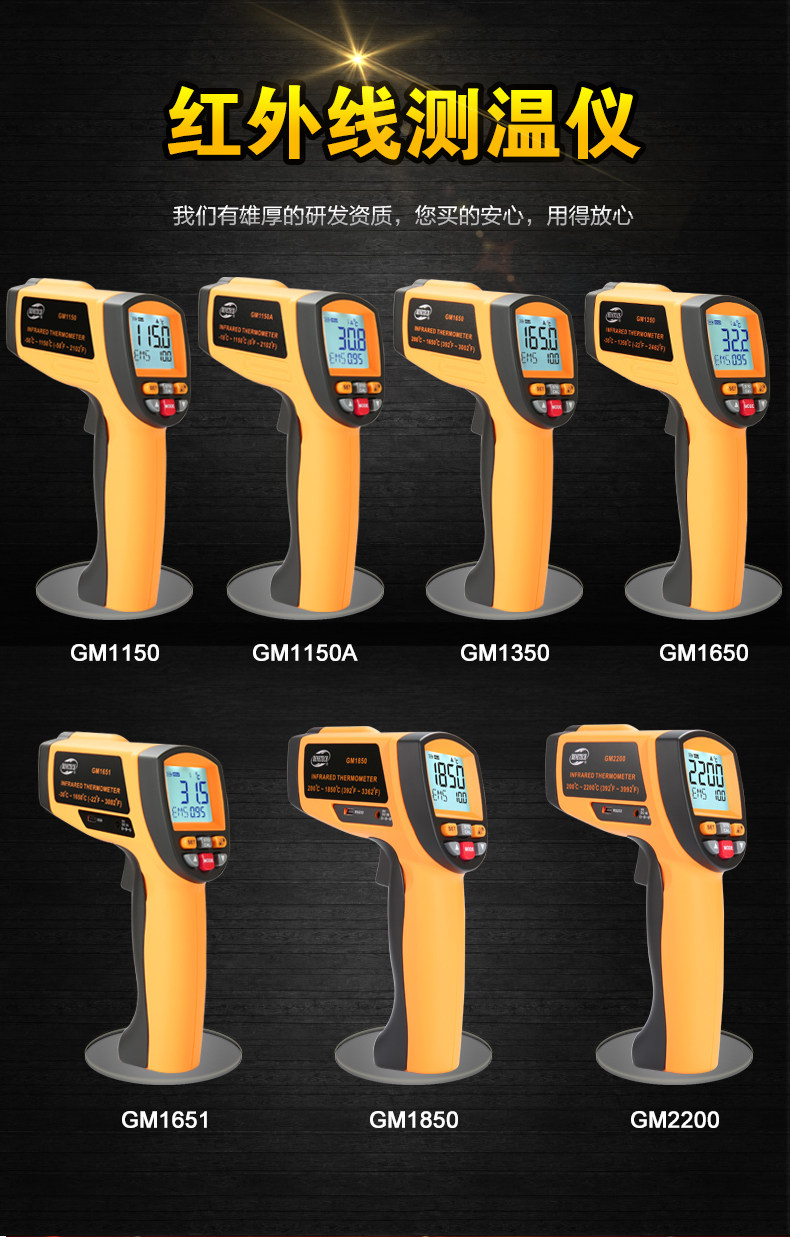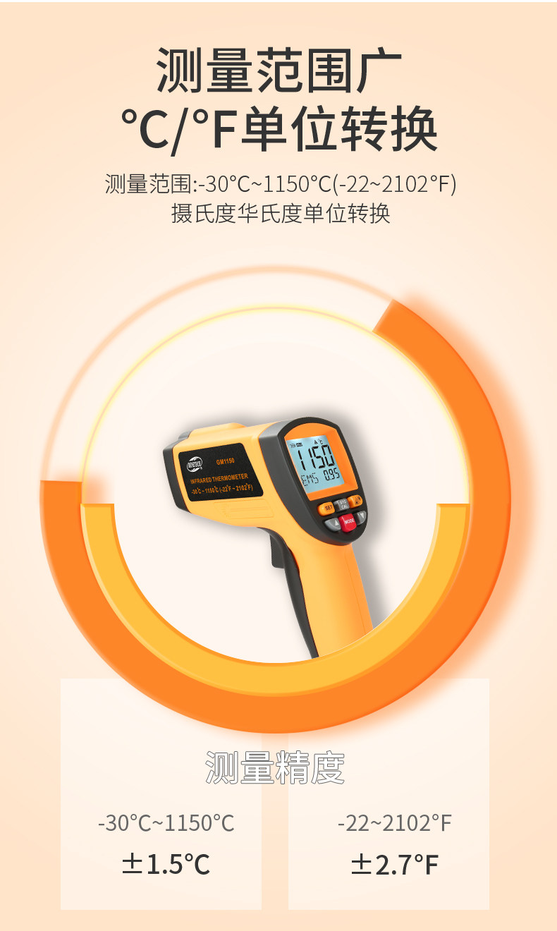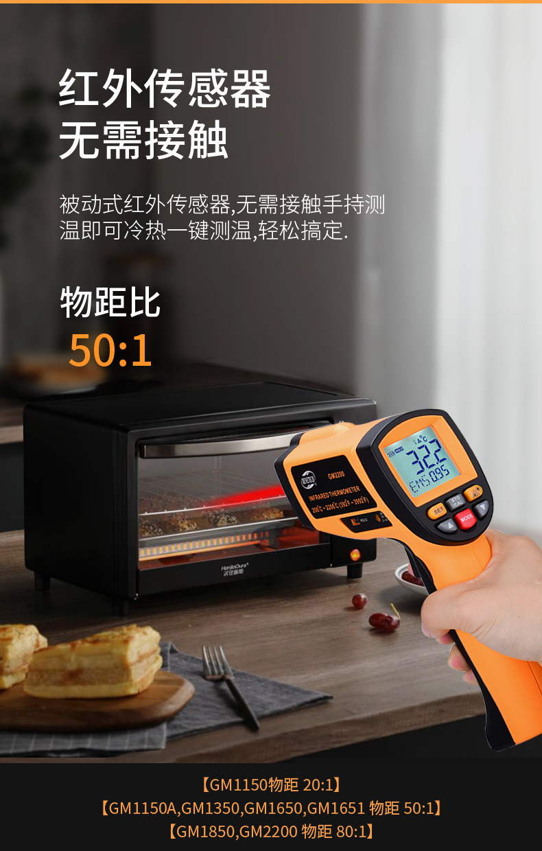 Biaozhi Gm1350 Non-Contact Handheld High-Temperature Industrial High-Precision Infrared Automatic Thermometer for Oil and Water Temperature Measurement