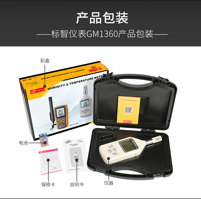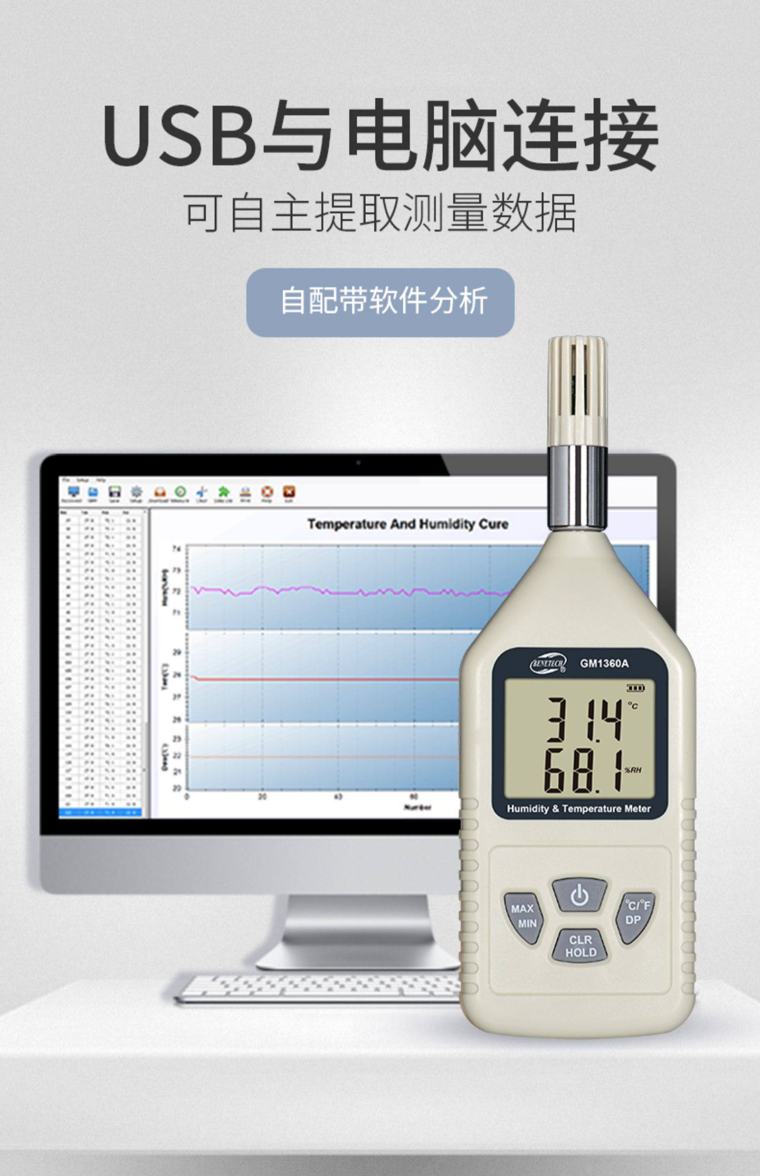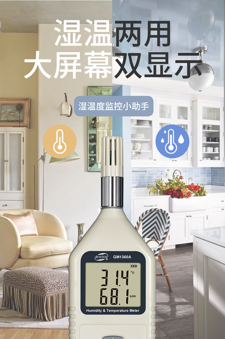 Biaozhi GM1360 Digitalanzeige, integriertes Temperatur- und Feuchtigkeitsmessgerät, hochpräzises Messgerät für Gewächshausumgebungstemperatur und -feuchtigkeit in Industriequalität