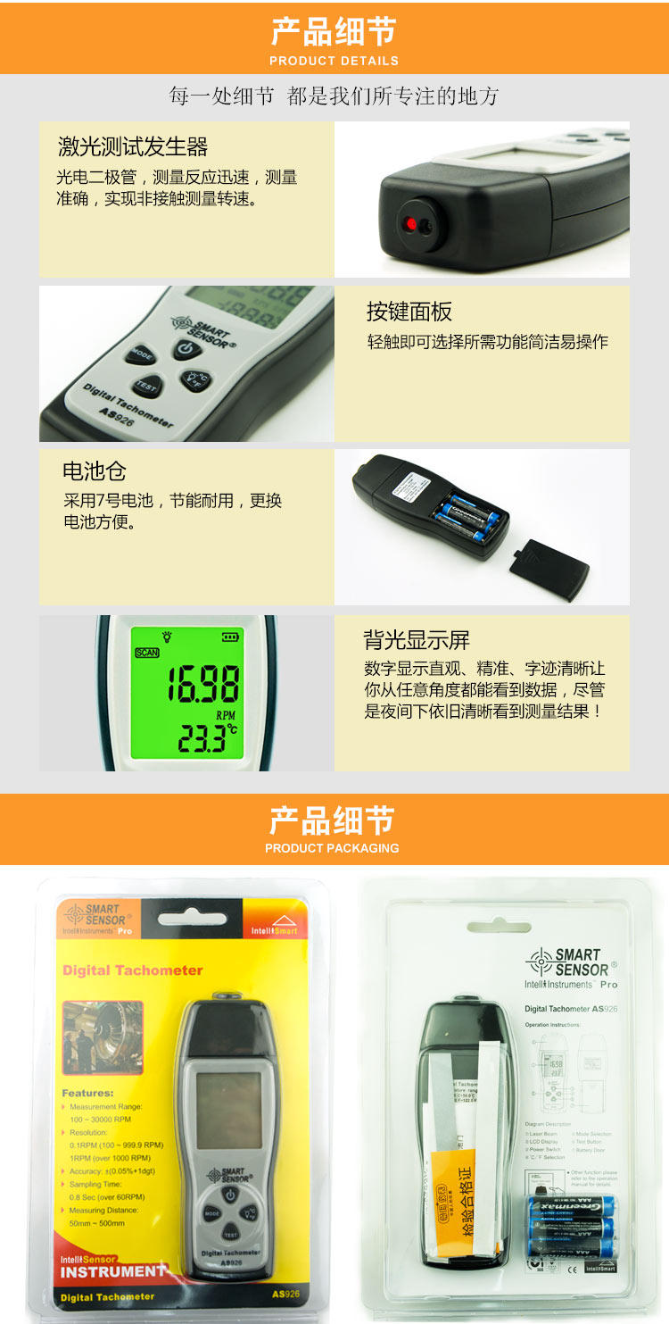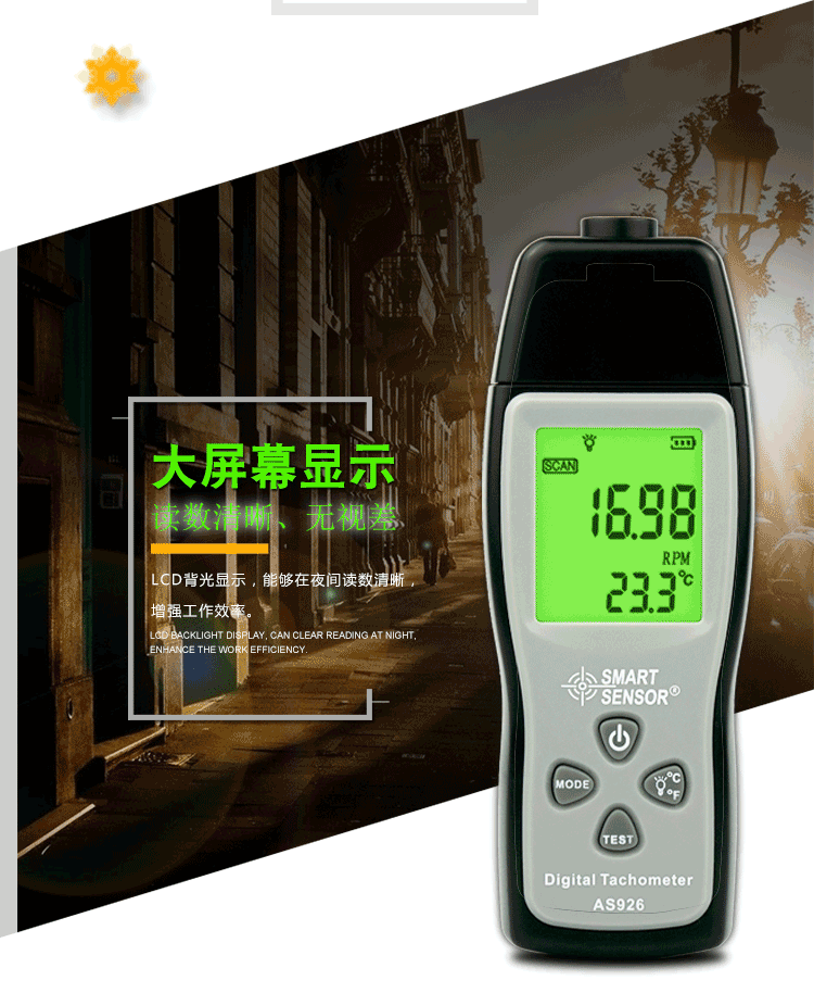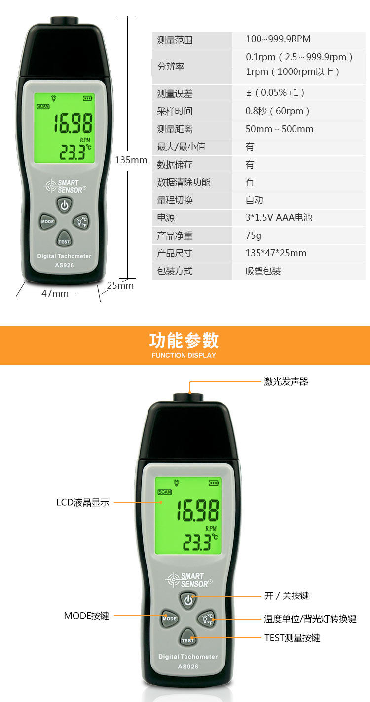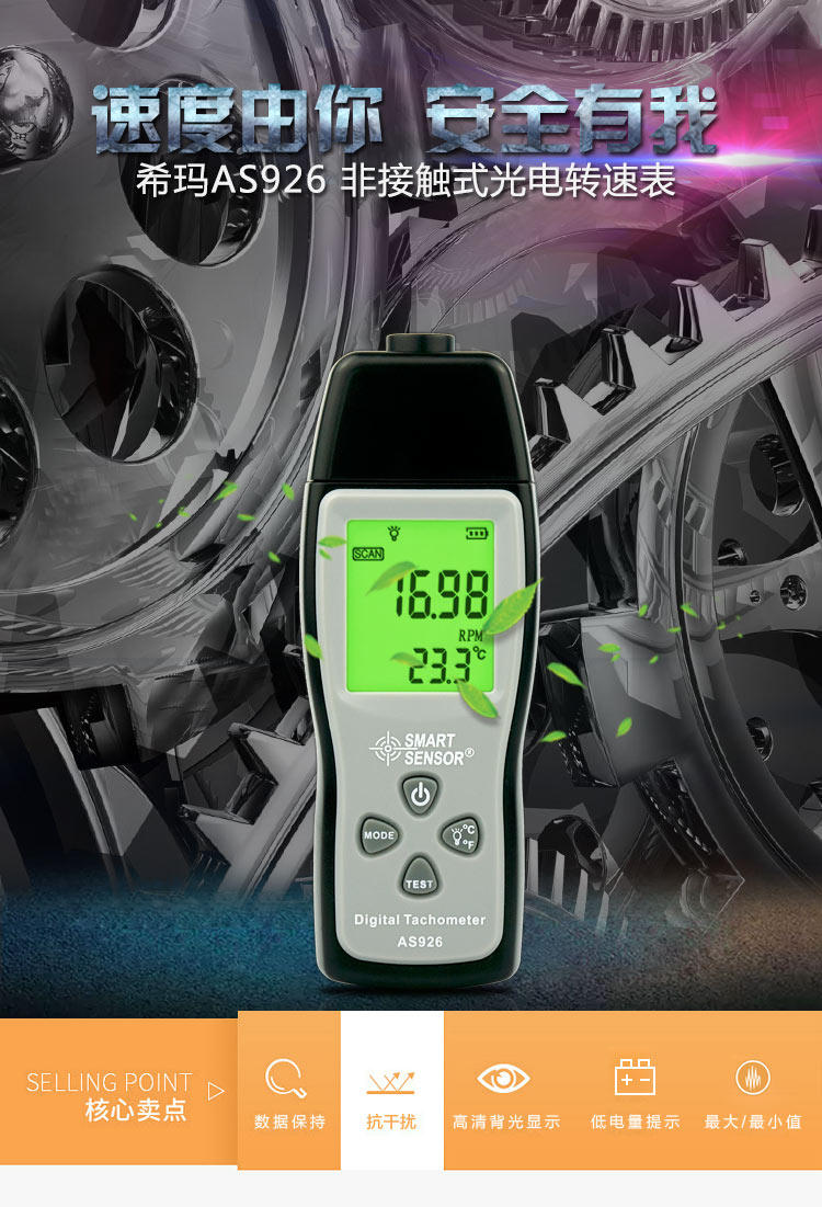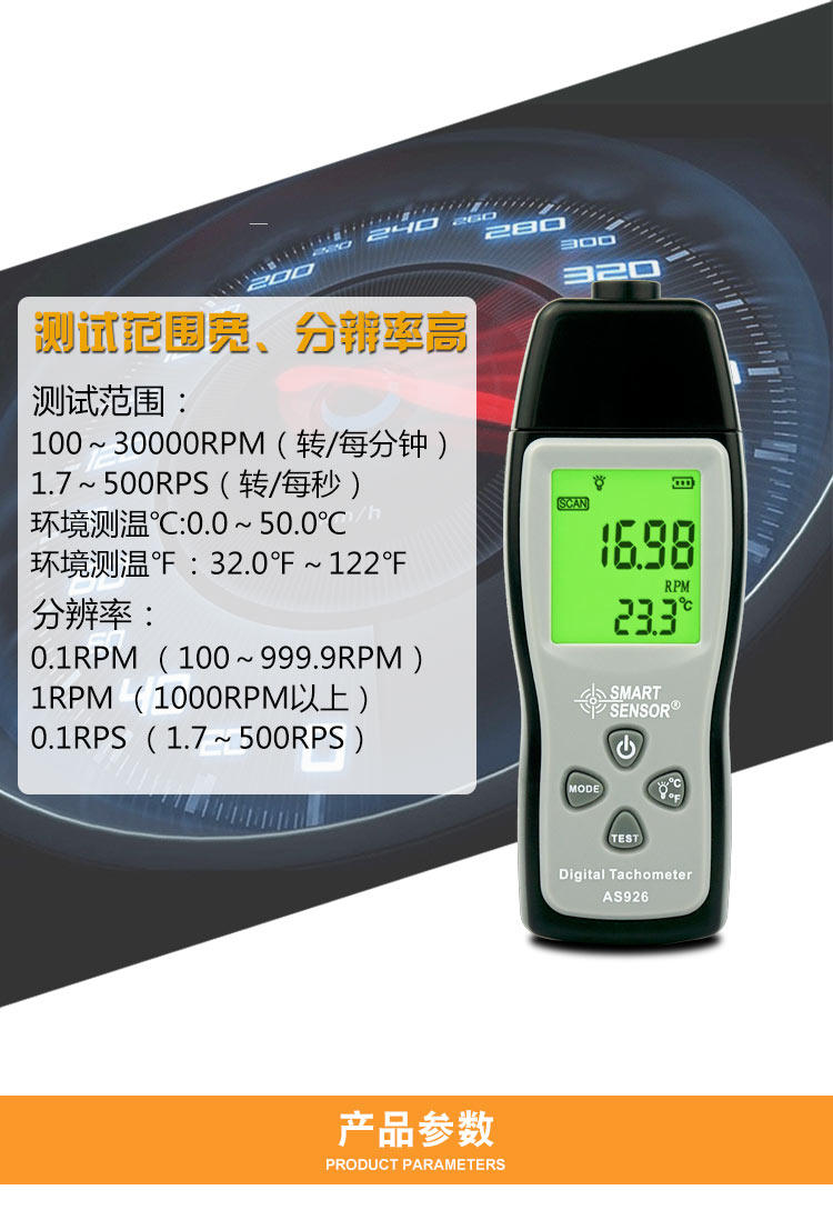 Цифровой бесконтактный тахометр Xima AS926 с высокоточным дисплеем, фотоэлектрический тахометр для двигателя