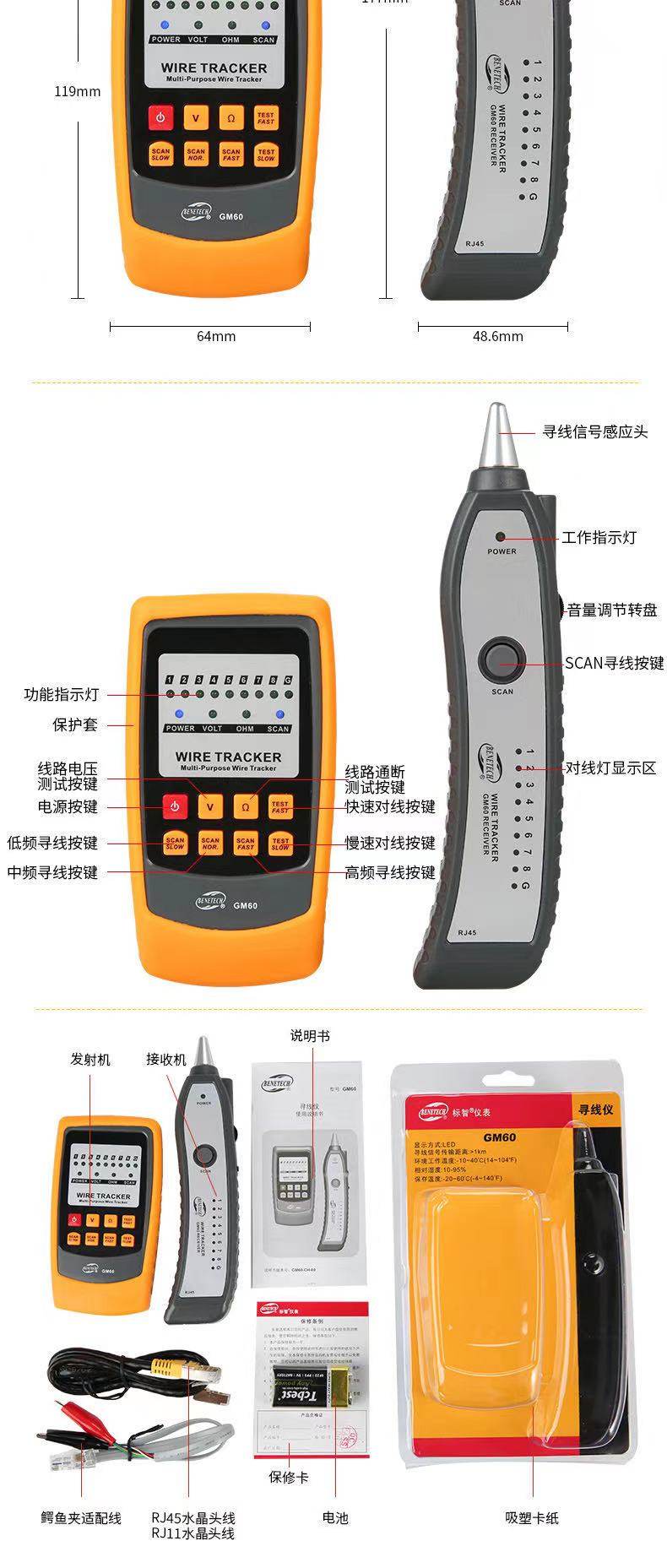 Biaozhi Gm60 Line Finder, Network Cable Tracer, Line Locator, Telephone Line Tester, Tester, Line Tracer