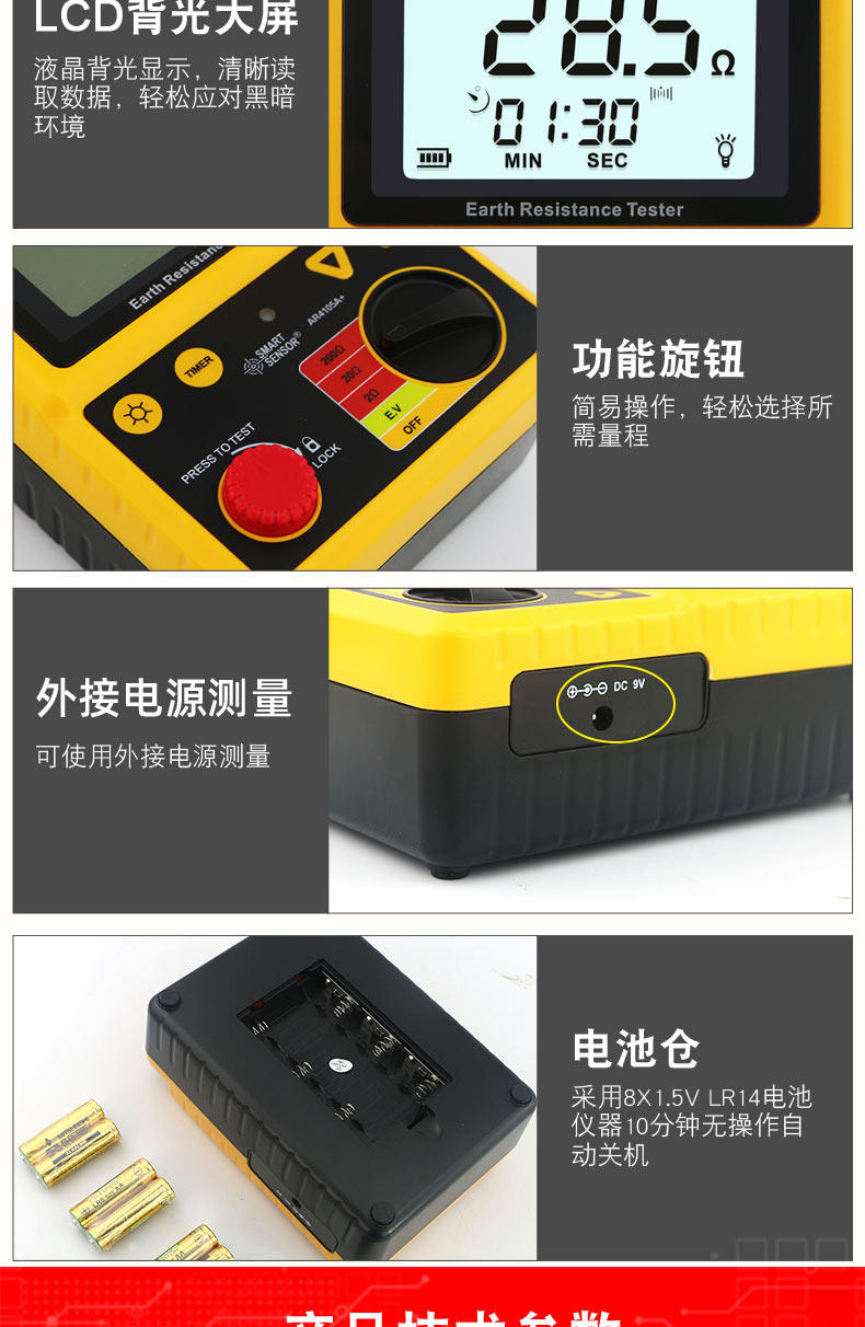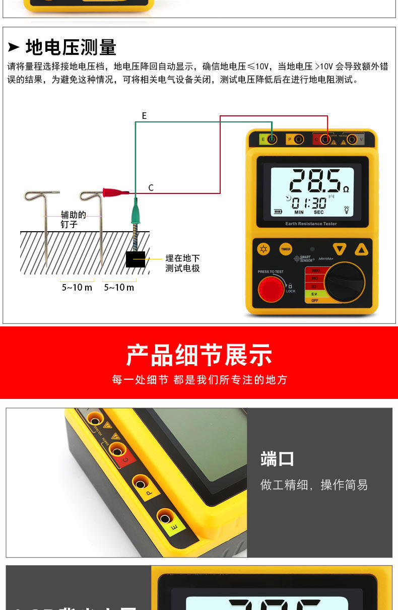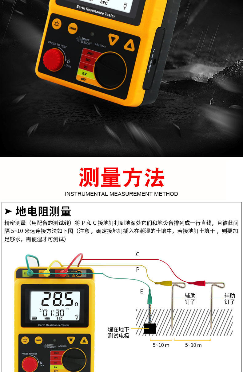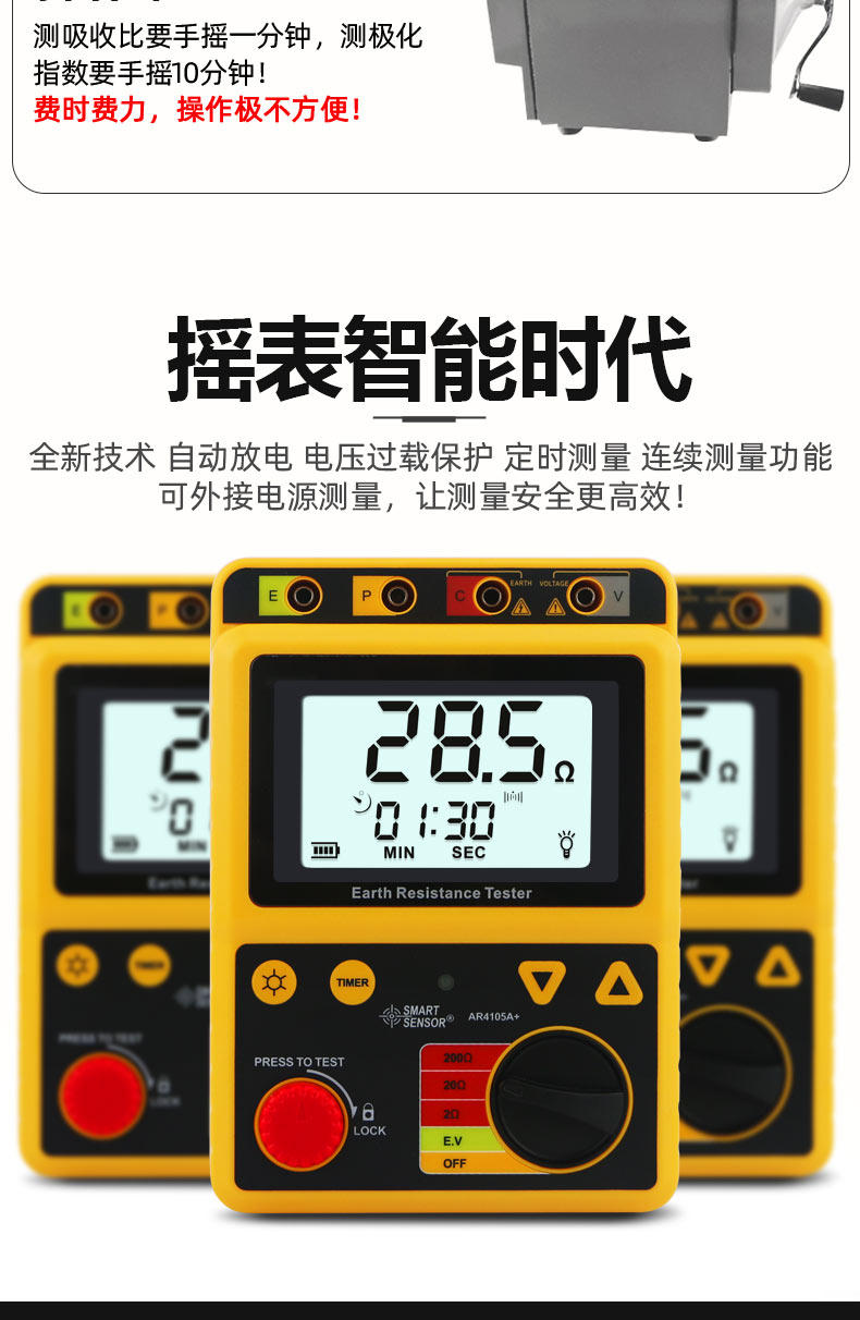 Xima AR4105A ground resistance tester digital ground resistance meter rocker meter lightning protection tester high precision